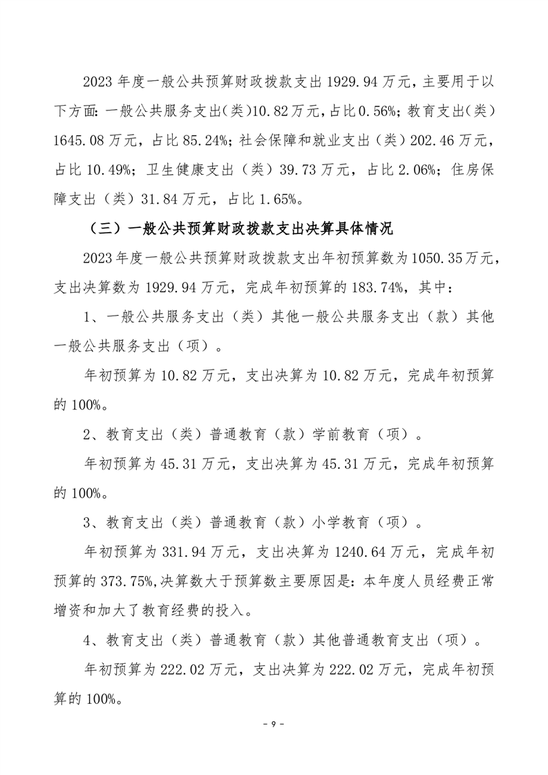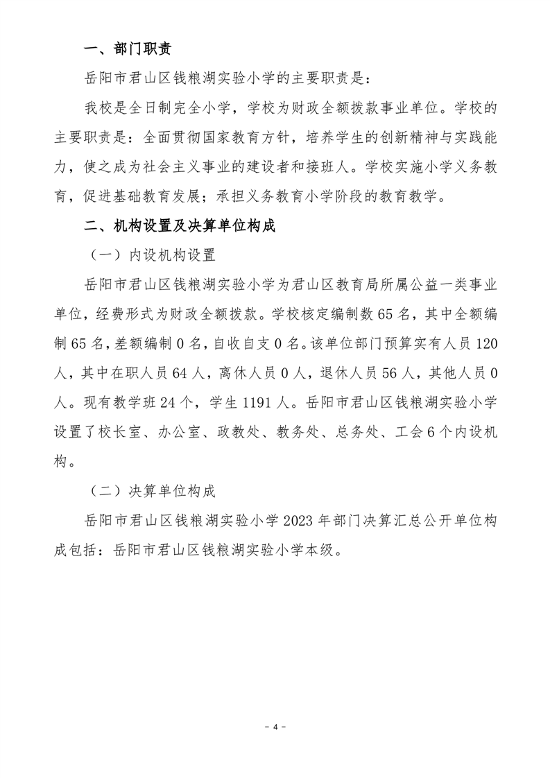 2023年度岳阳市君山区钱粮湖实验小学部门决算公开