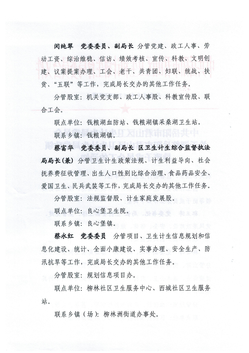 关于调整岳阳市君山区卫生计生局党政领导班子成员分工和通知