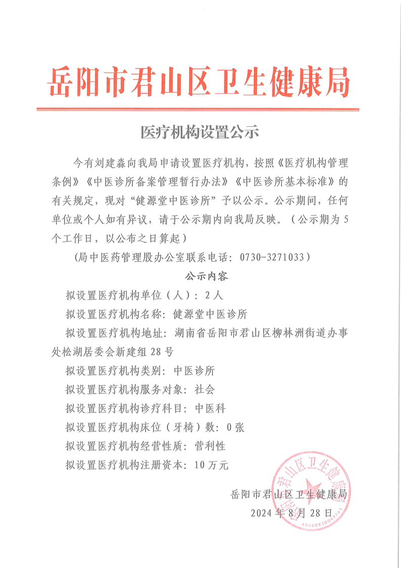 我局依法受理了申请人杜久建和刘建淼2家诊所法人提交诊所备案申请,依照《医疗机构管理条例》及《诊所备案管理暂行办法》相关规定,现将诊所信息公示。附件如下: