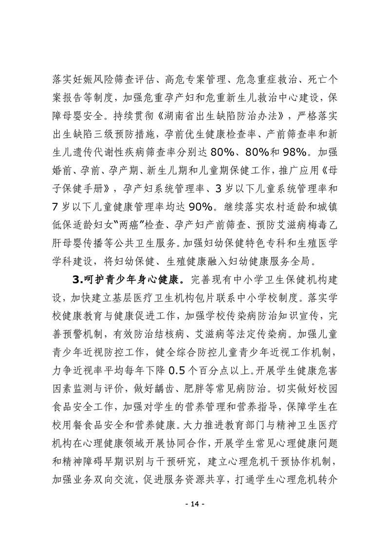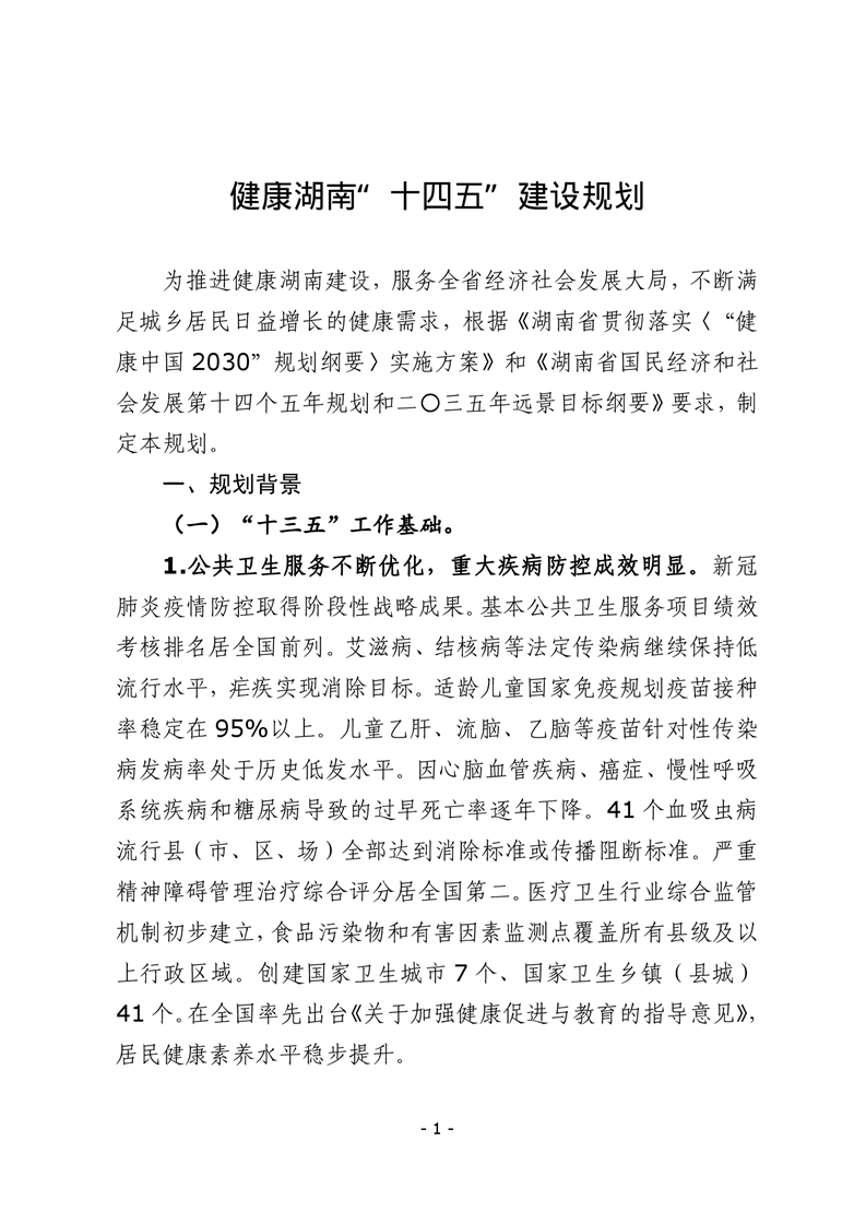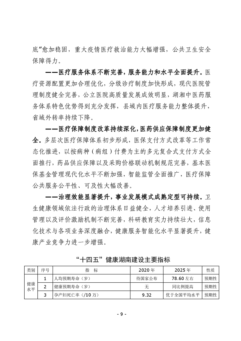 湖南省人民政府办公厅关于印发《健康湖南“十四五”建设规划》的通知