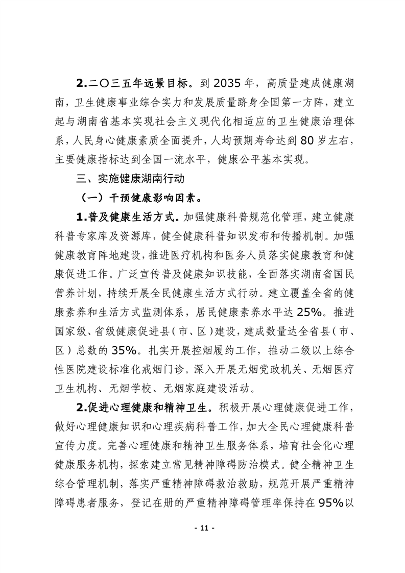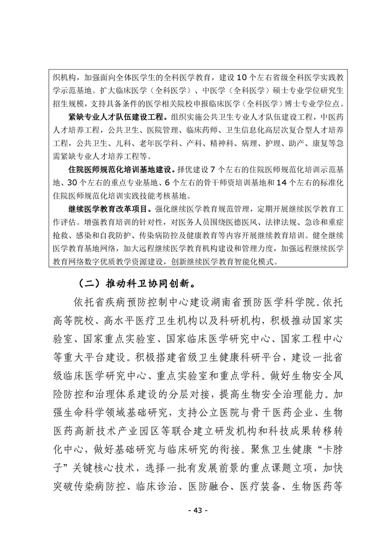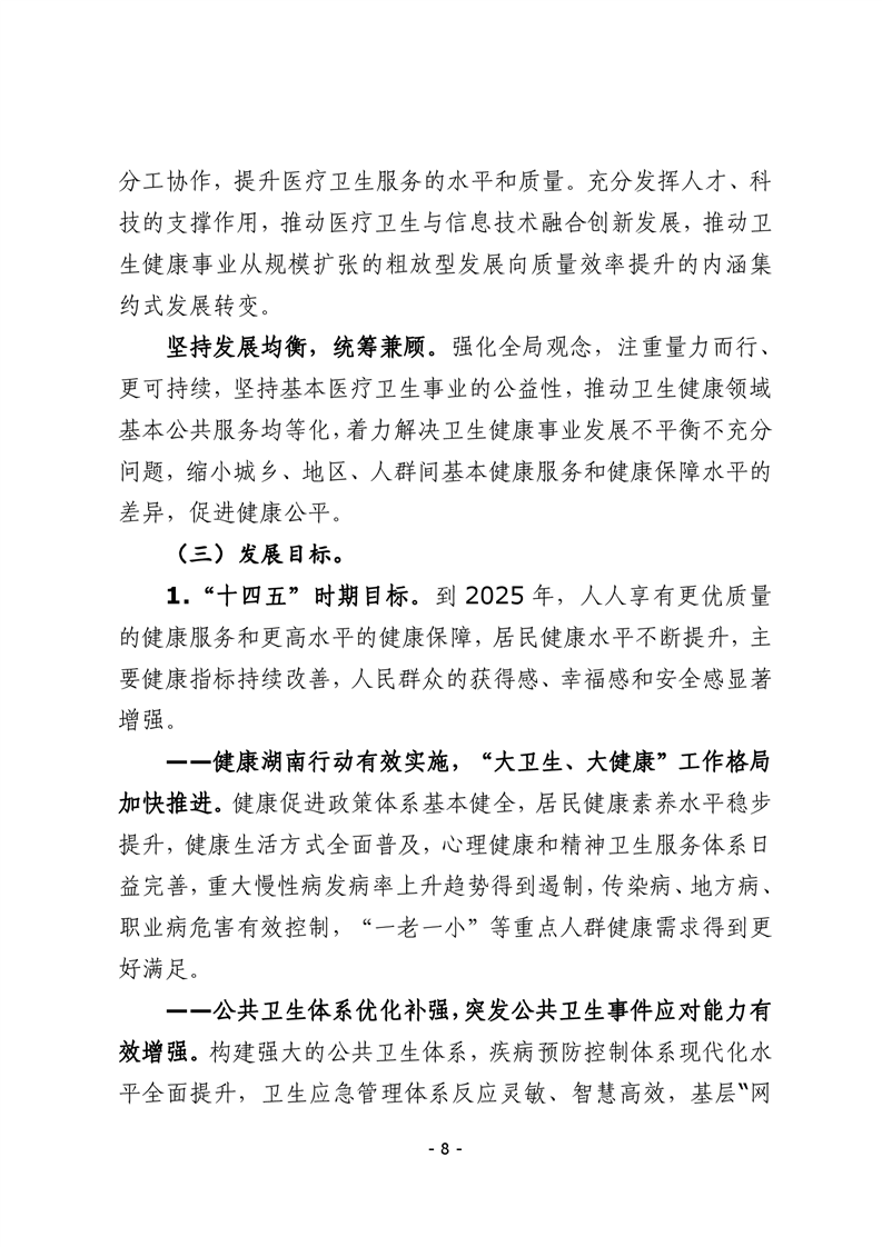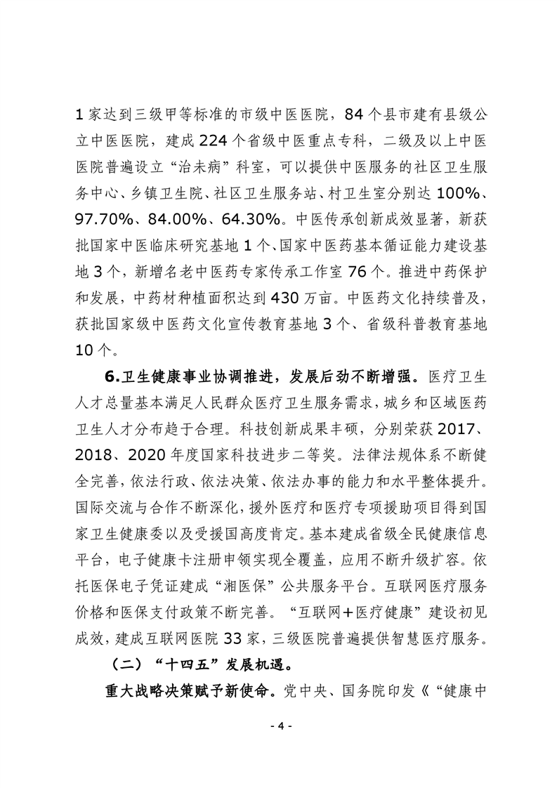 湖南省人民政府办公厅关于印发《健康湖南“十四五”建设规划》的通知