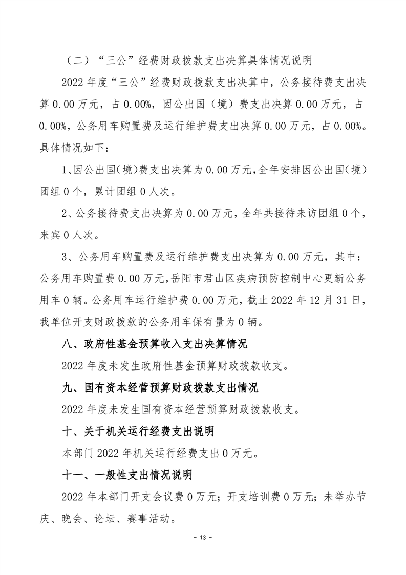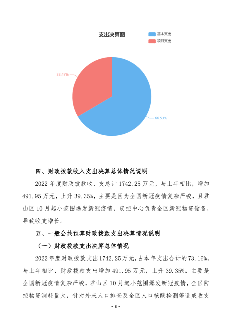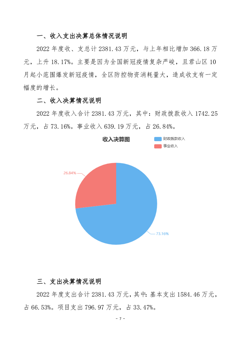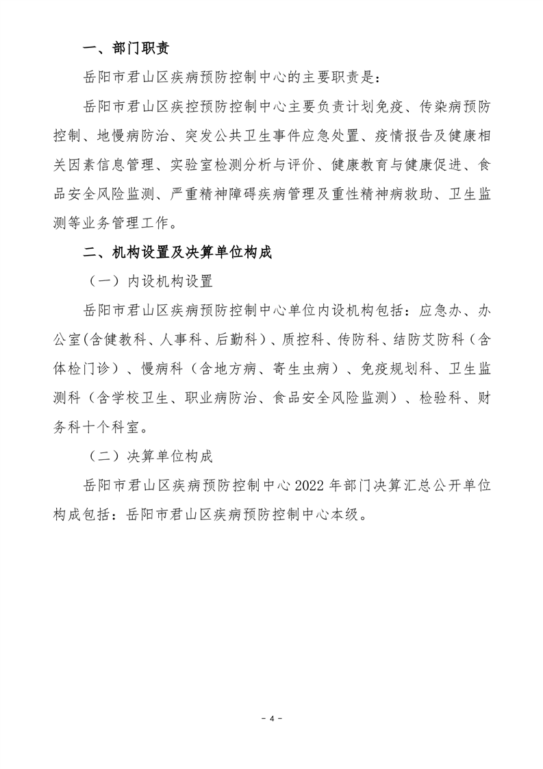 2022年度岳阳市君山区疾病预防控制中心部门决算公开说明