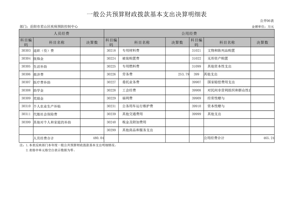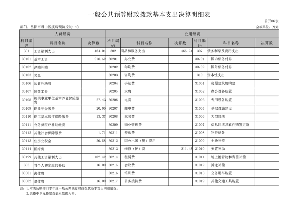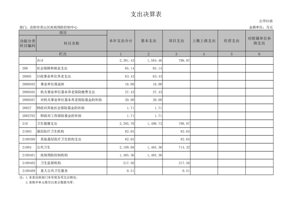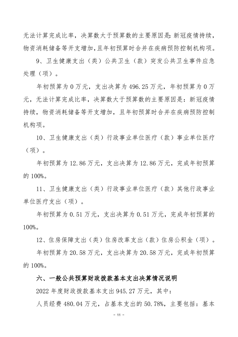 2022年度岳阳市君山区疾病预防控制中心部门决算公开说明