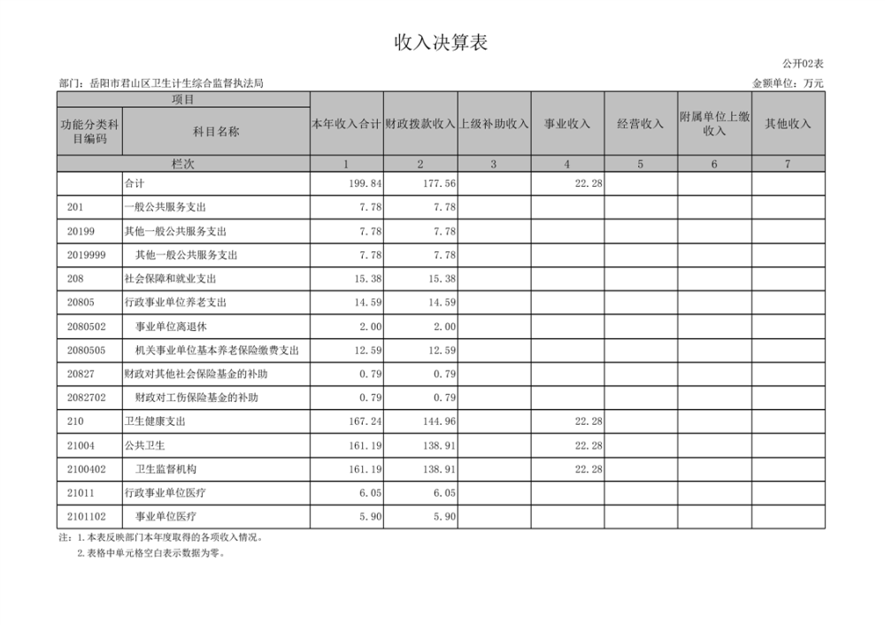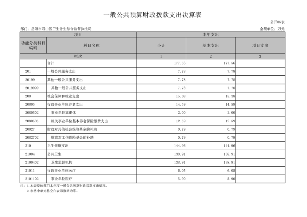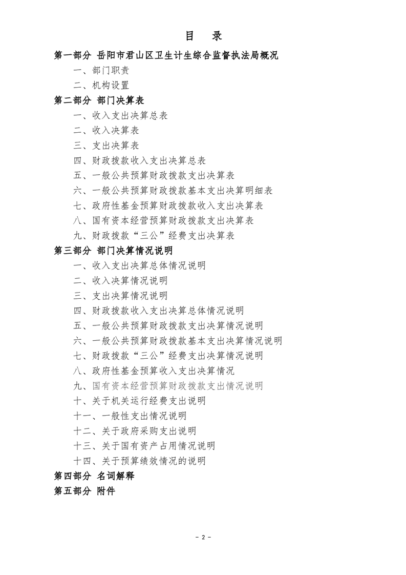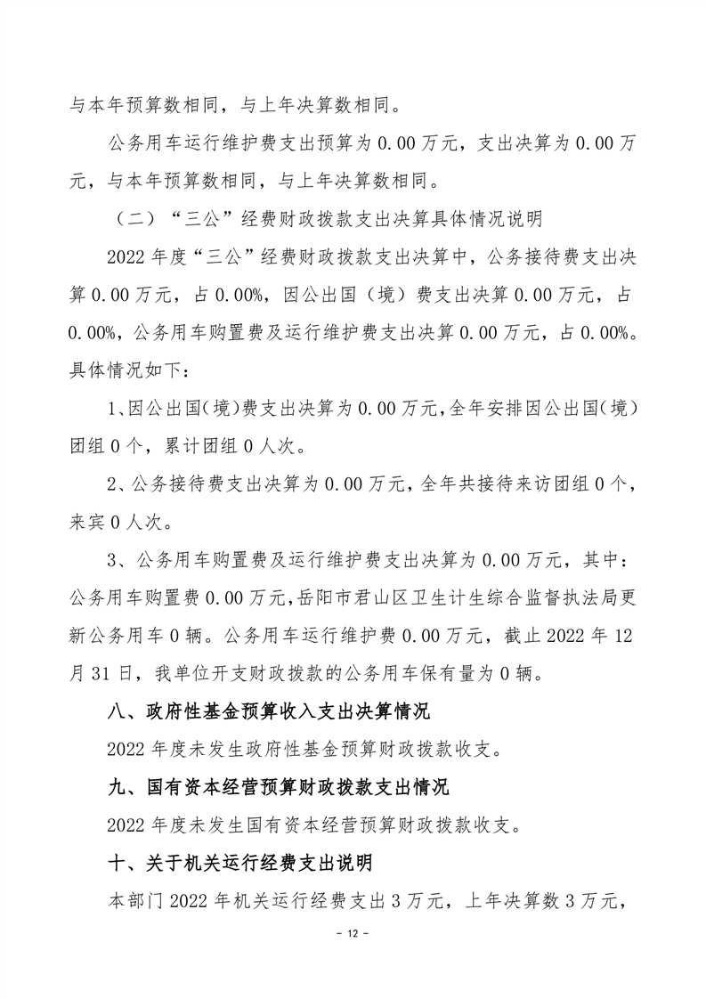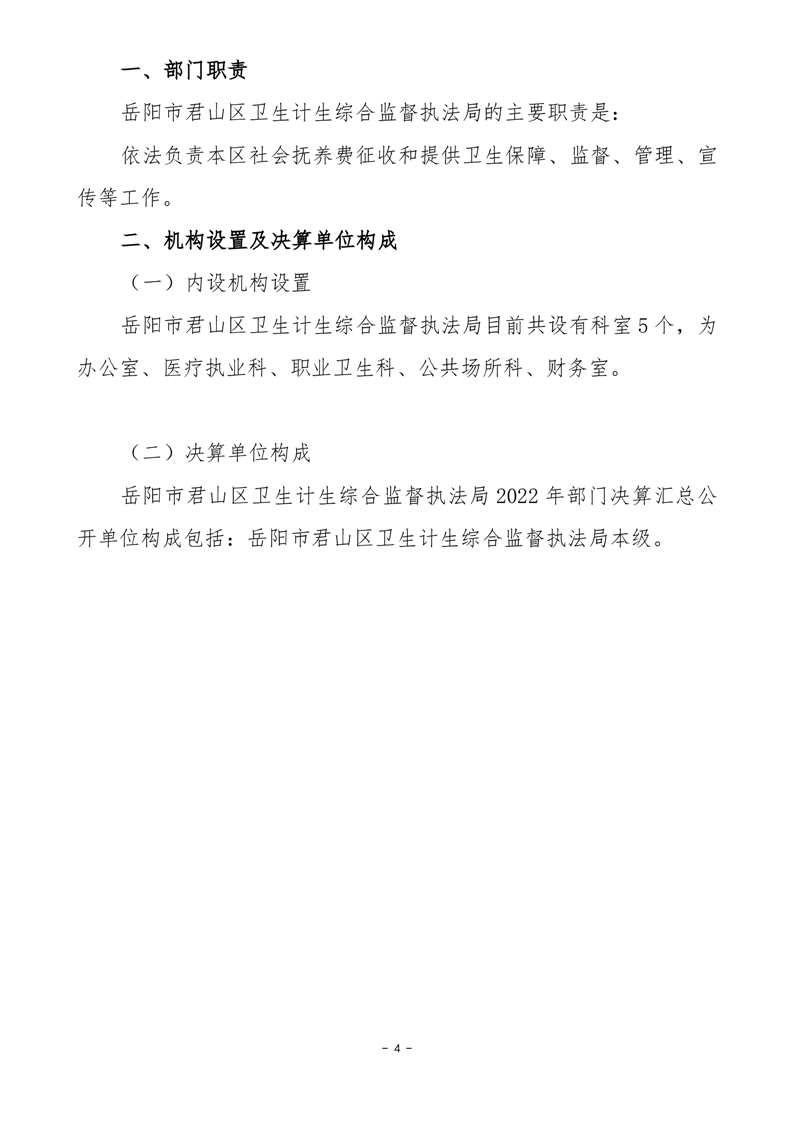 2022年度岳阳市君山区卫生计生综合监督执法局部门决算公开说明