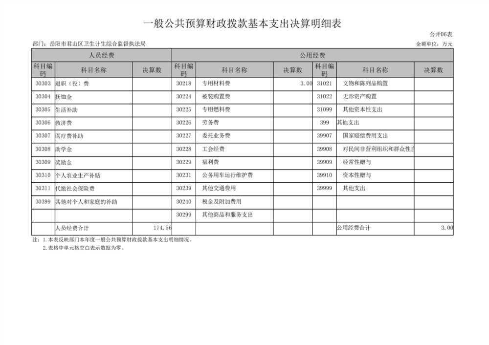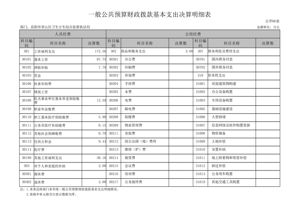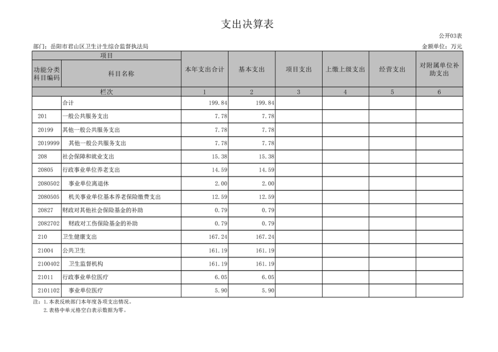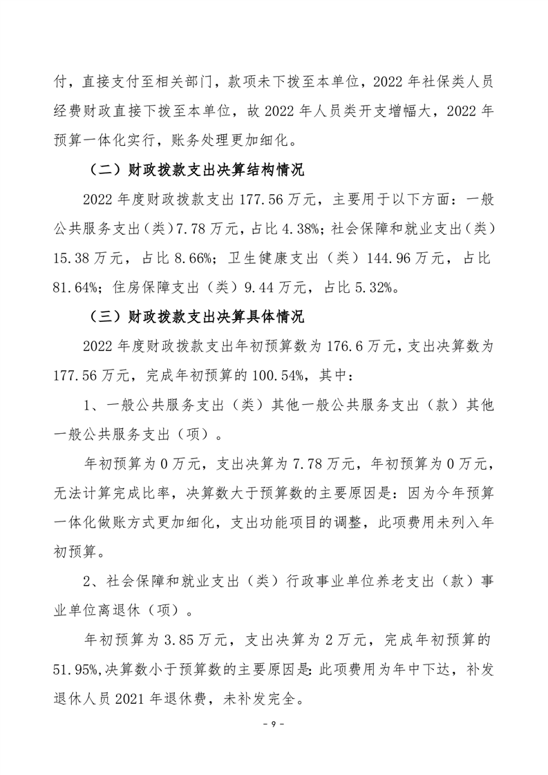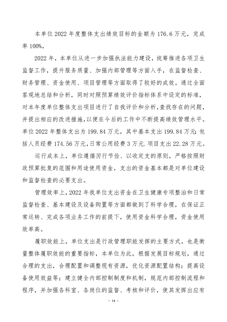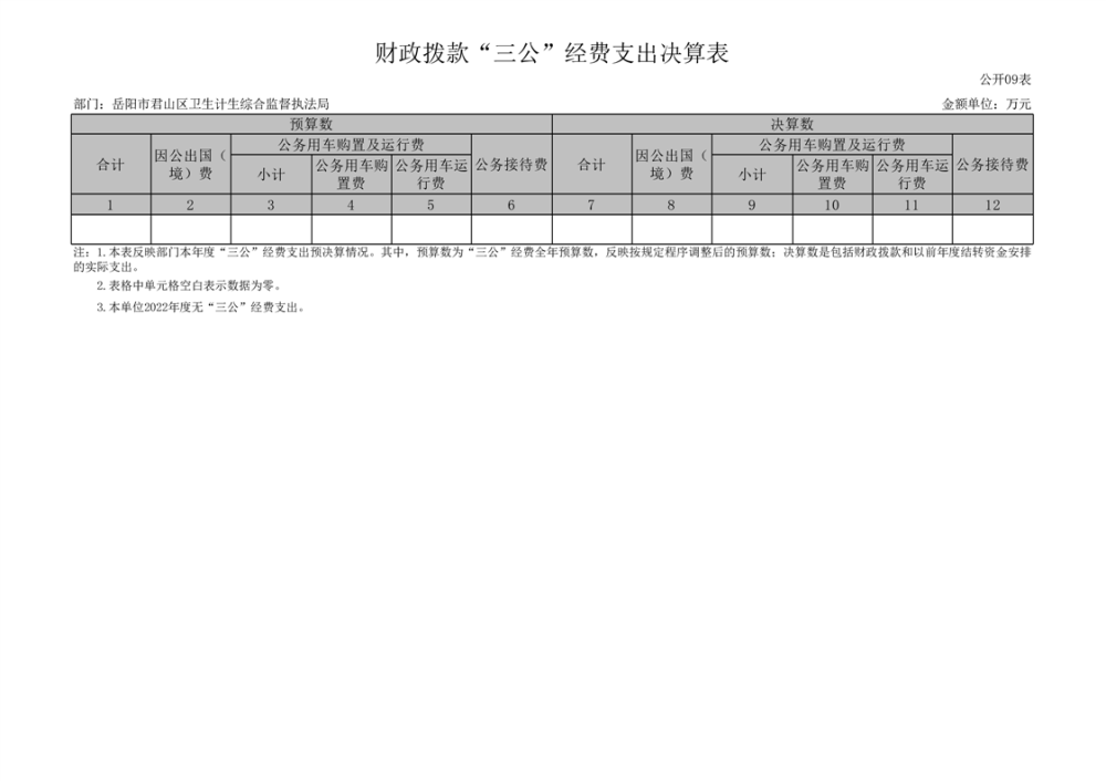 2022年度岳阳市君山区卫生计生综合监督执法局部门决算公开说明