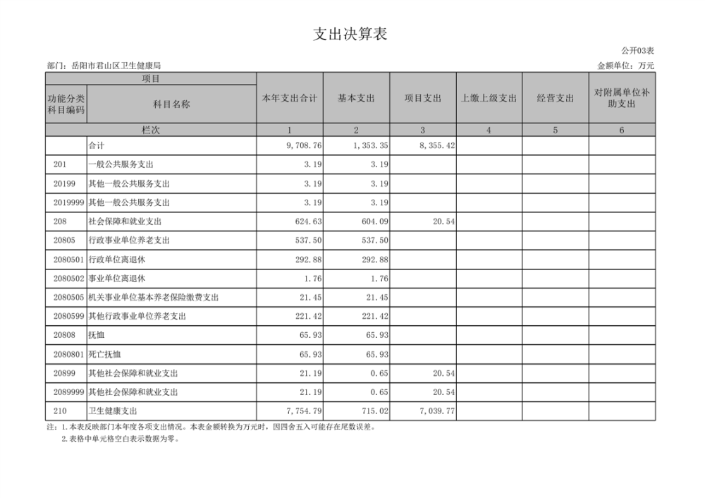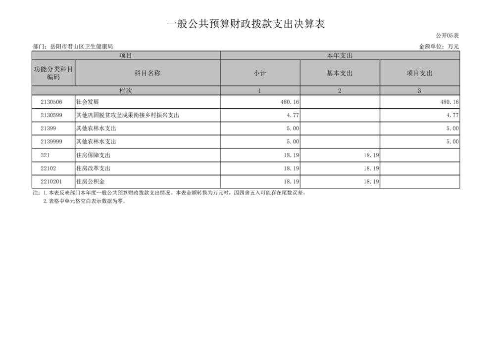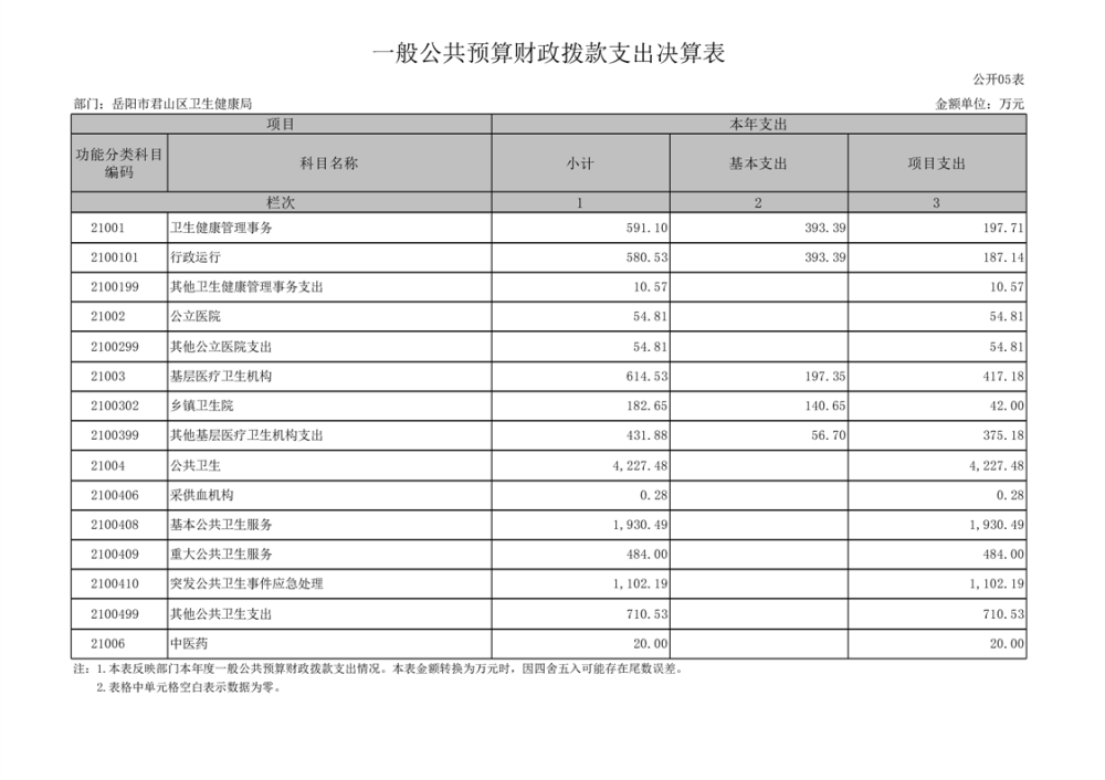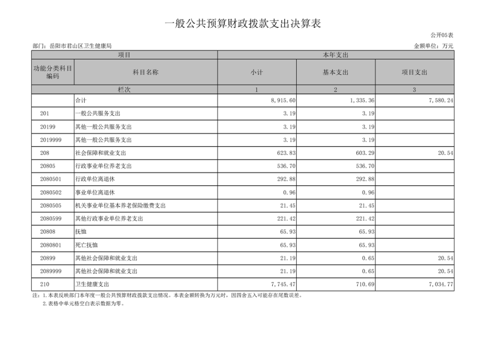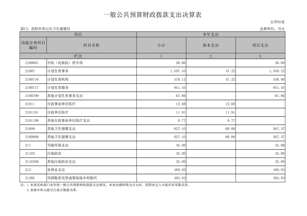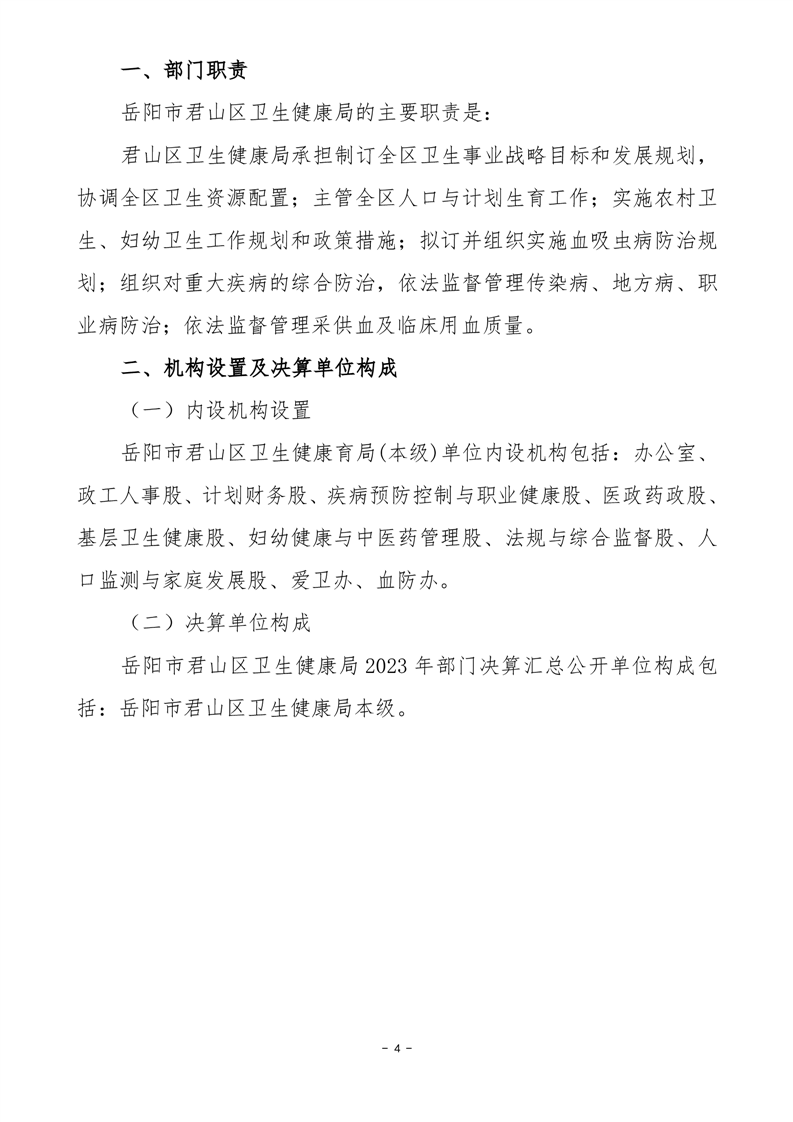 2023年度岳阳市君山区卫生健康局(本级)决算公开