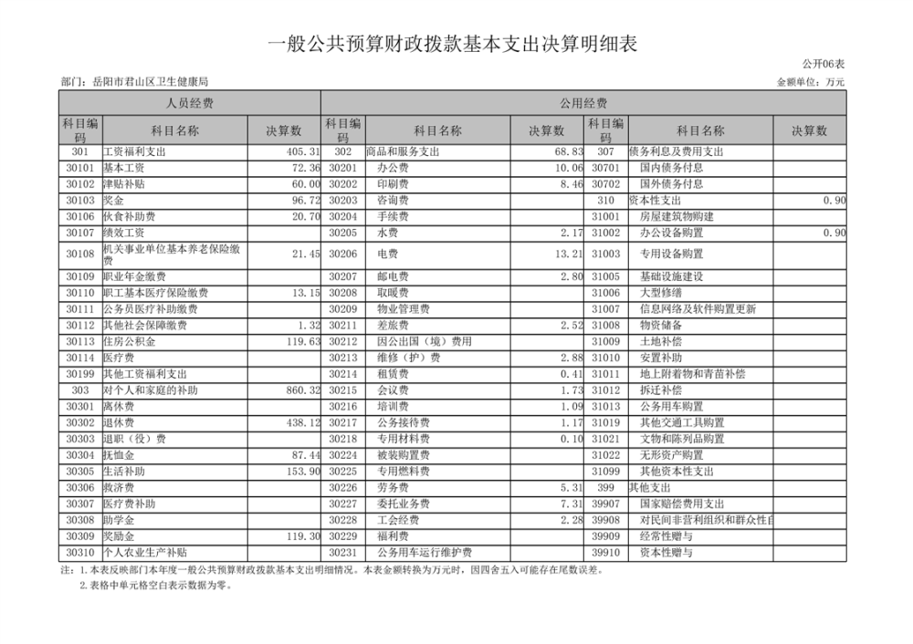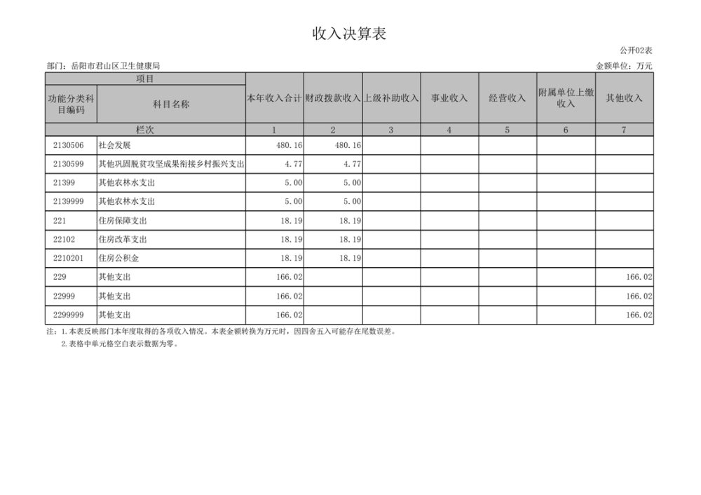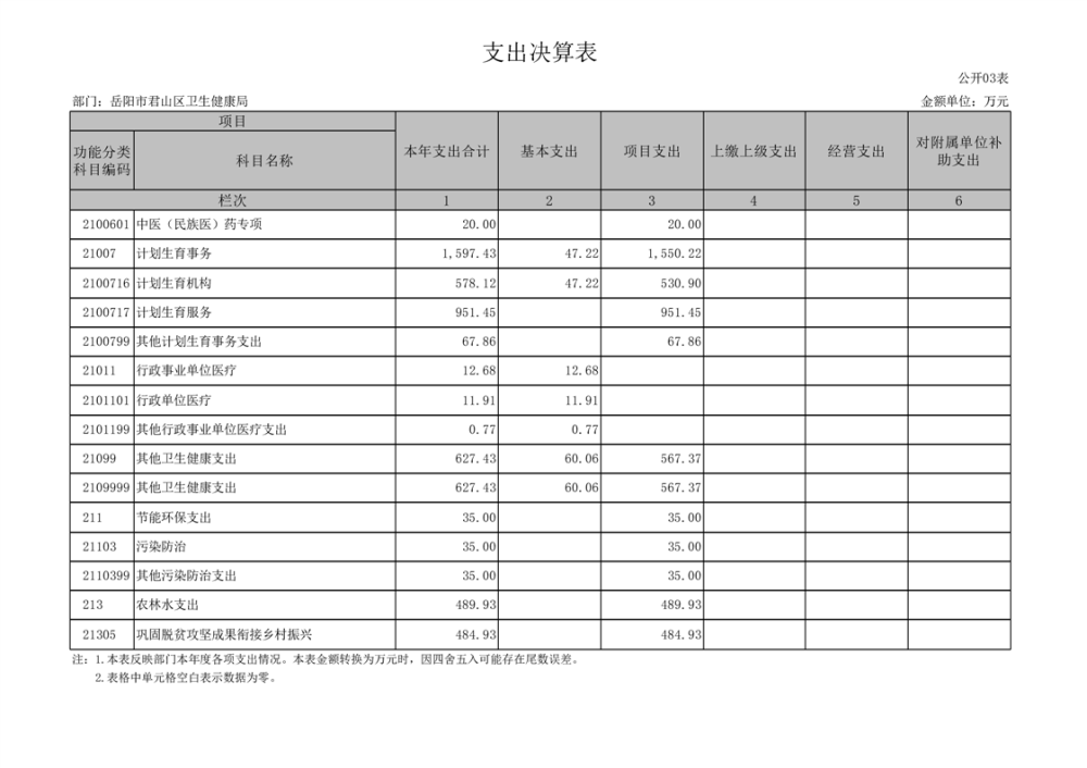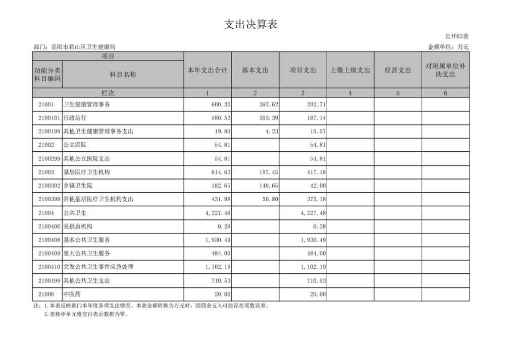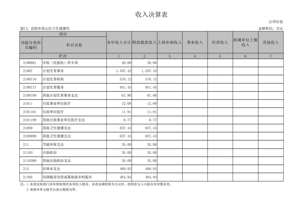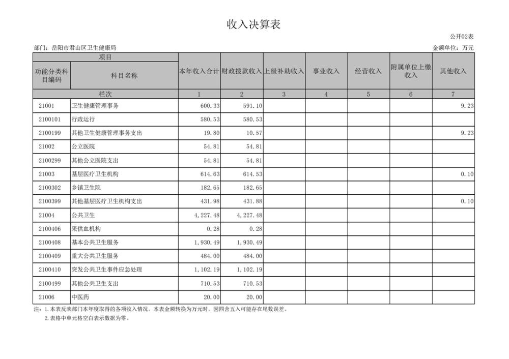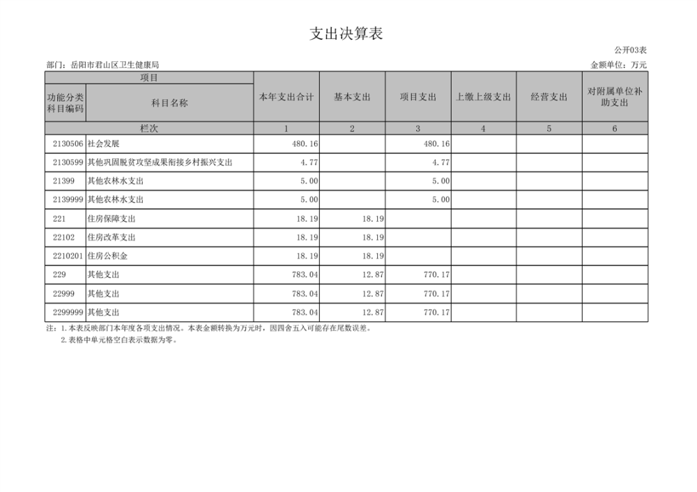 2023年度岳阳市君山区卫生健康局(本级)决算公开