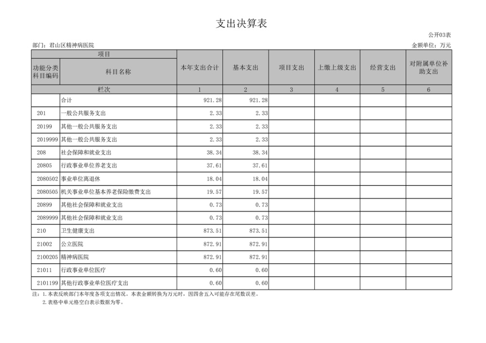 2023年度市级预算支出绩效自评工作的附件(君山区精神病医院).docx