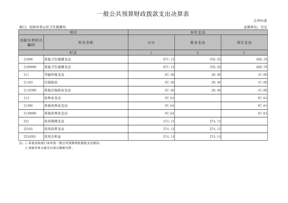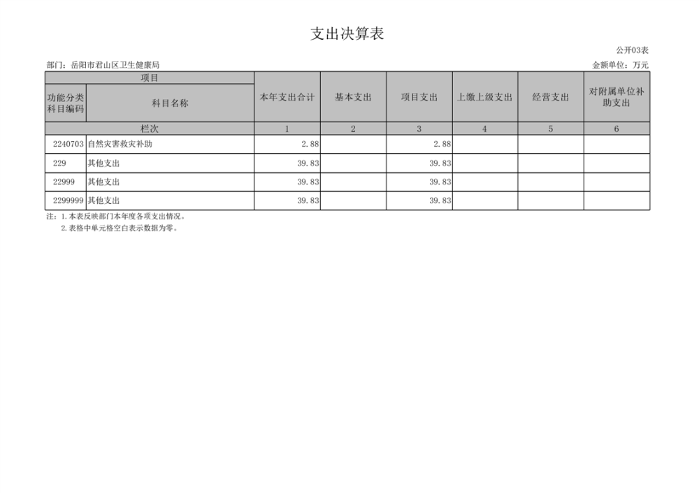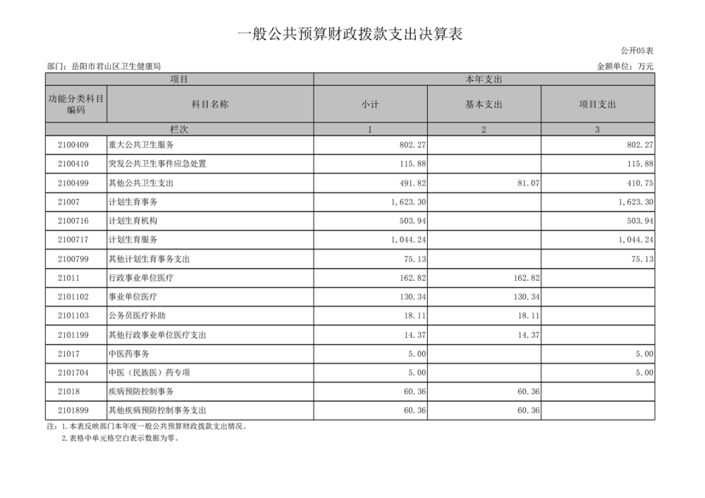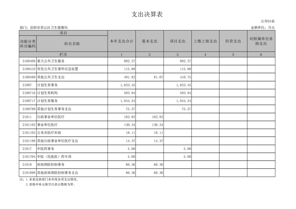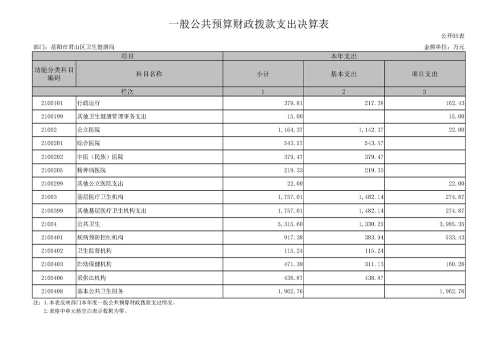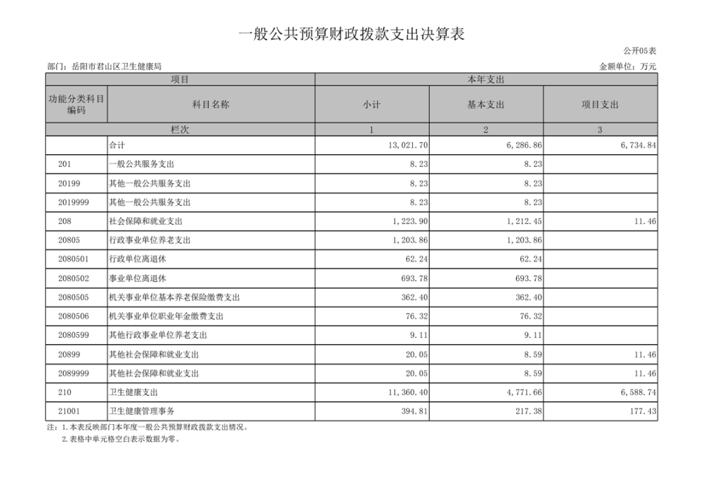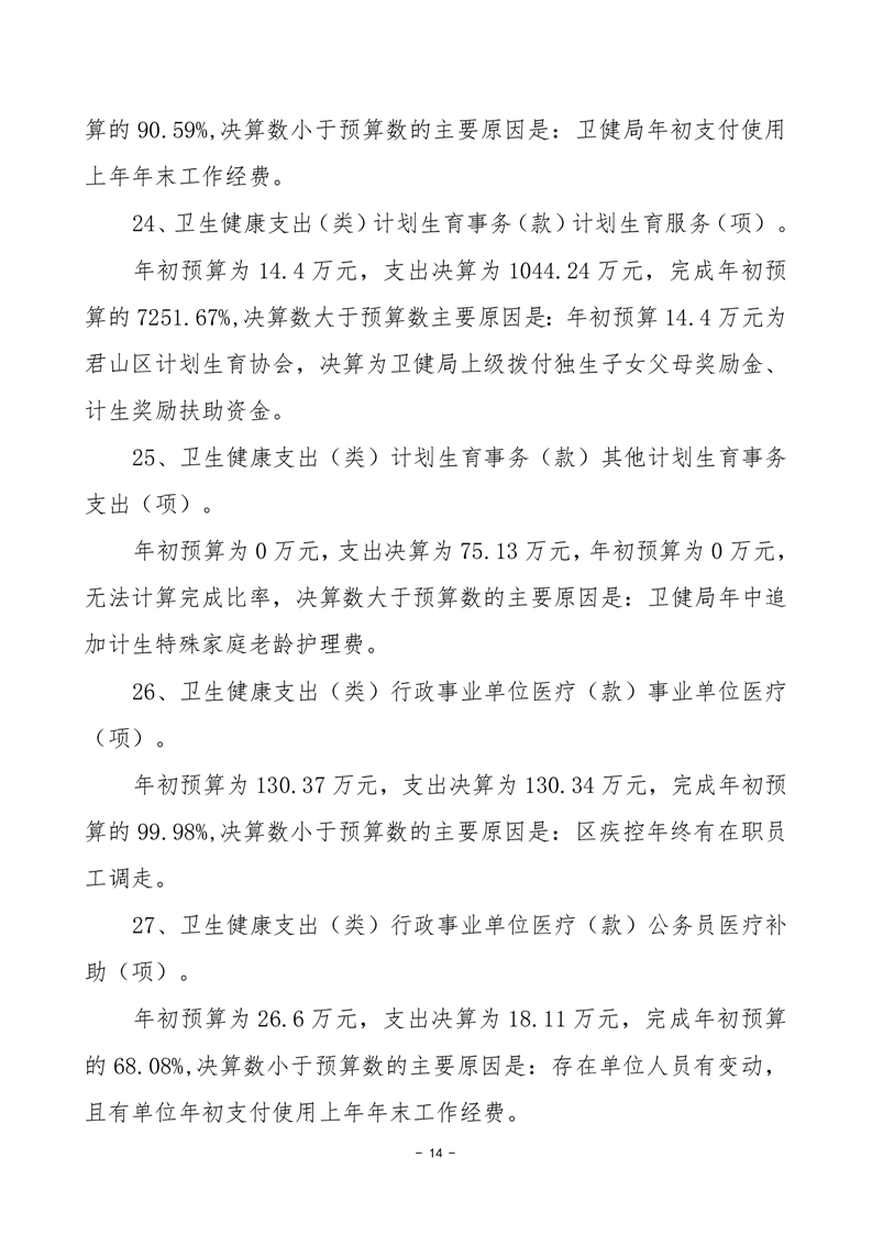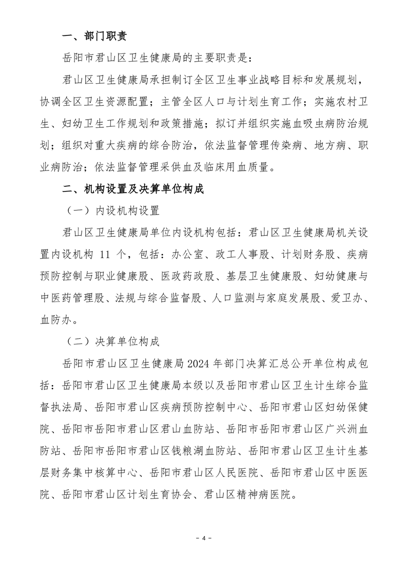 2024年度岳阳市君山区卫生健康局(汇总)部门决算公开
