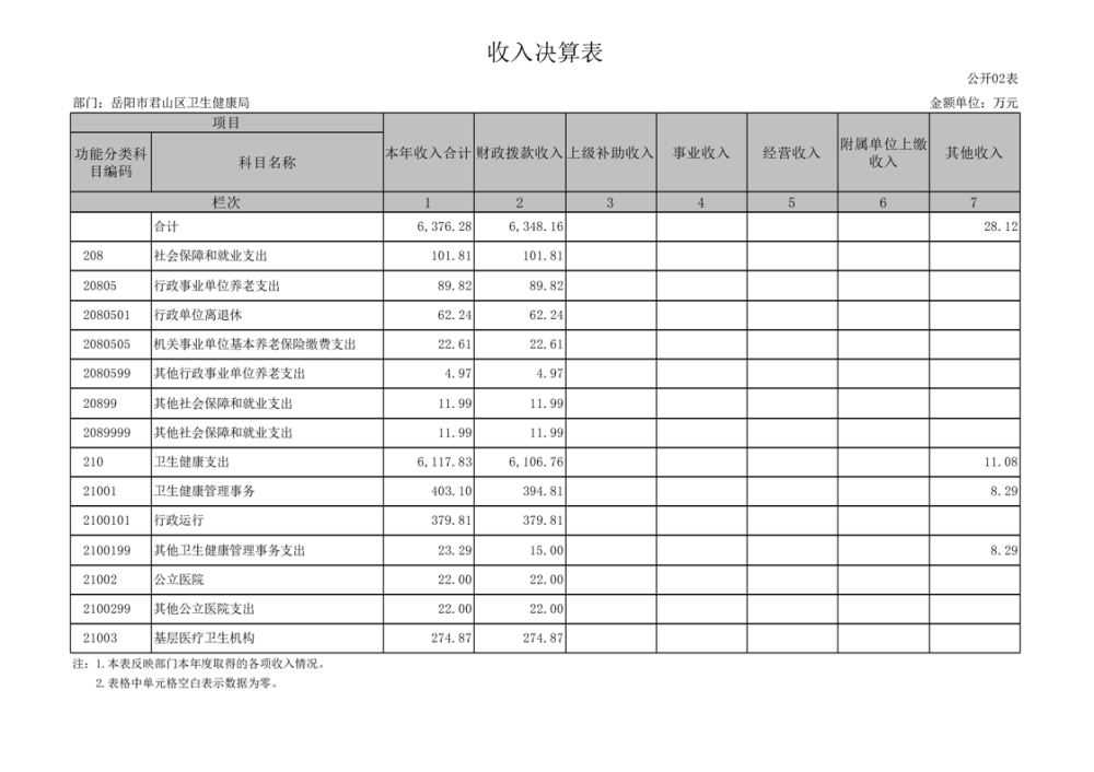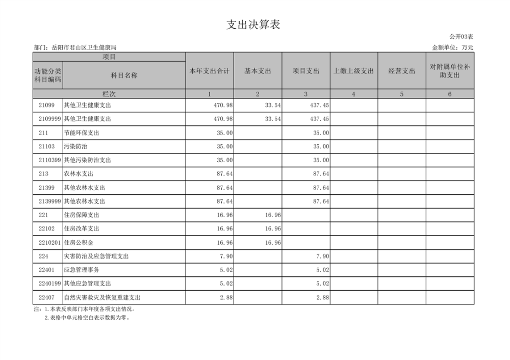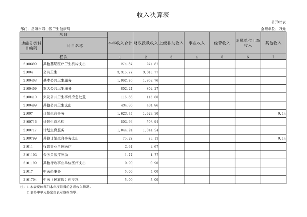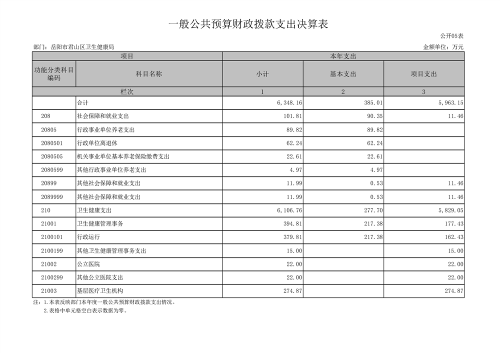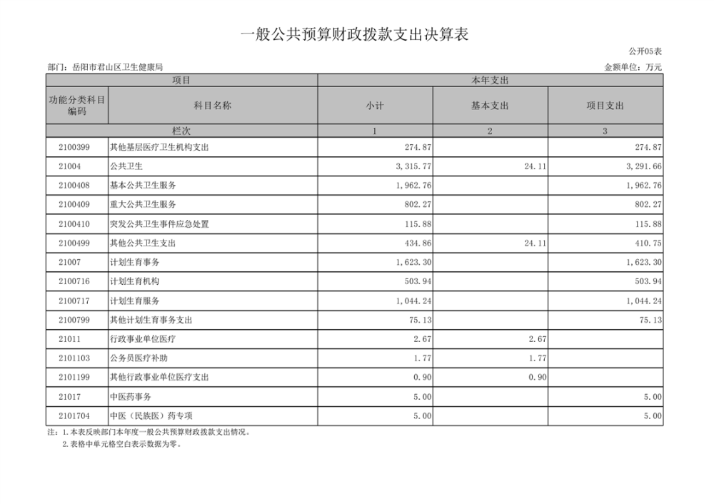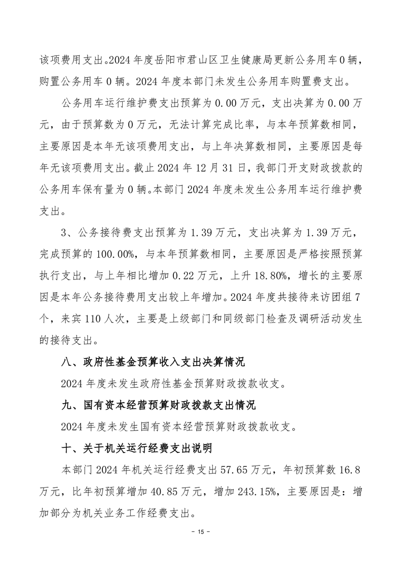 2024年度岳阳市君山区卫生健康局(本级)部门决算公开