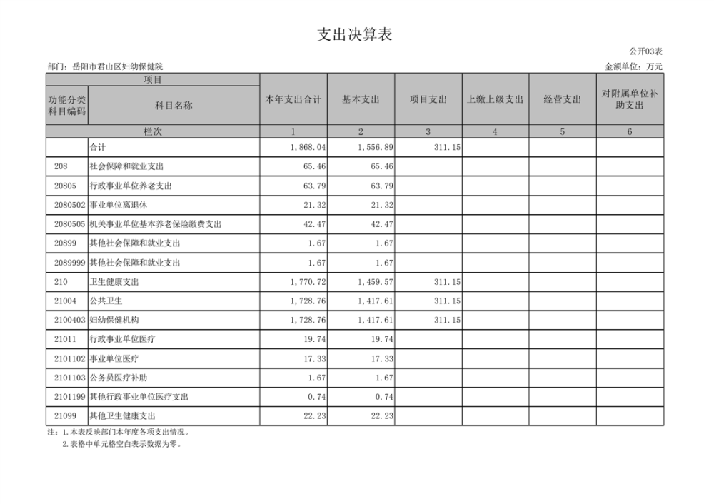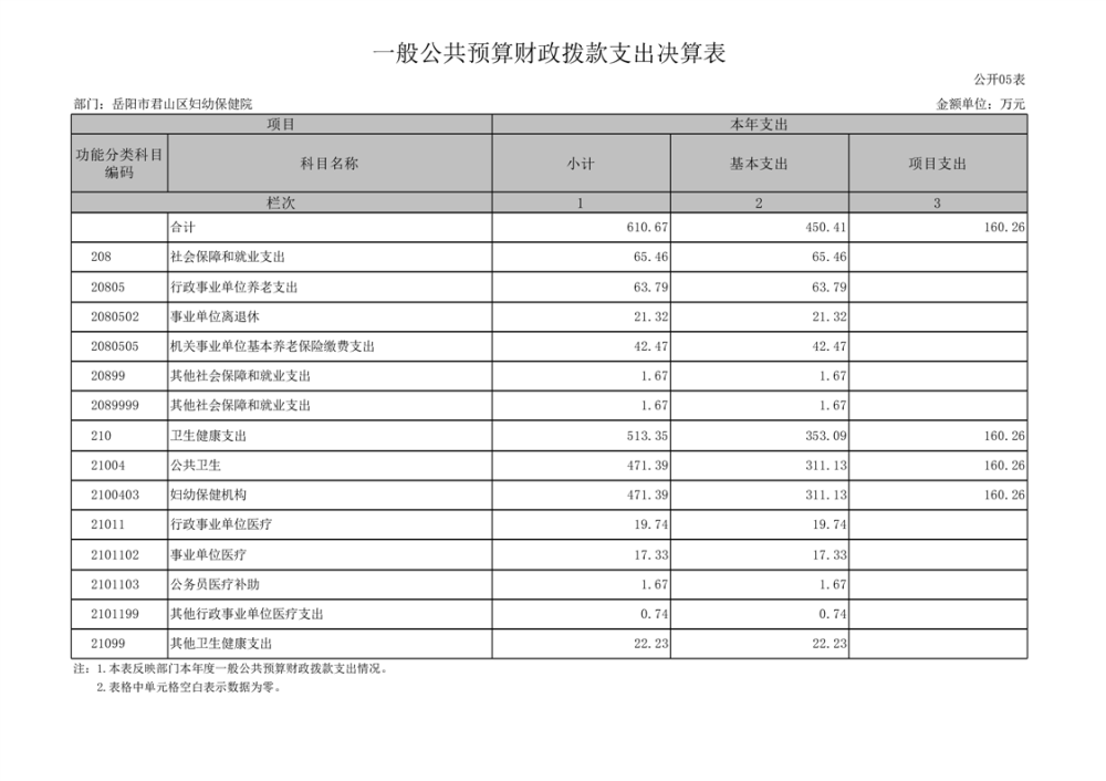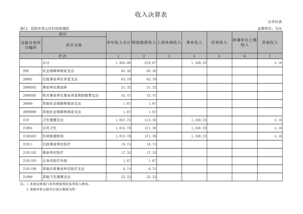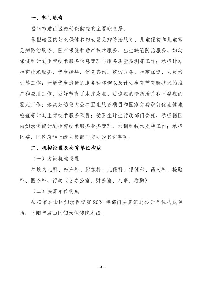 2024年度岳阳市君山区妇幼保健院部门决算公开