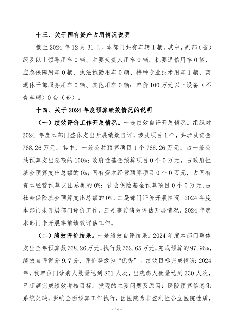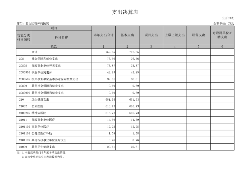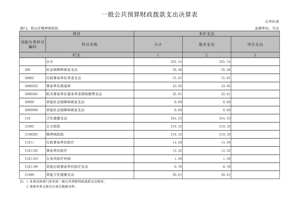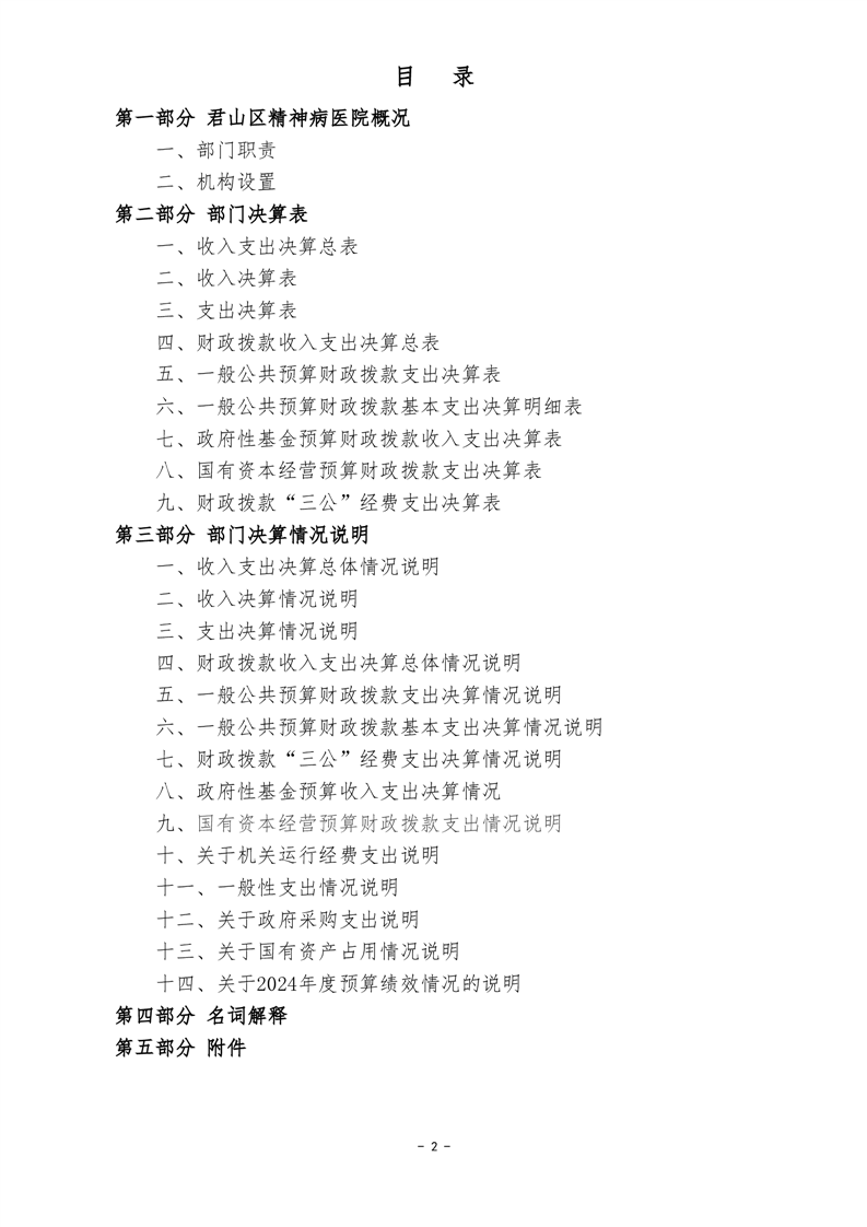 2024年度君山区精神病医院部门决算公开