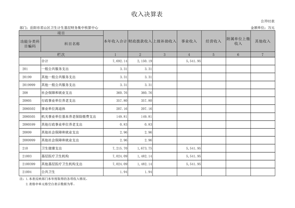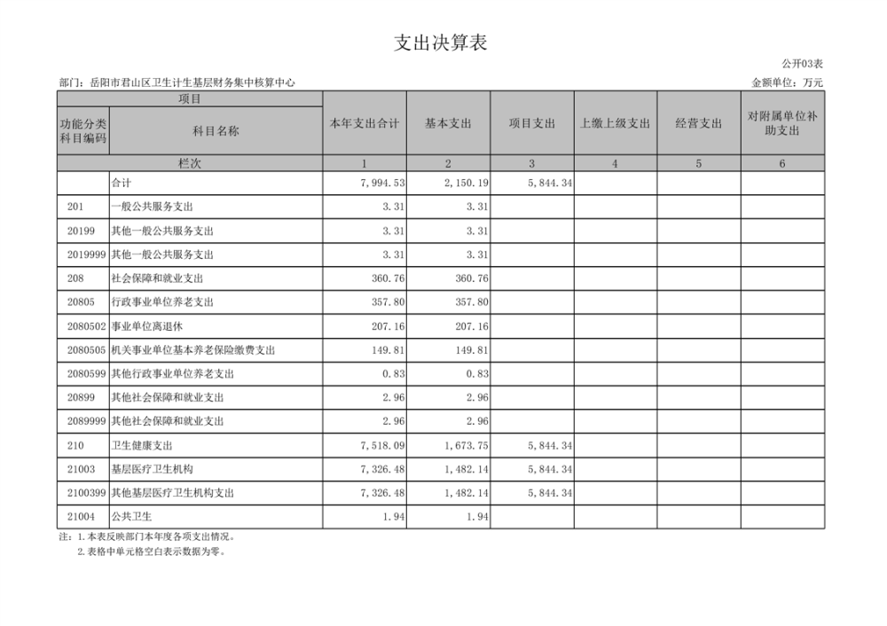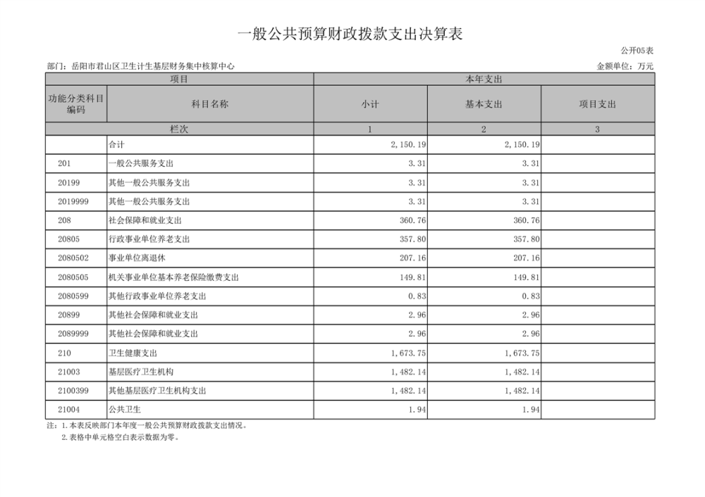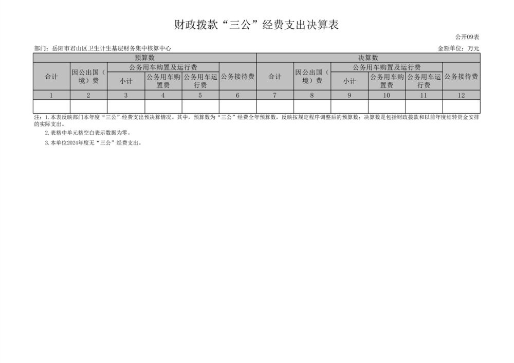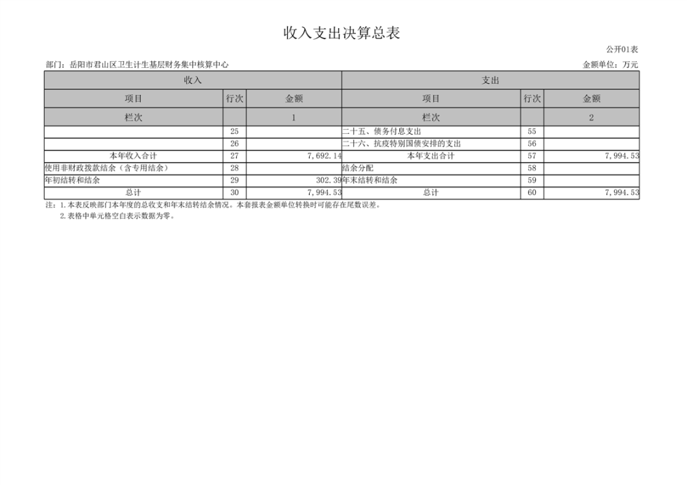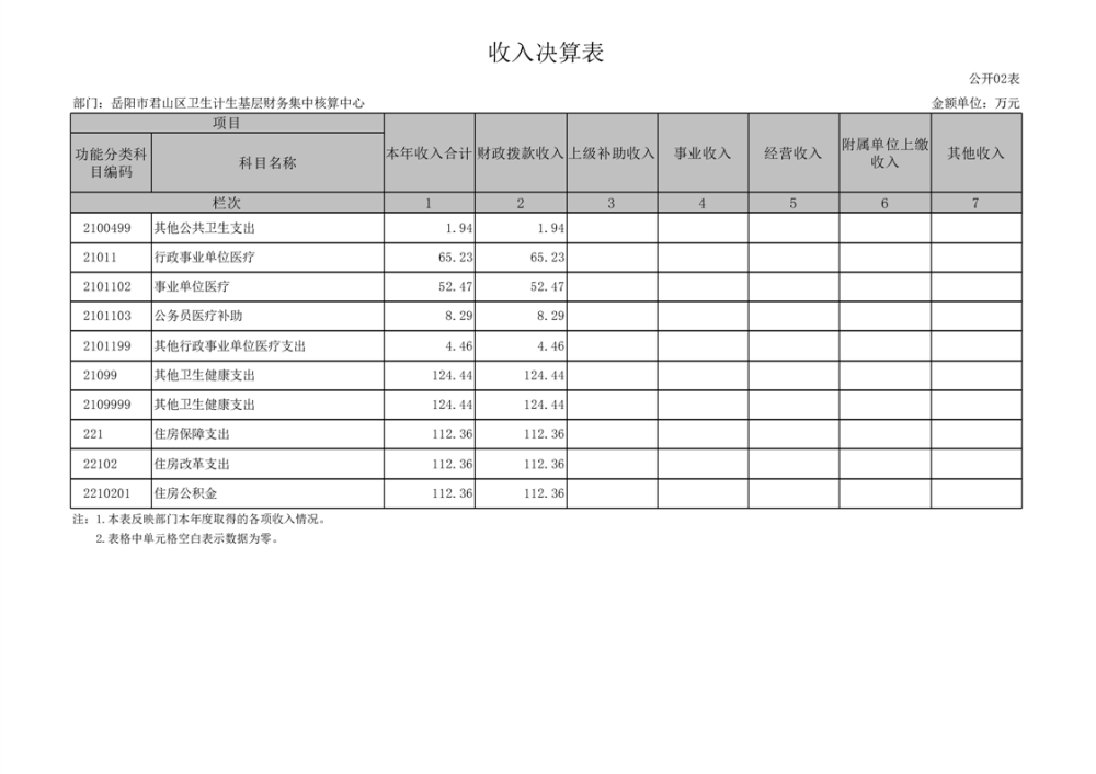 2024年度岳阳市君山区卫生计生基层财务集中核算中心部门决算公开