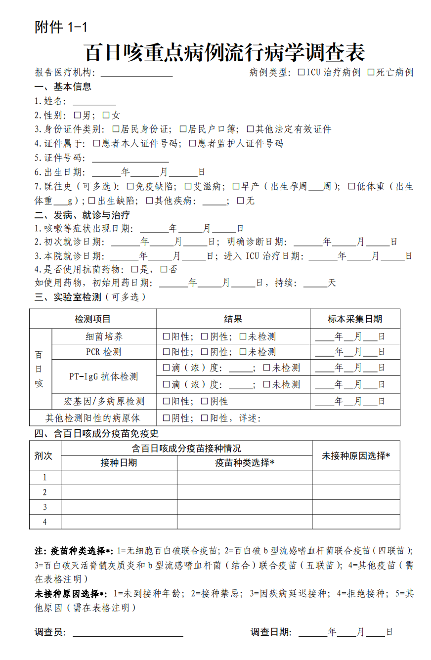 各地通过中国疾病预防控制信息系统填写《百日咳重点病例流行病学调查表》。