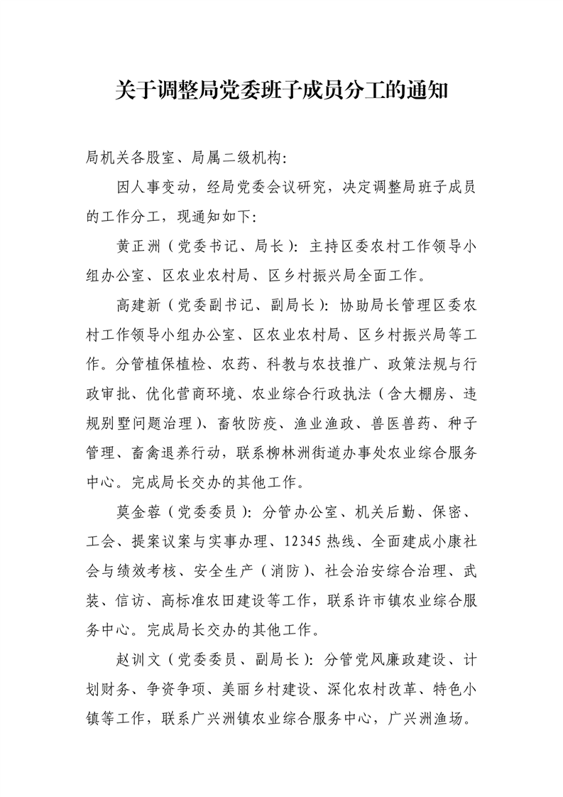 关于调整局党委班子成员分工的通知(2022)
