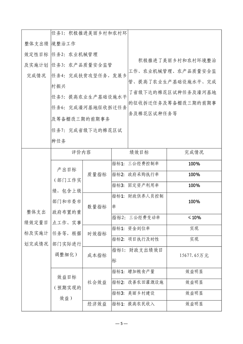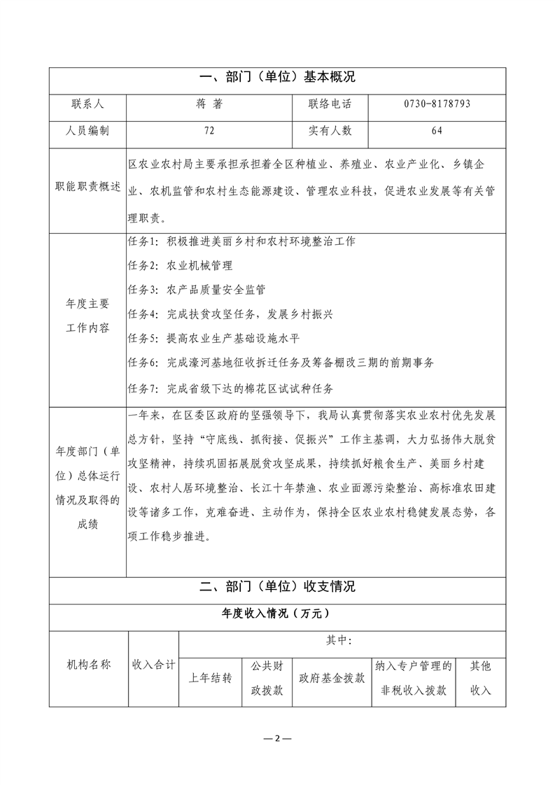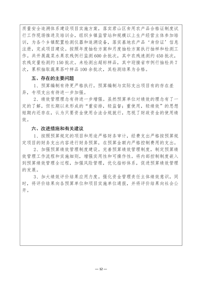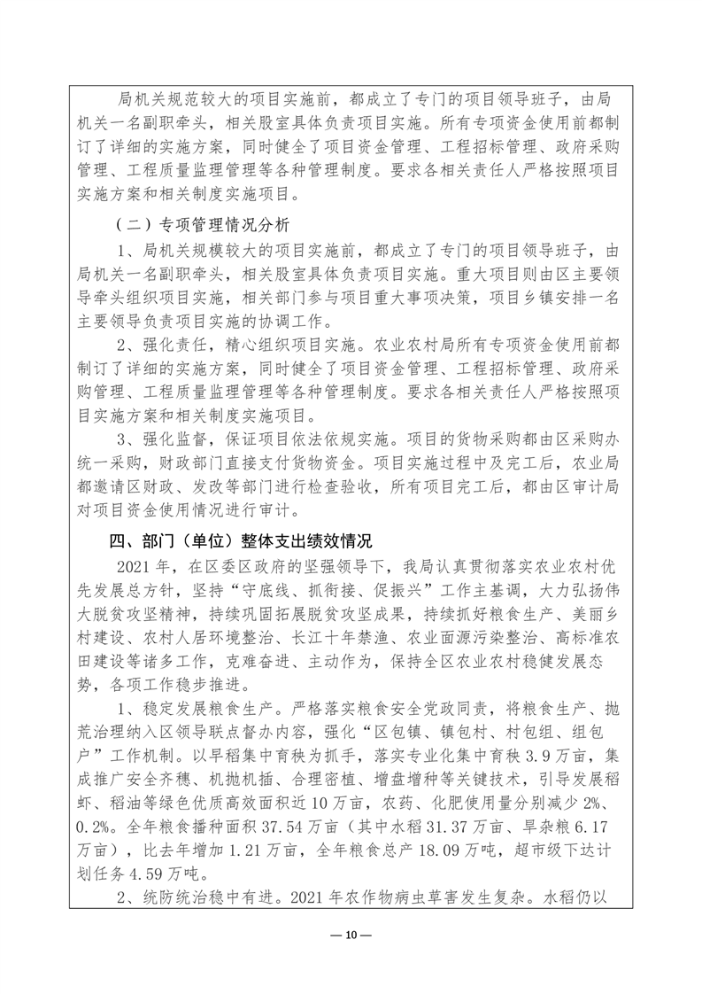 君山区2021年度农业农村局整体支出绩效评价自评报告