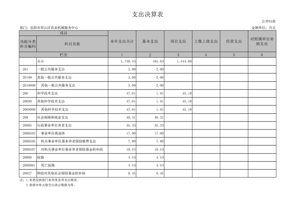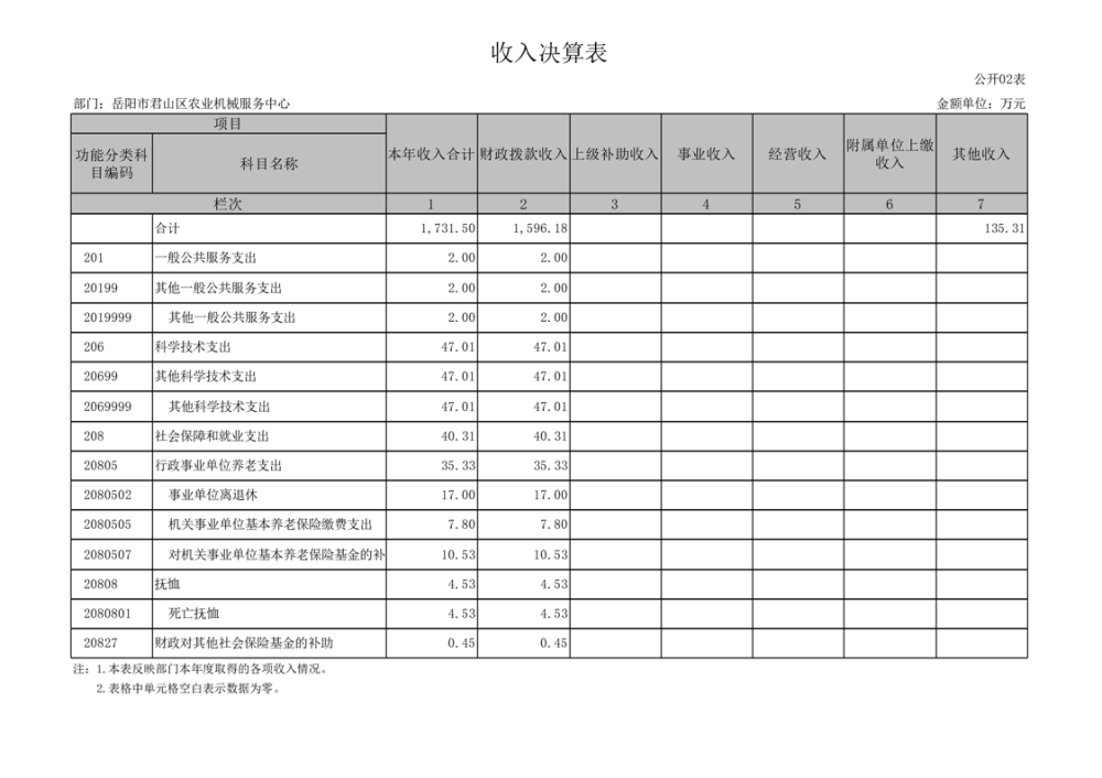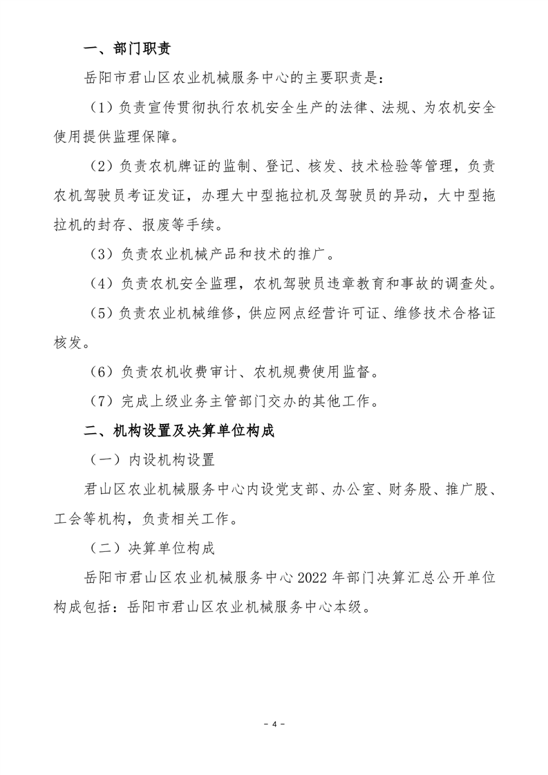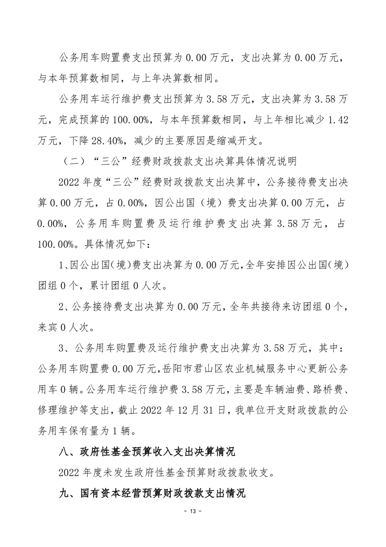 2022年度岳阳市君山区农业机械服务中心部门决算公开说明