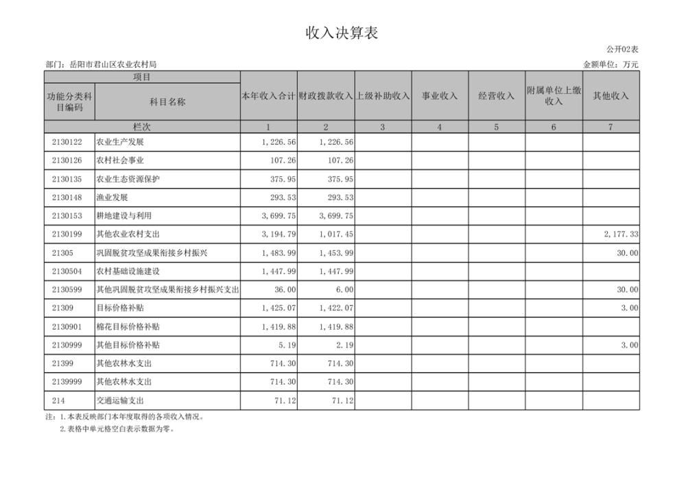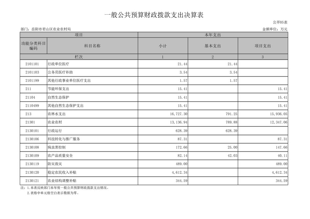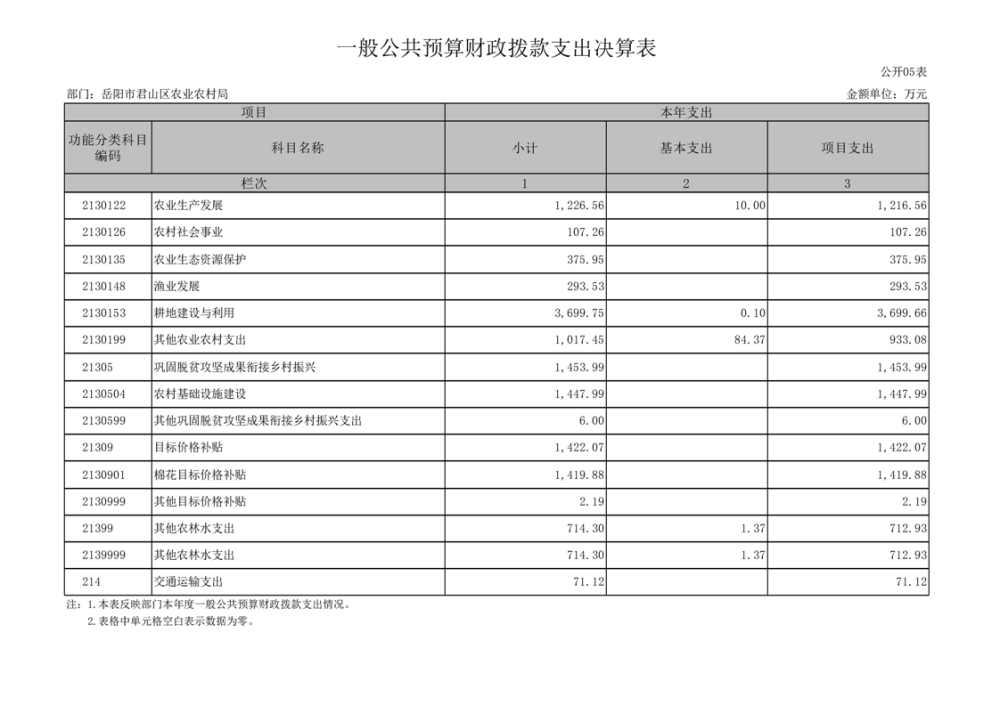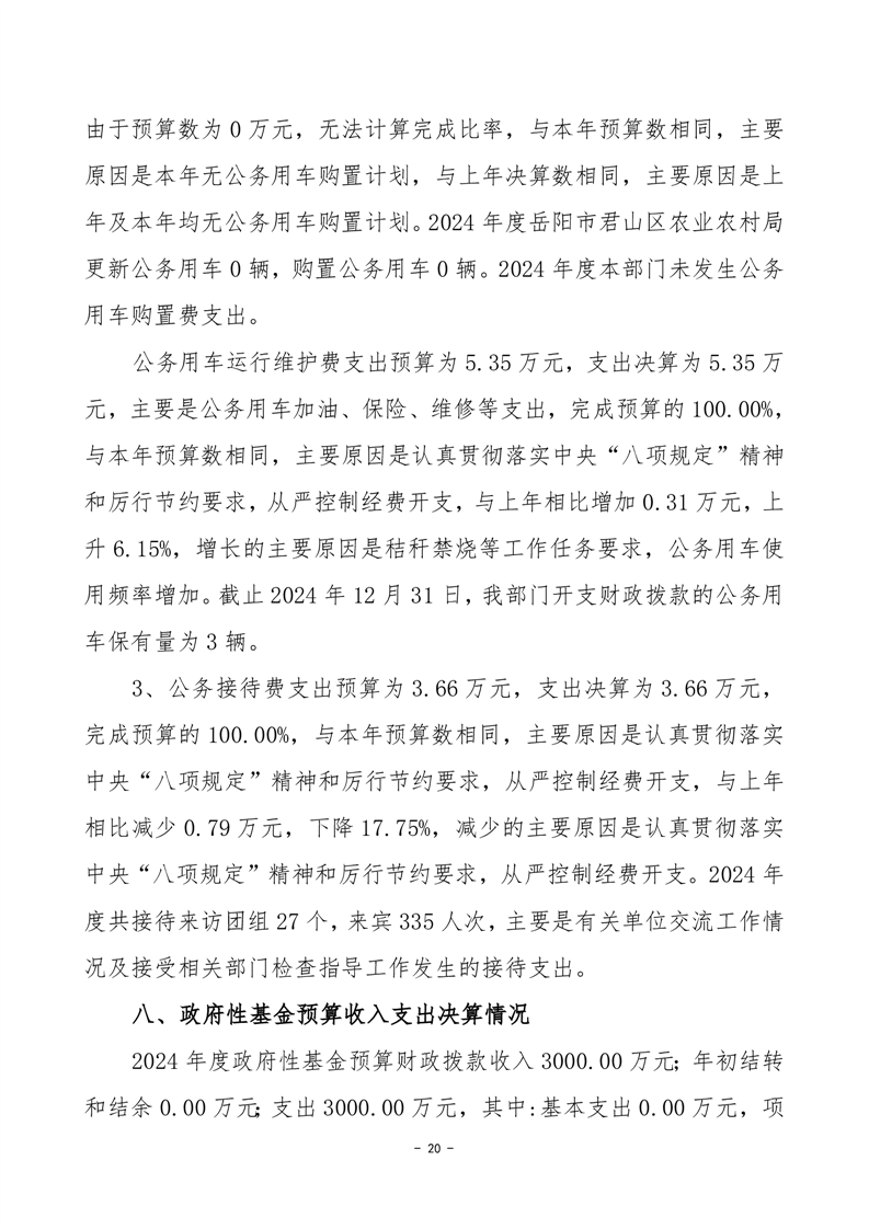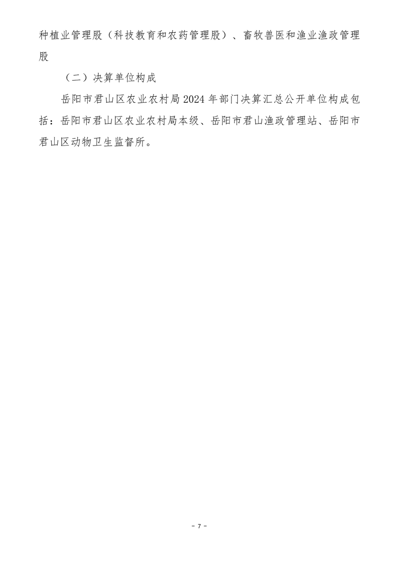 2024年度岳阳市君山区农业农村局(本级)部门决算公开