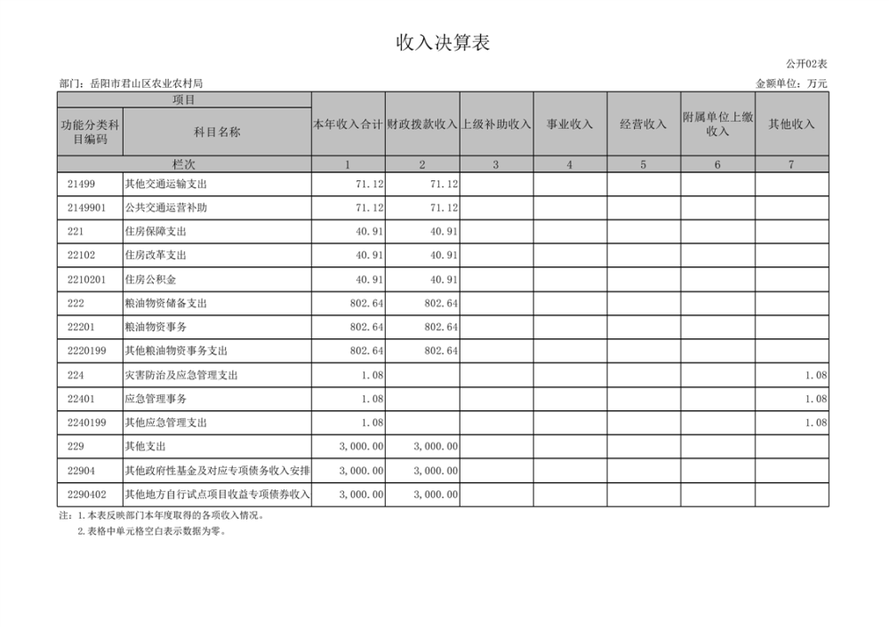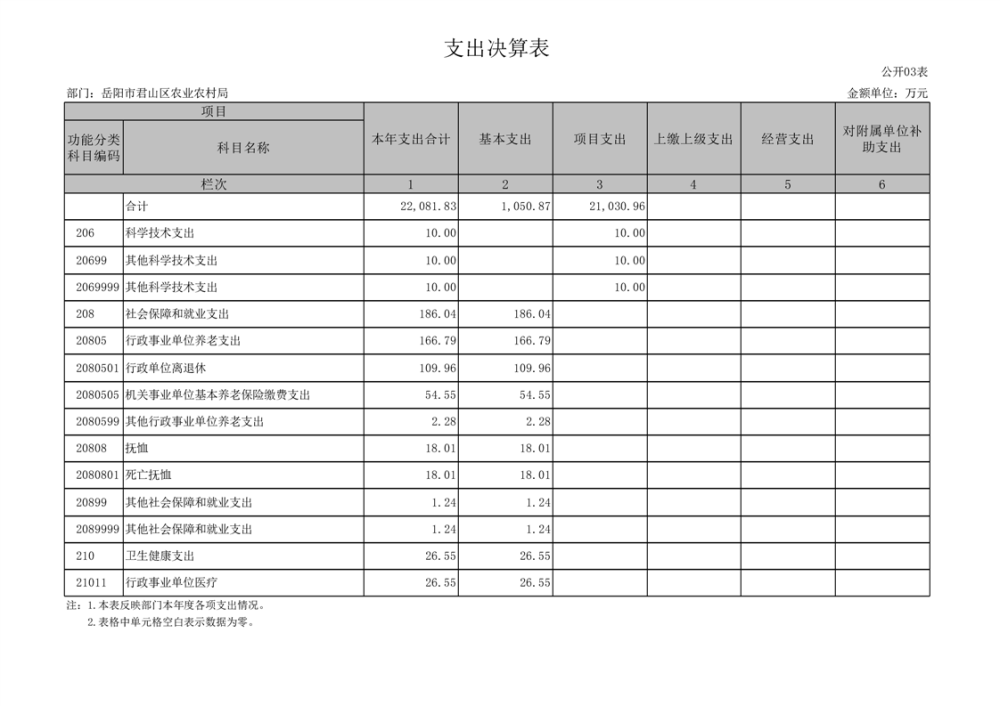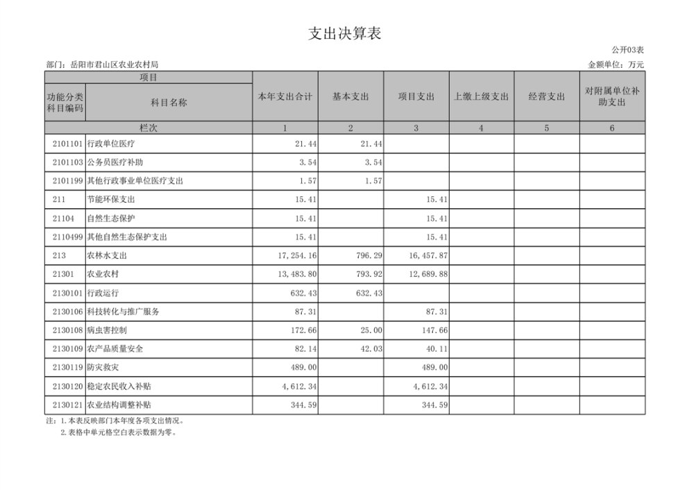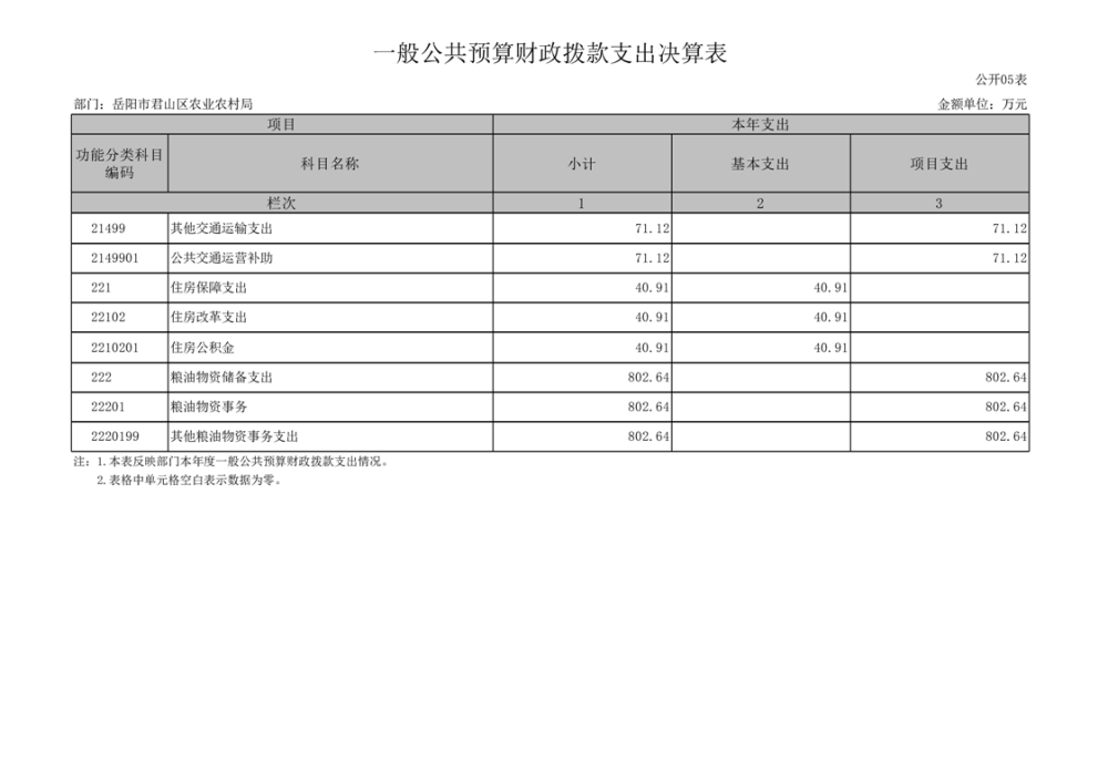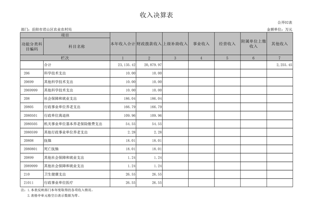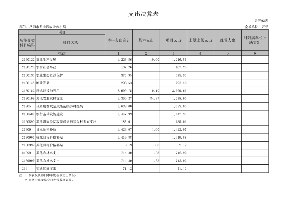 2024年度岳阳市君山区农业农村局(本级)部门决算公开