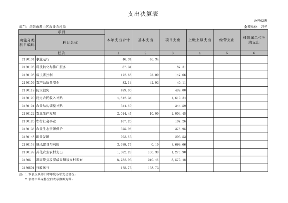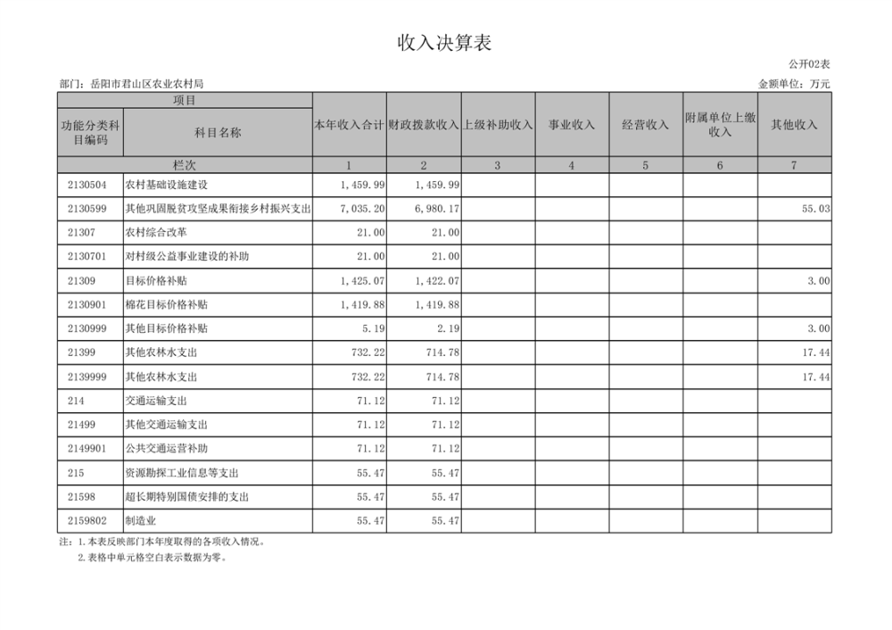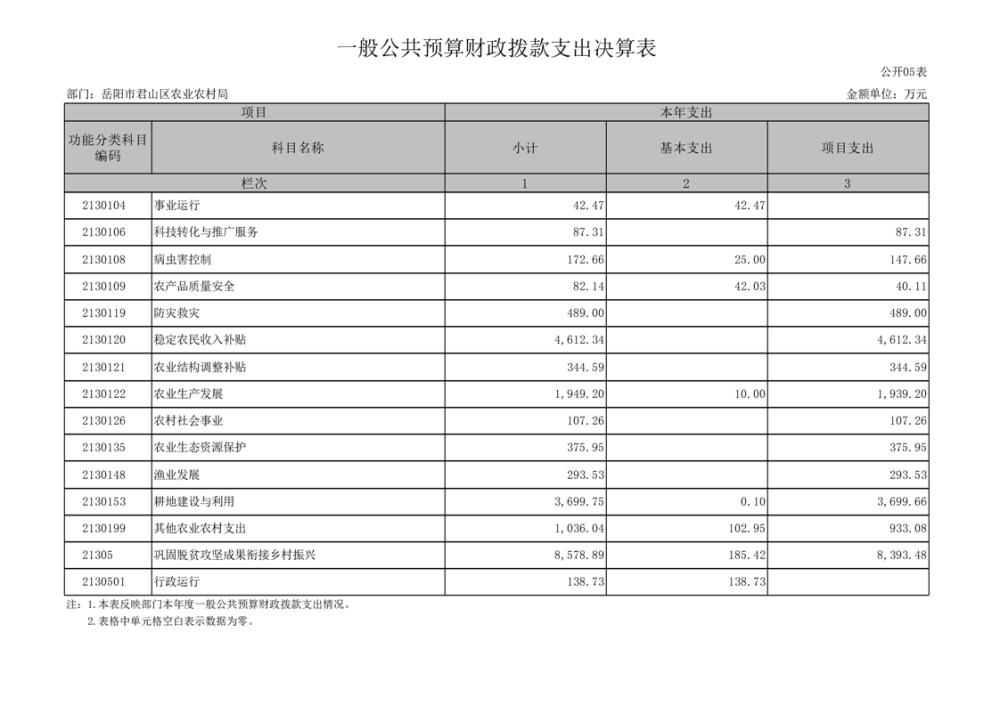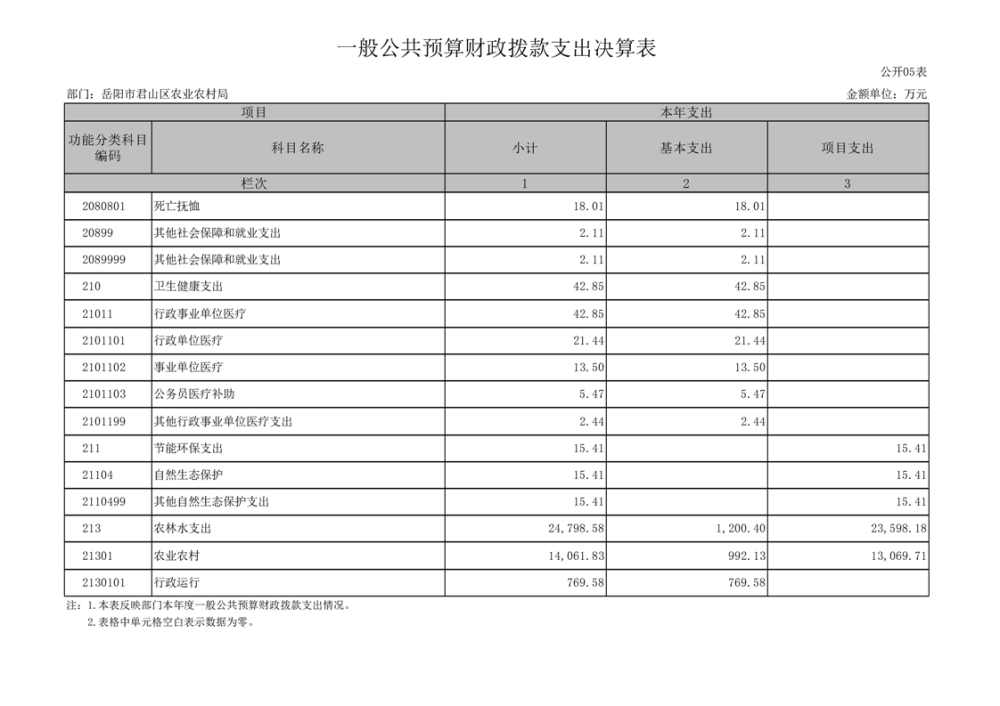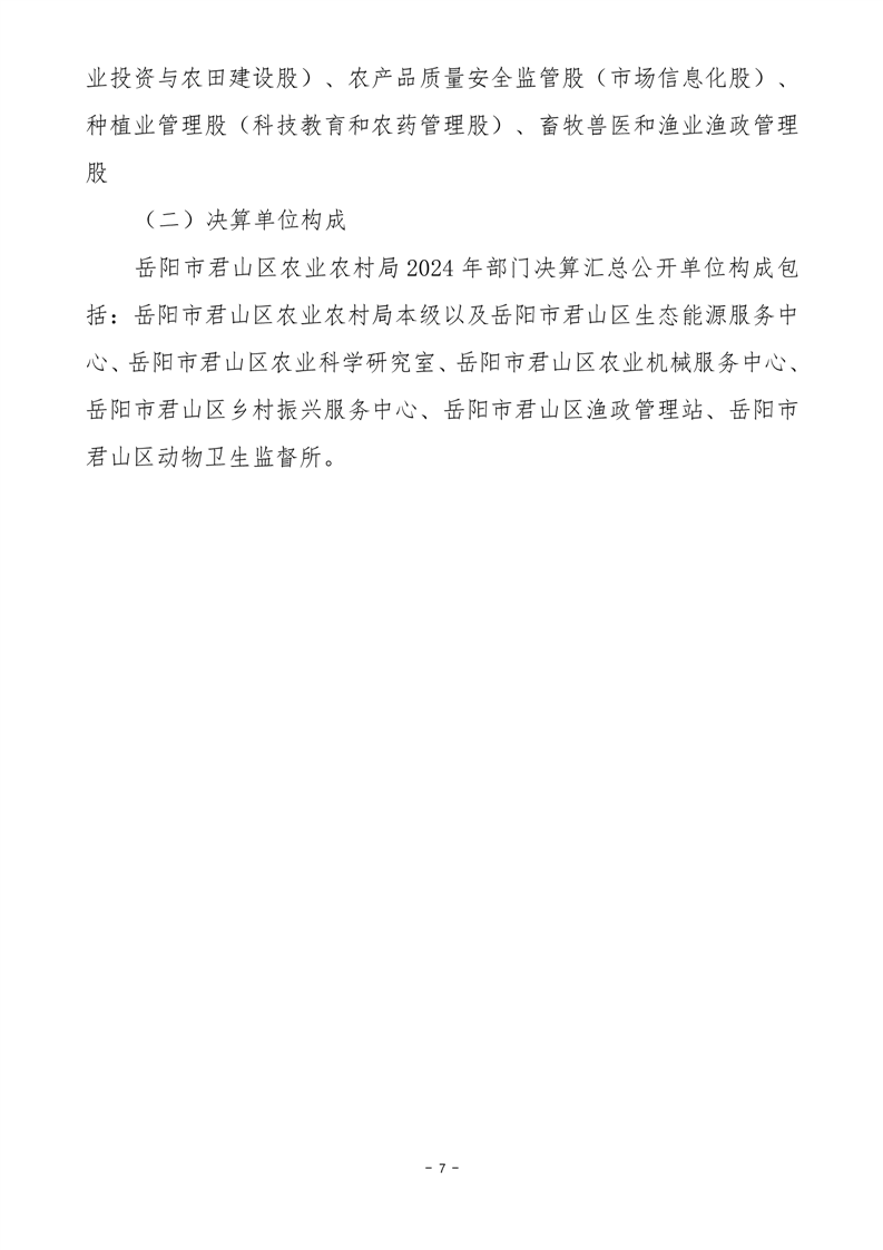 2024年度岳阳市君山区农业农村局(汇总)部门决算公开