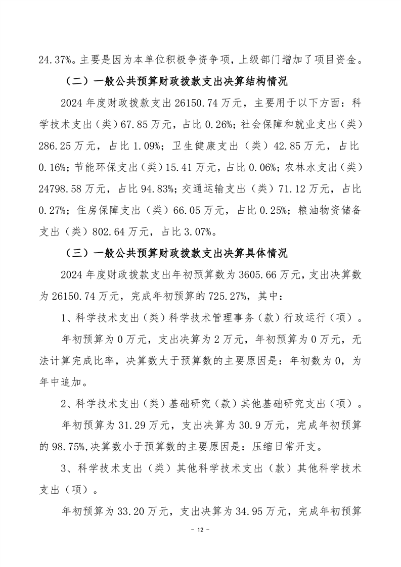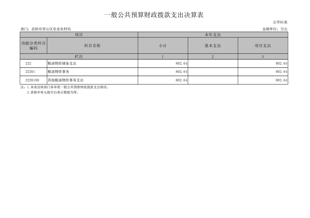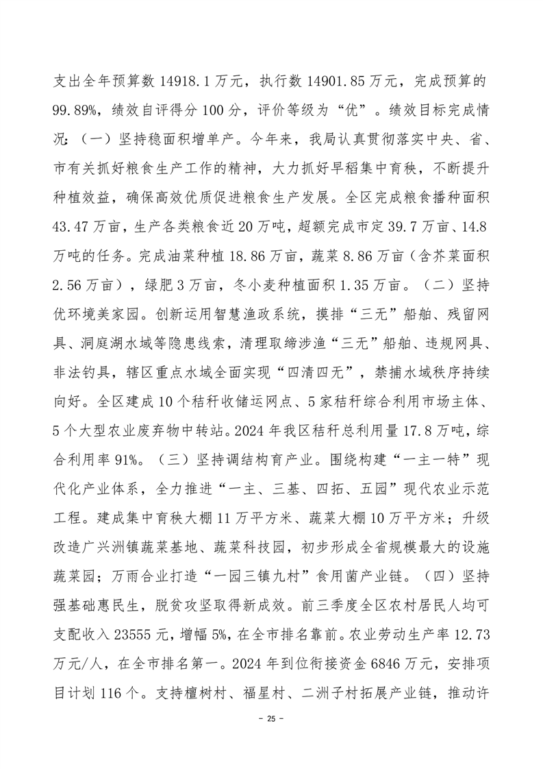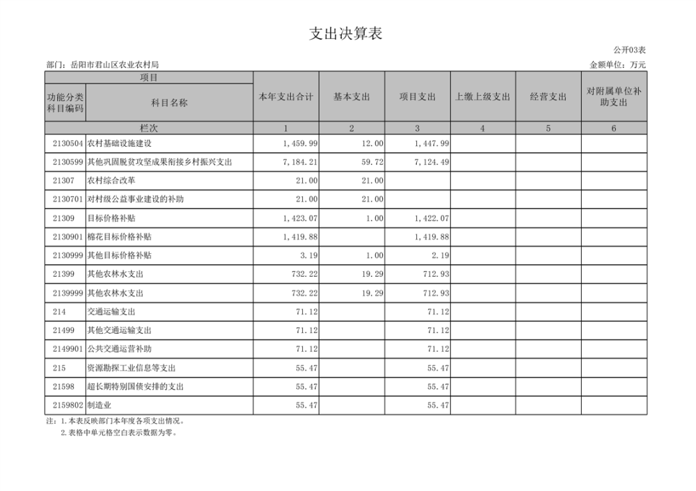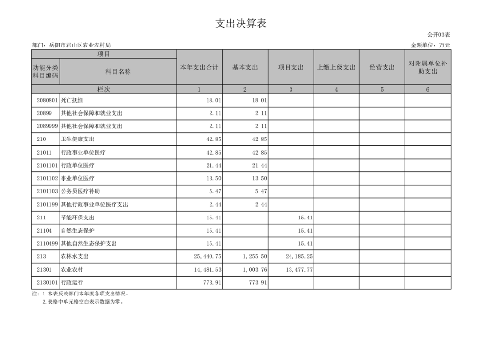 2024年度岳阳市君山区农业农村局(汇总)部门决算公开