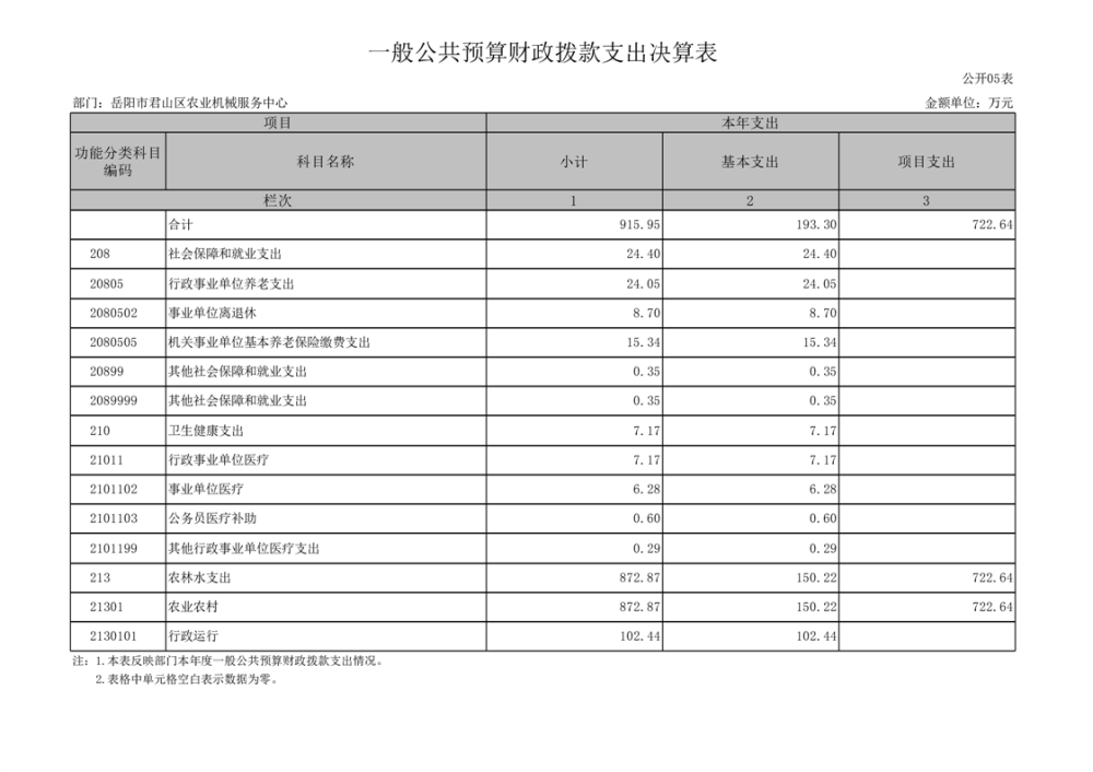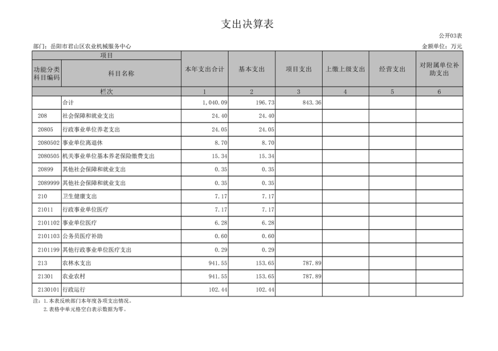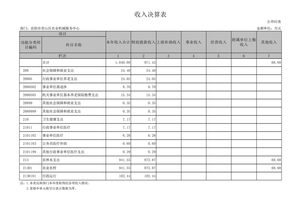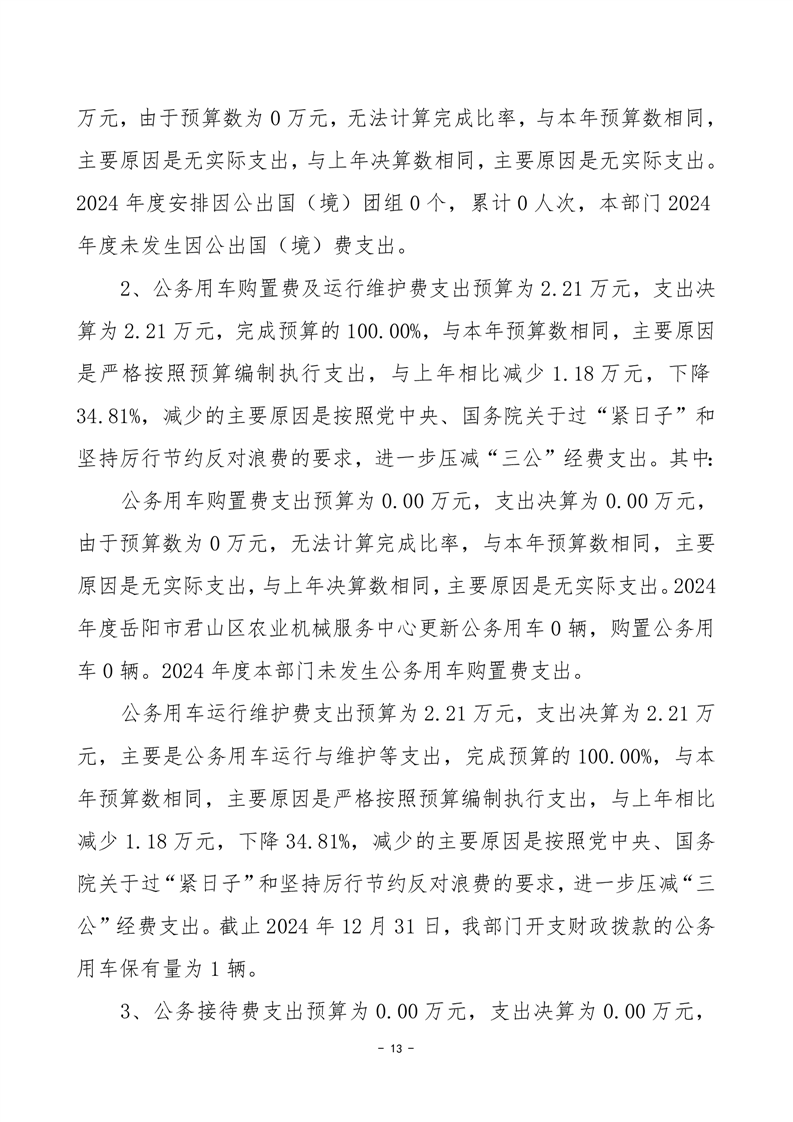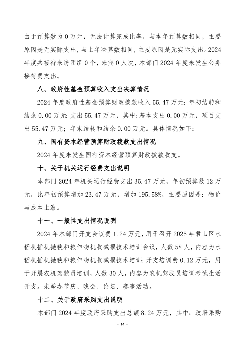 2024年度岳阳市君山区农业机械服务中心部门决算公开