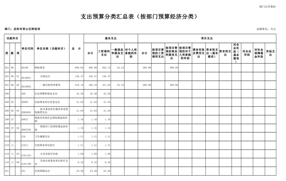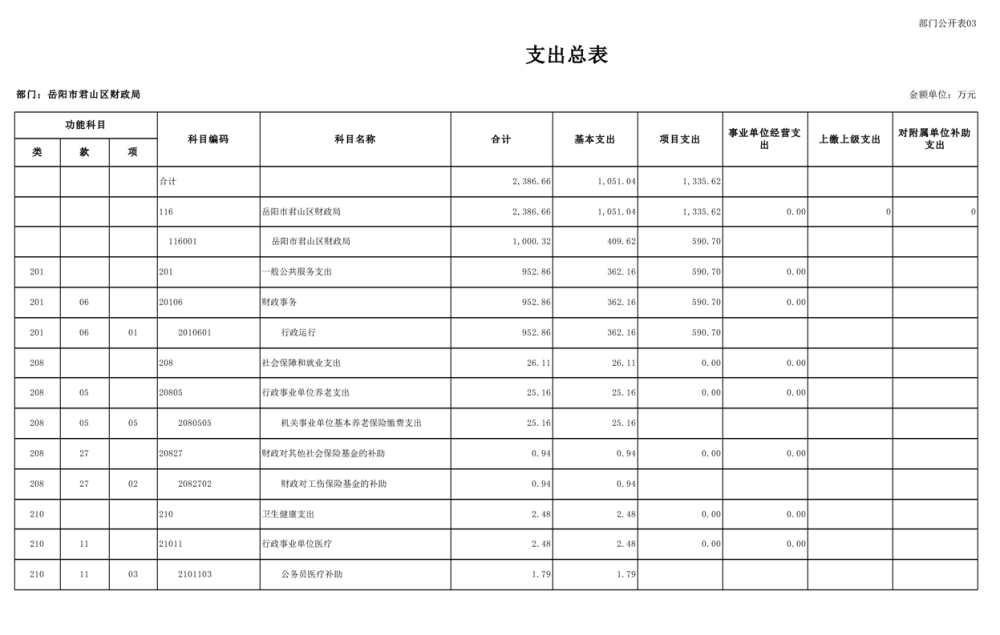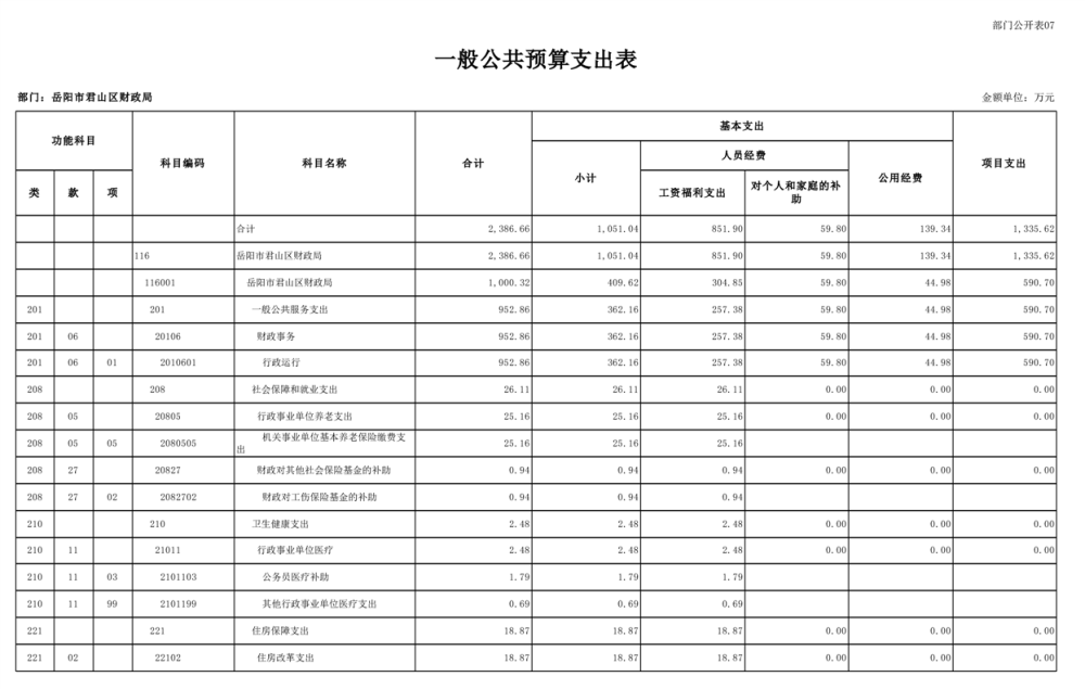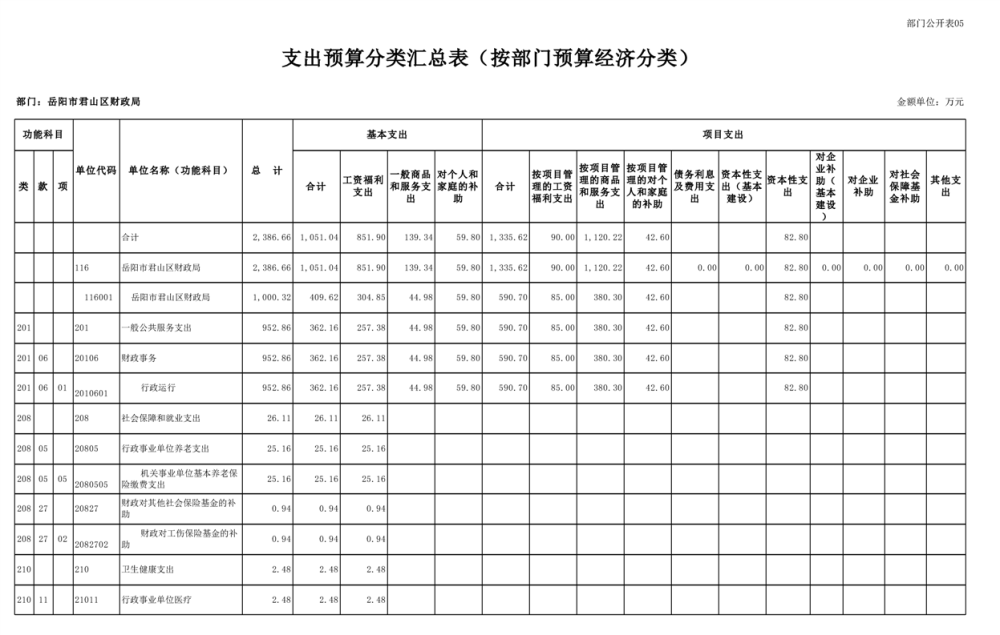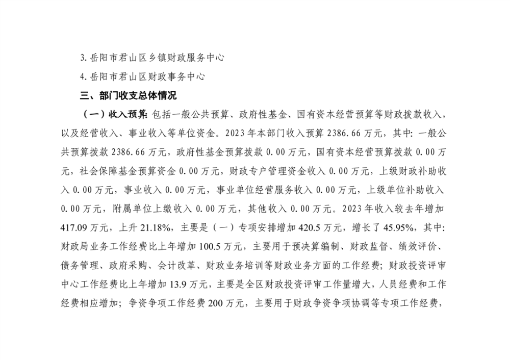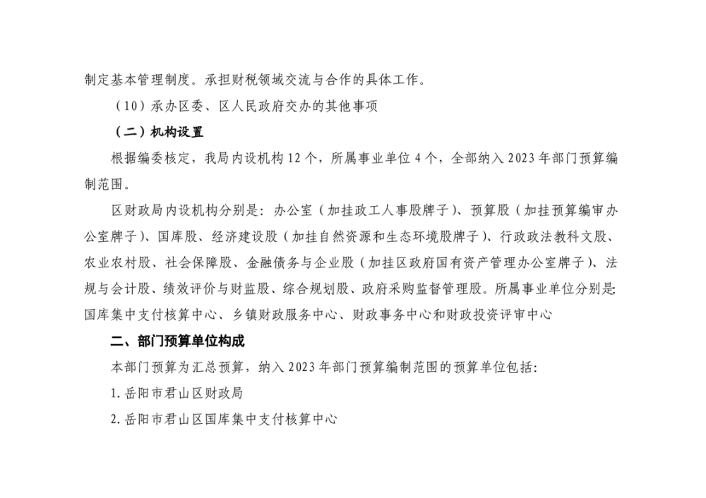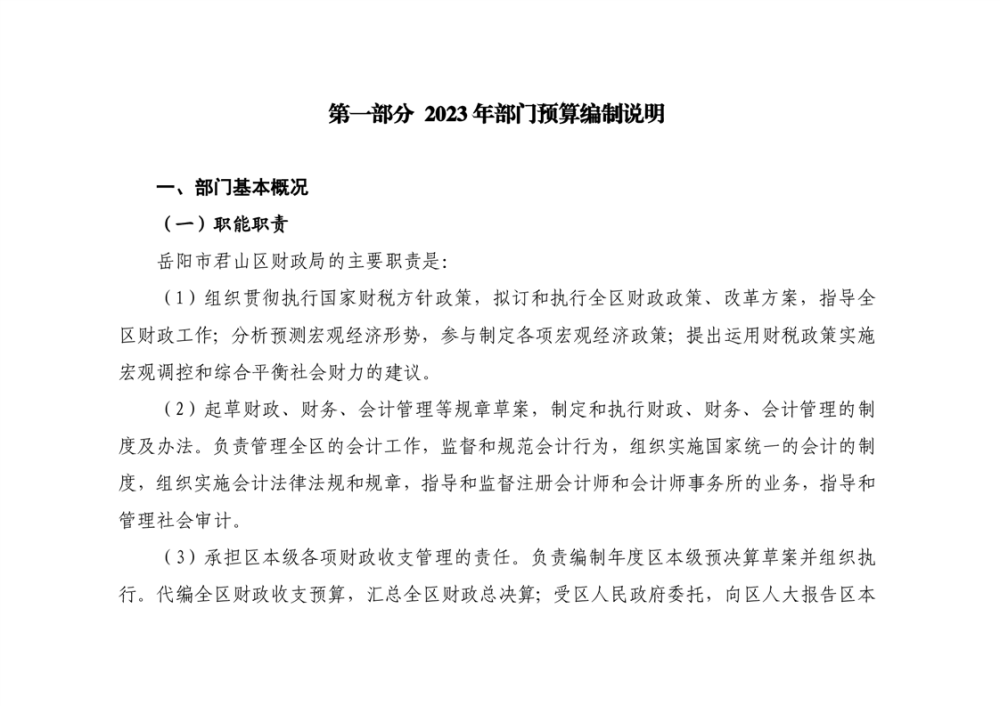 2023年岳阳市君山区财政局部门(汇总)预算公开说明