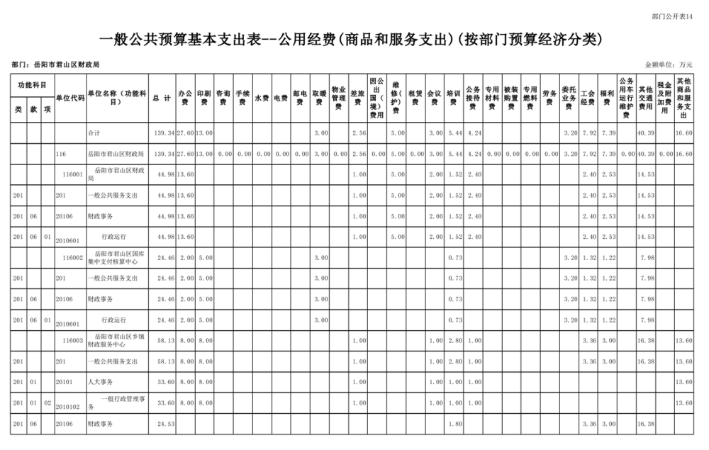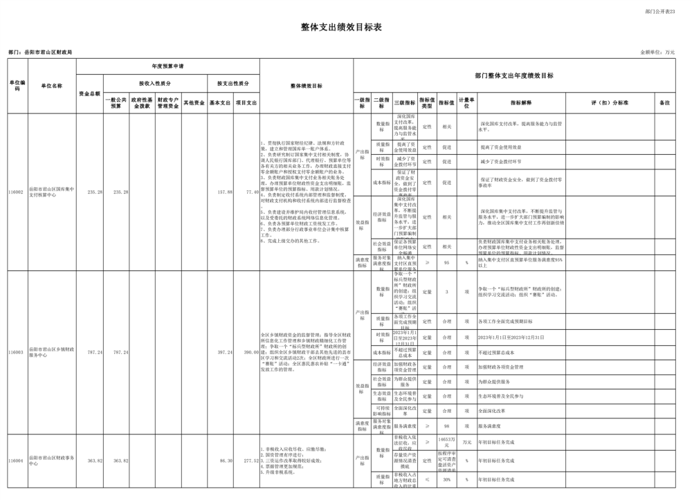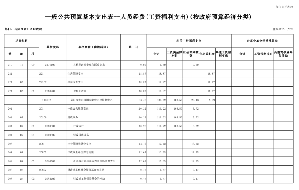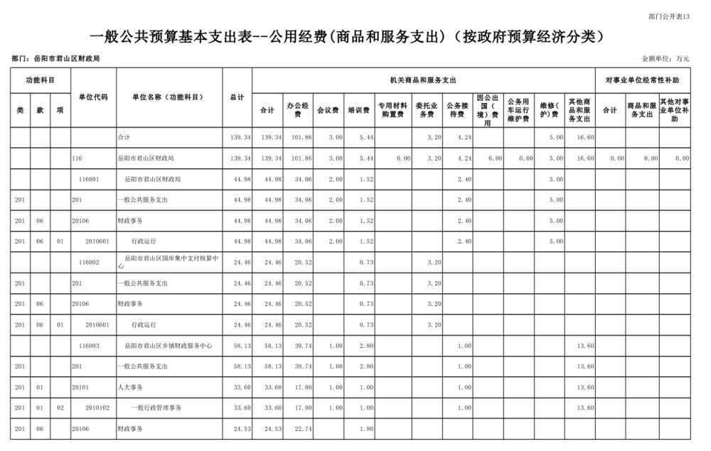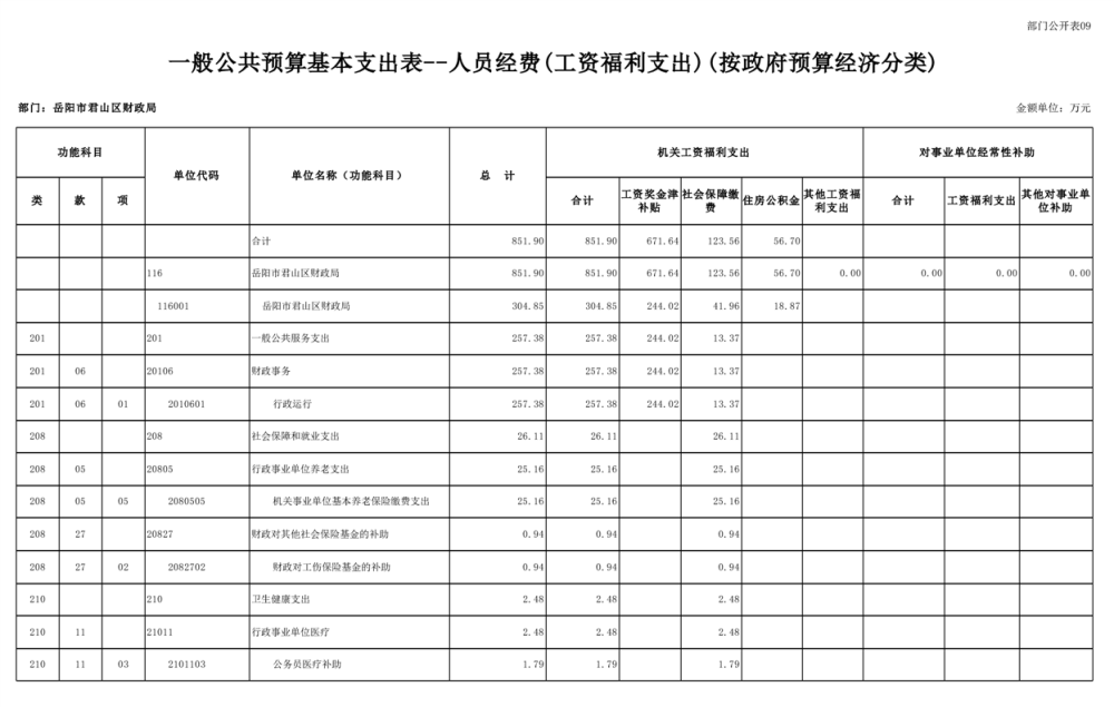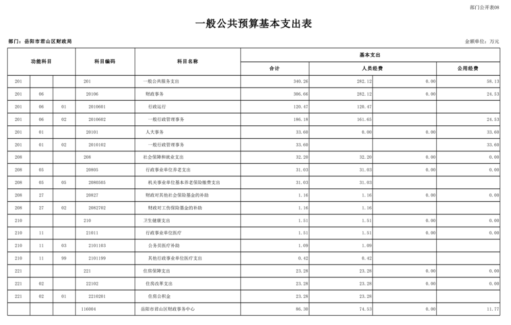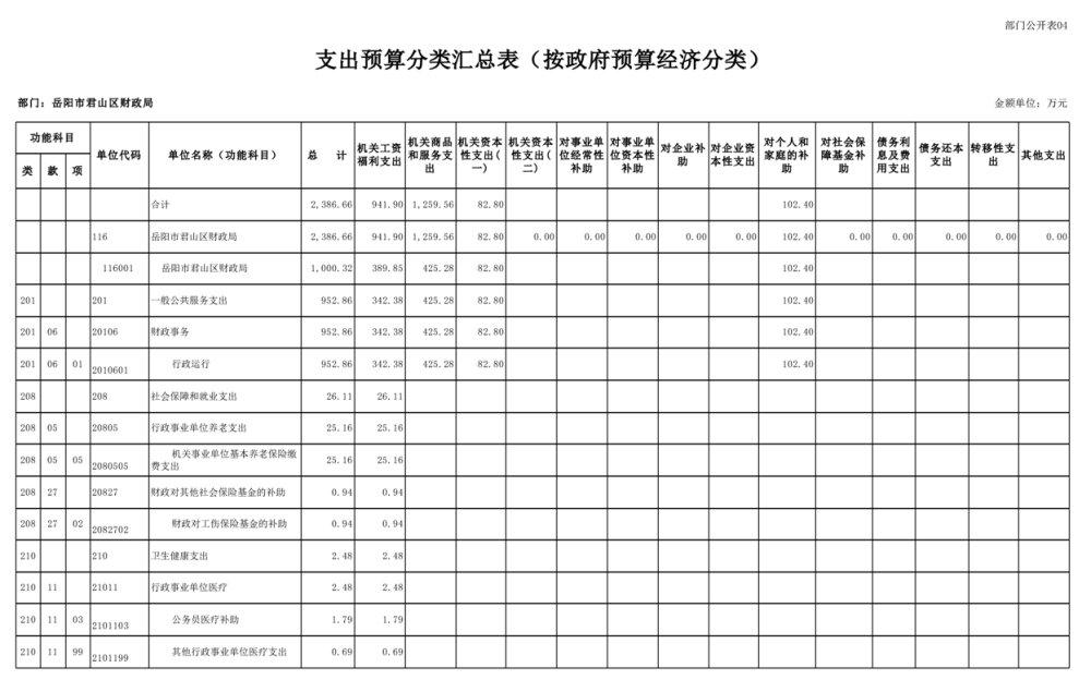 2023年岳阳市君山区财政局部门(汇总)预算公开说明
