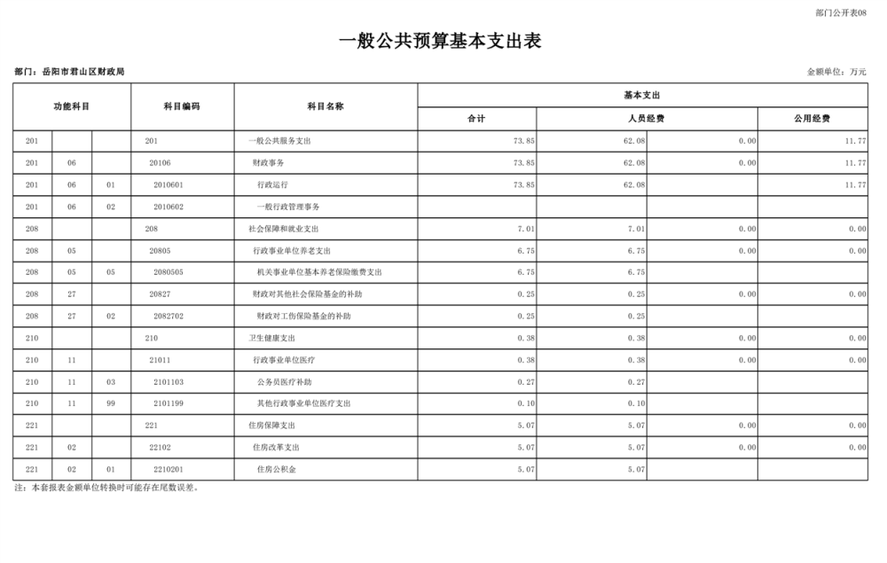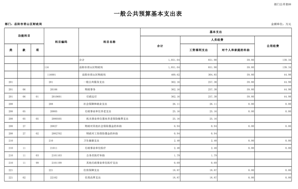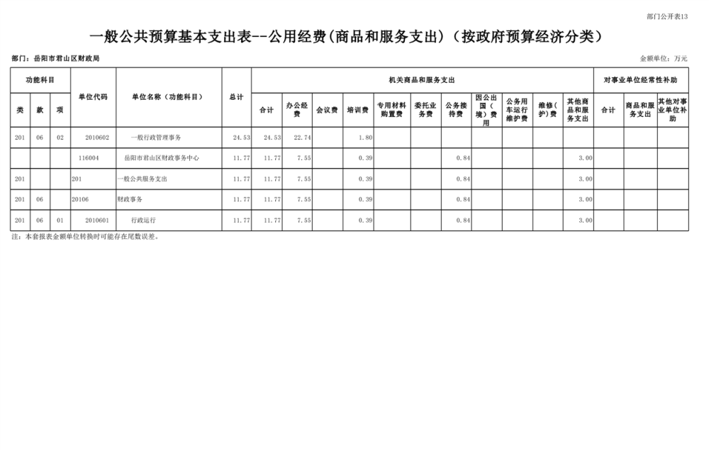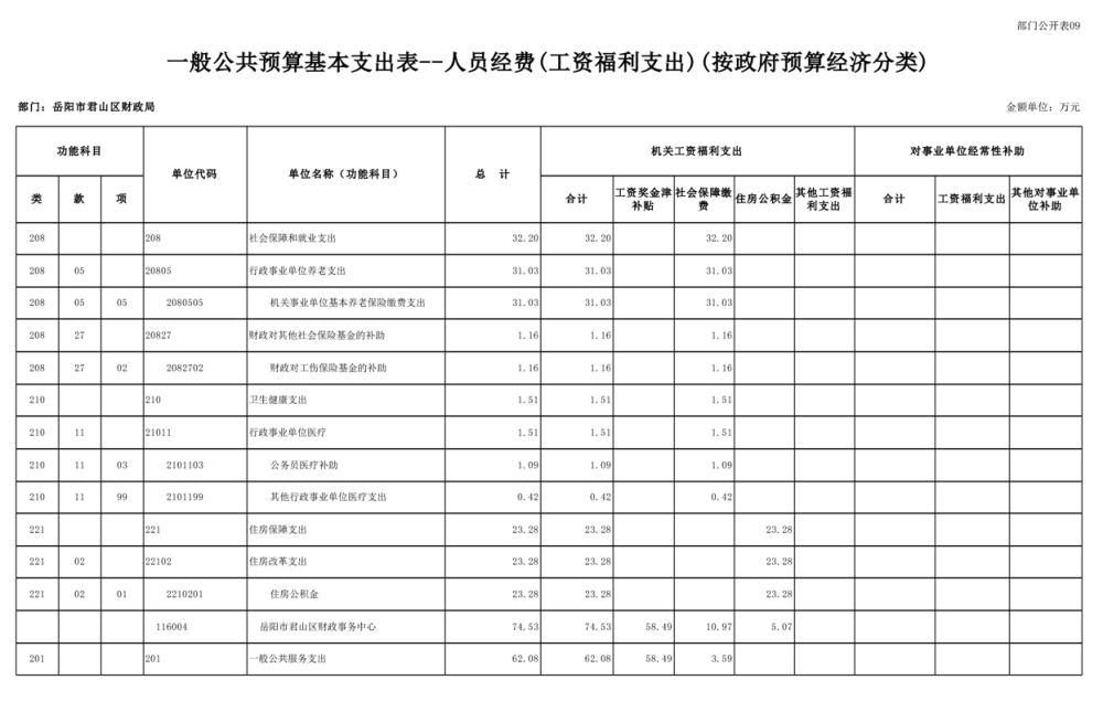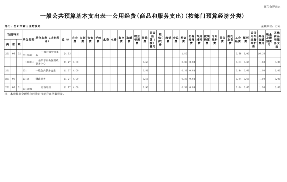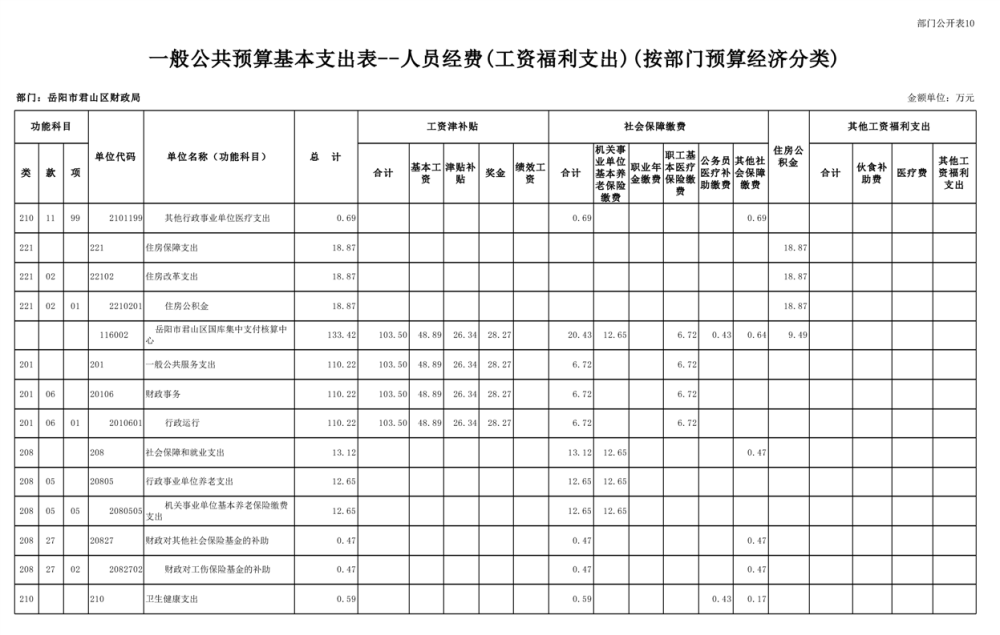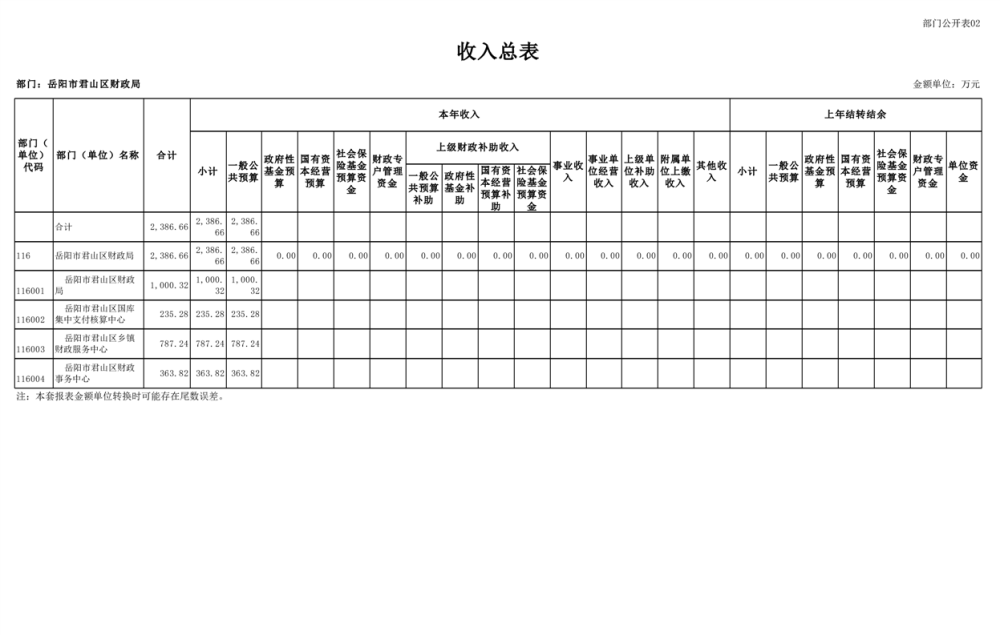 2023年岳阳市君山区财政局部门(汇总)预算公开说明