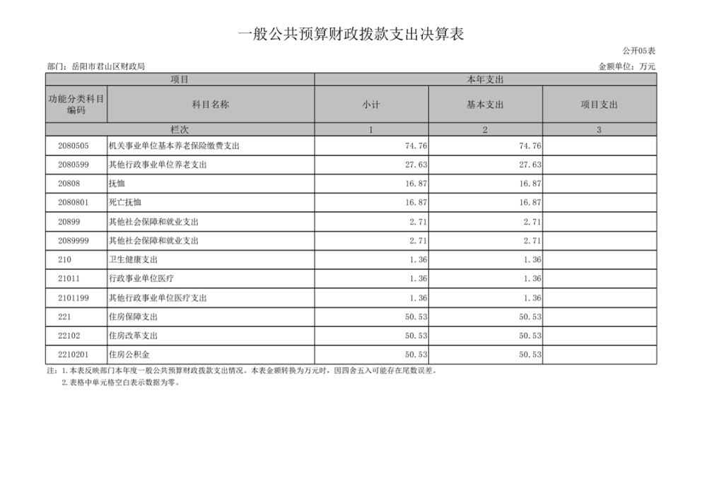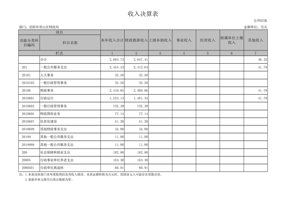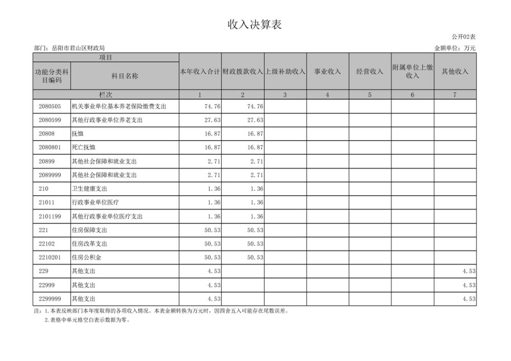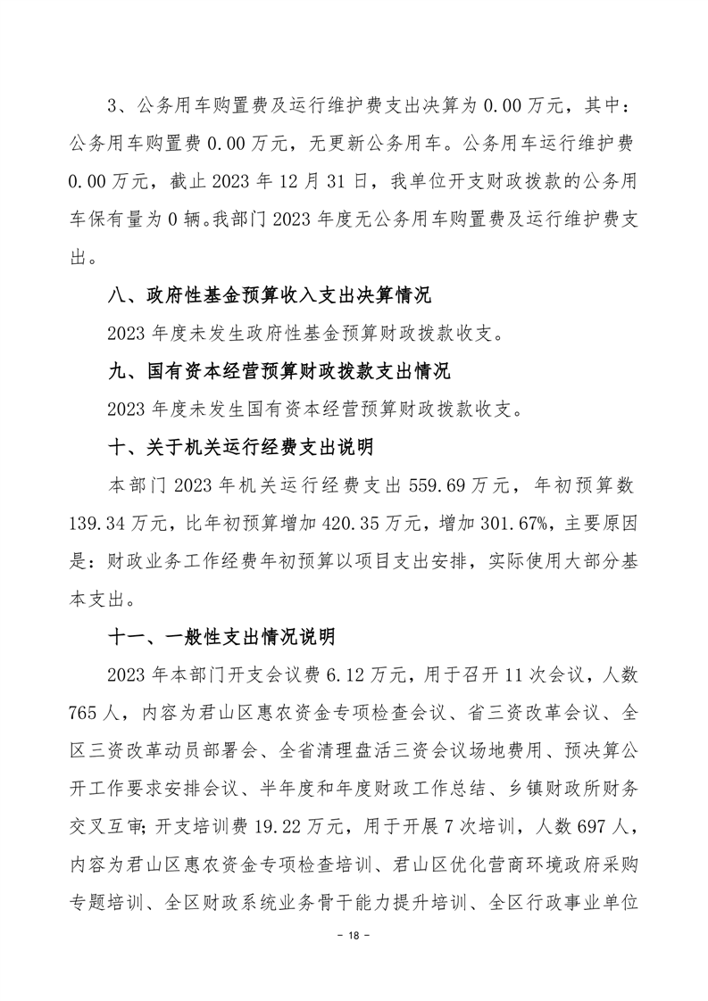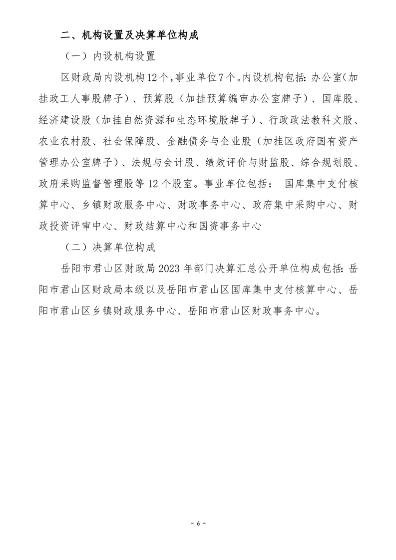 2023年度岳阳市君山区财政局(汇总)决算公开