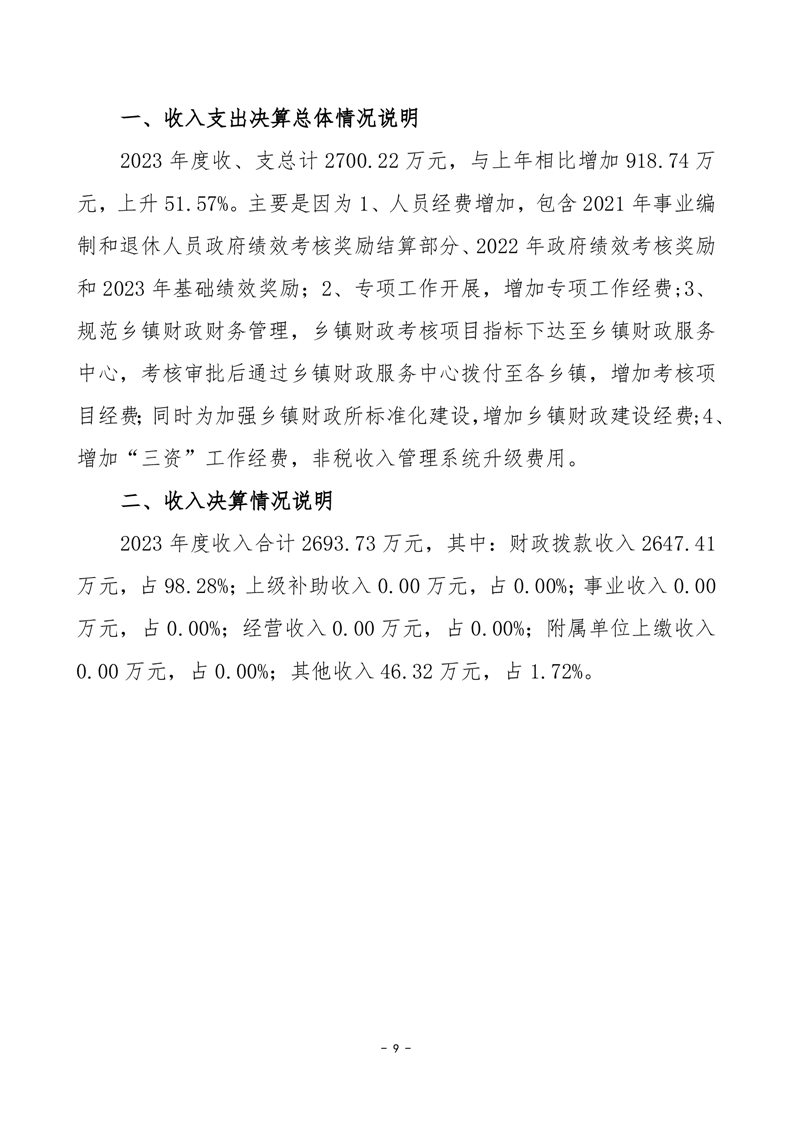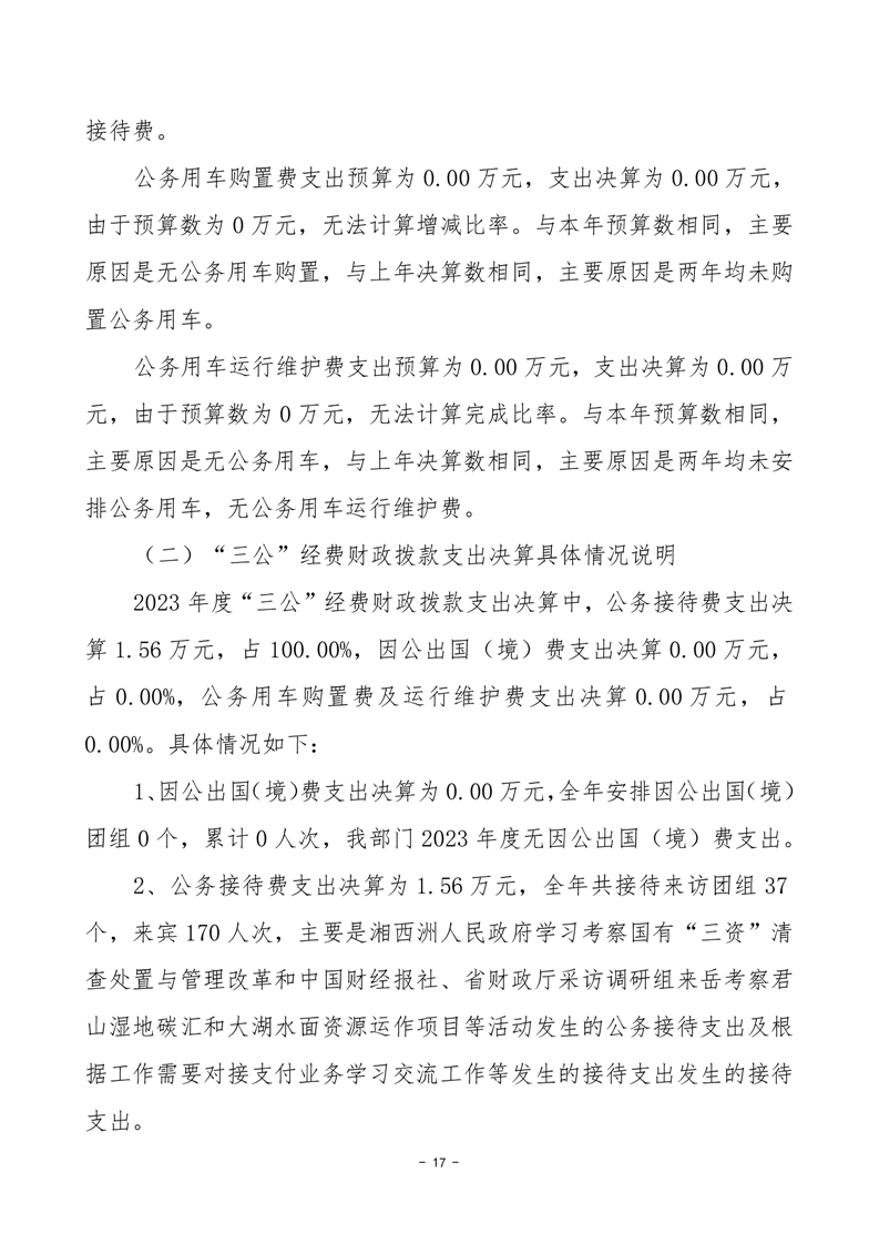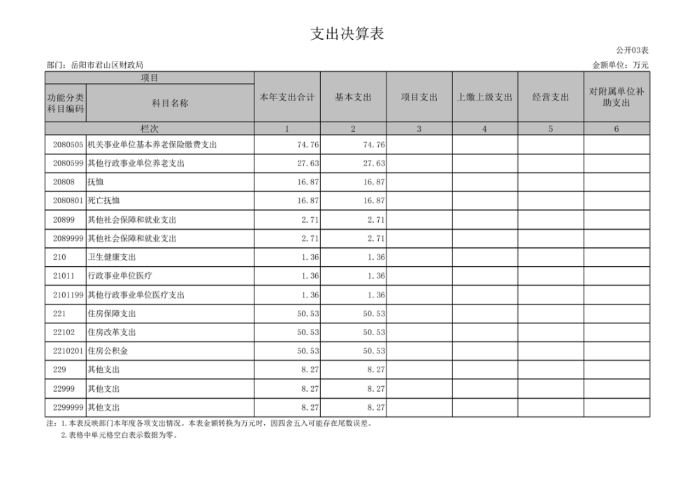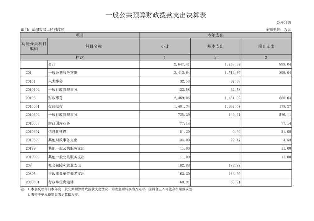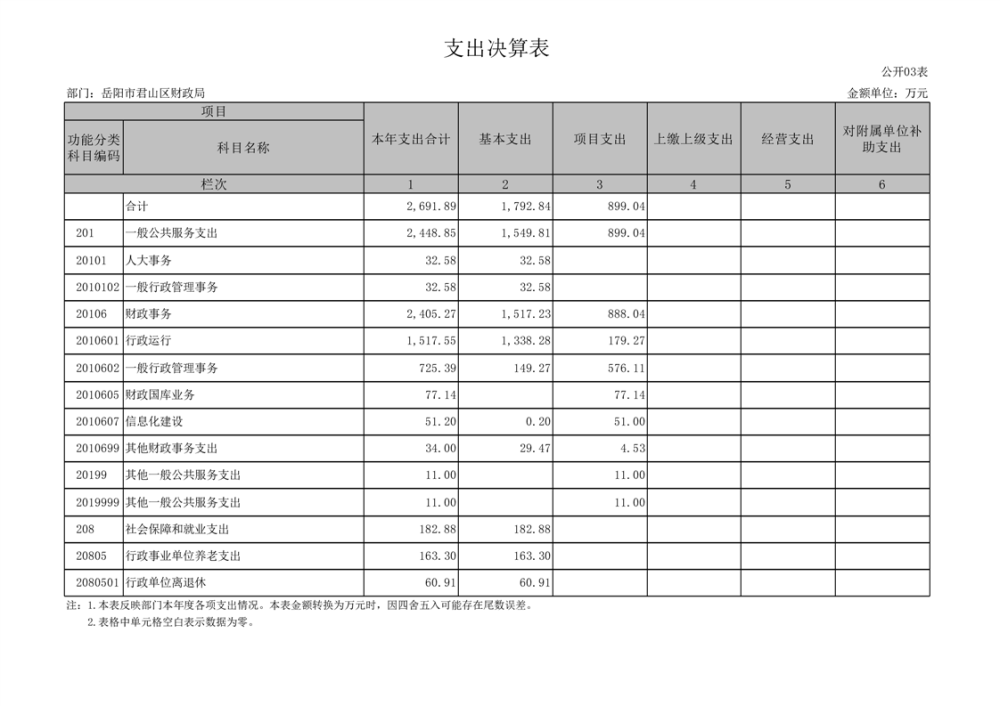 2023年度岳阳市君山区财政局(汇总)决算公开