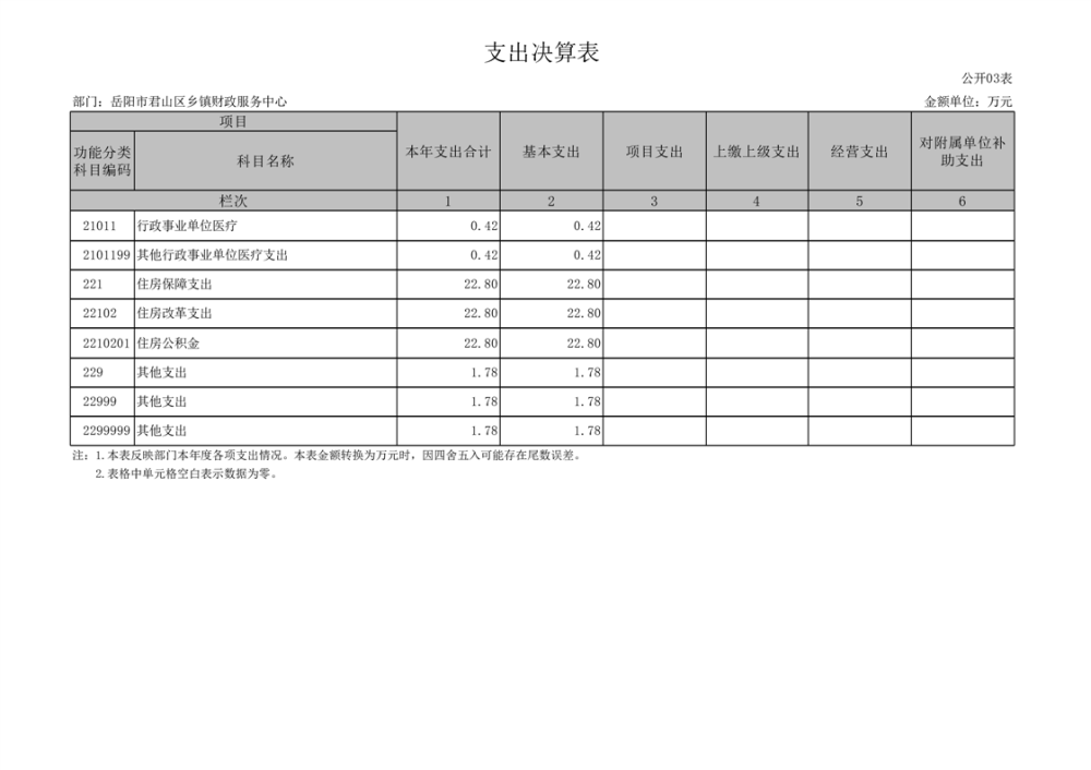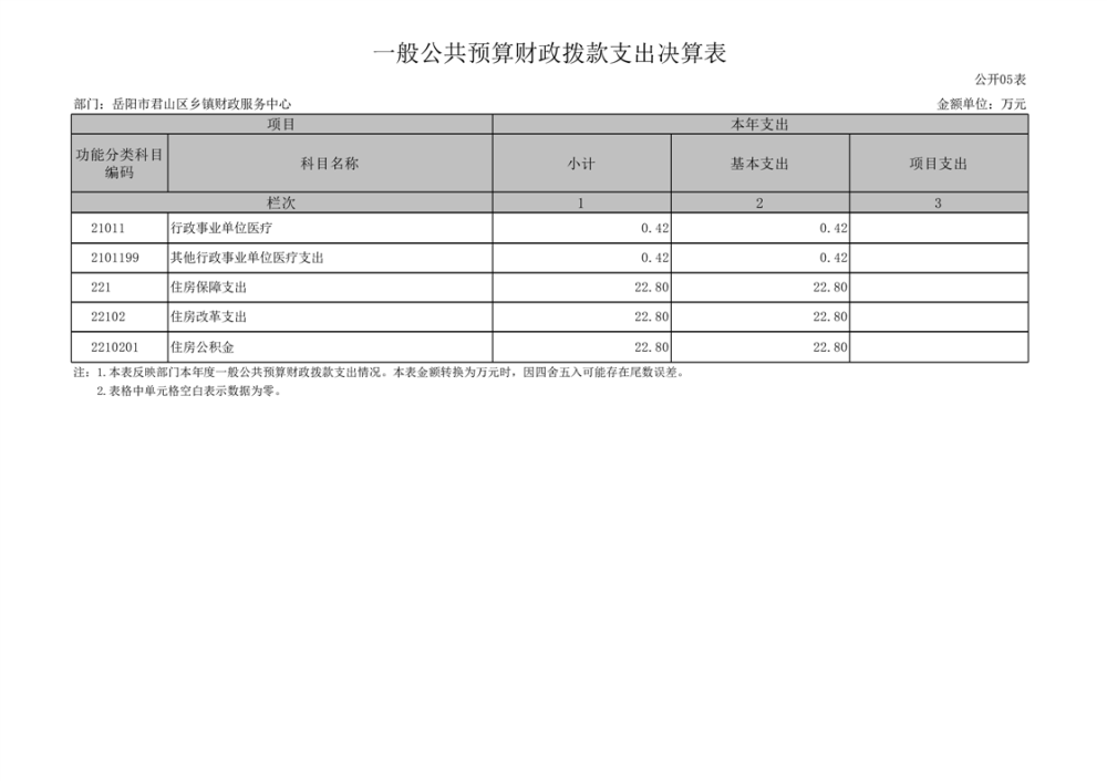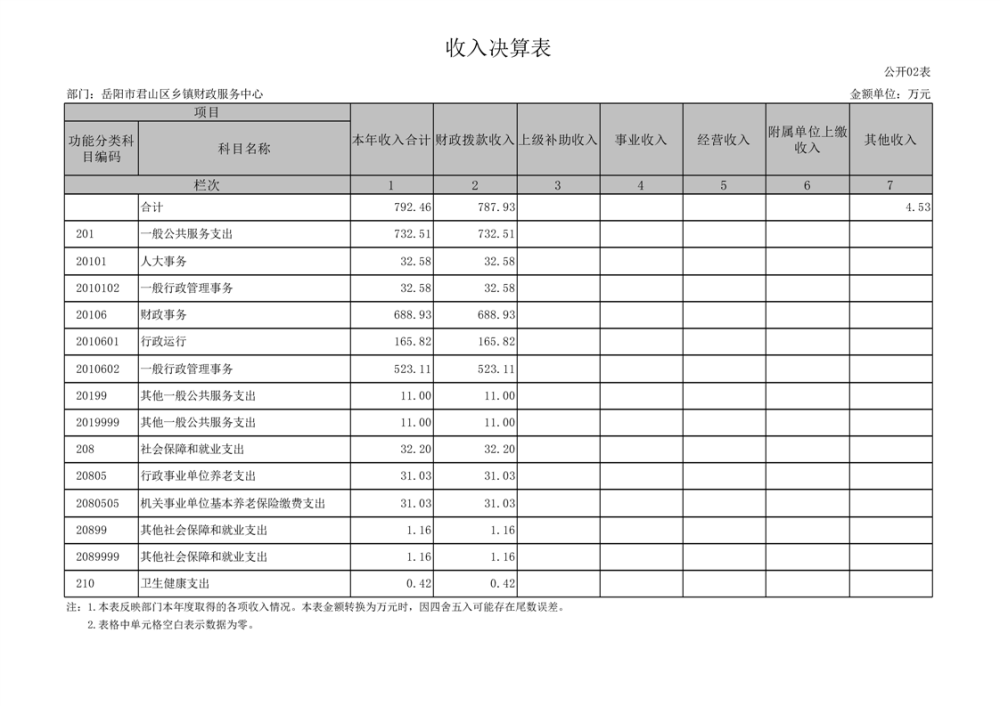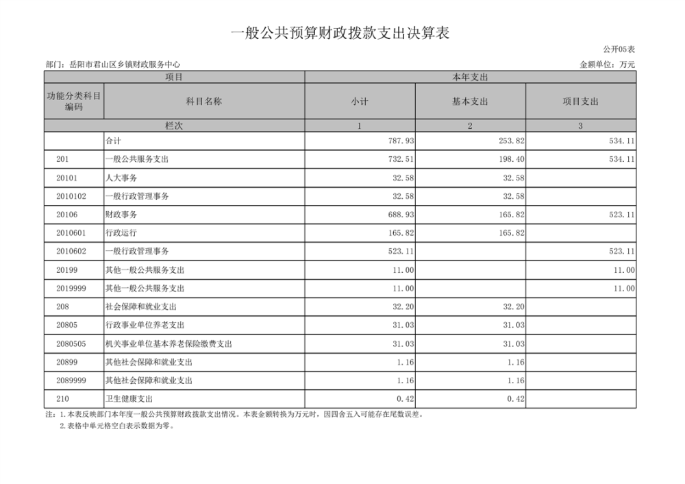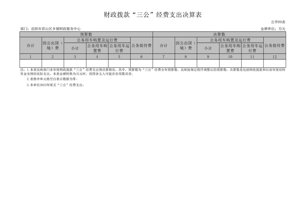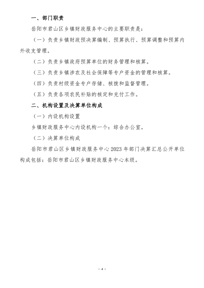 2023年度岳阳市君山区乡镇财政服务中心部门决算公开