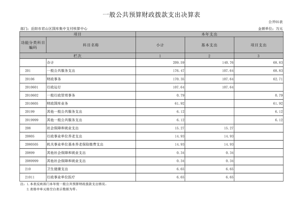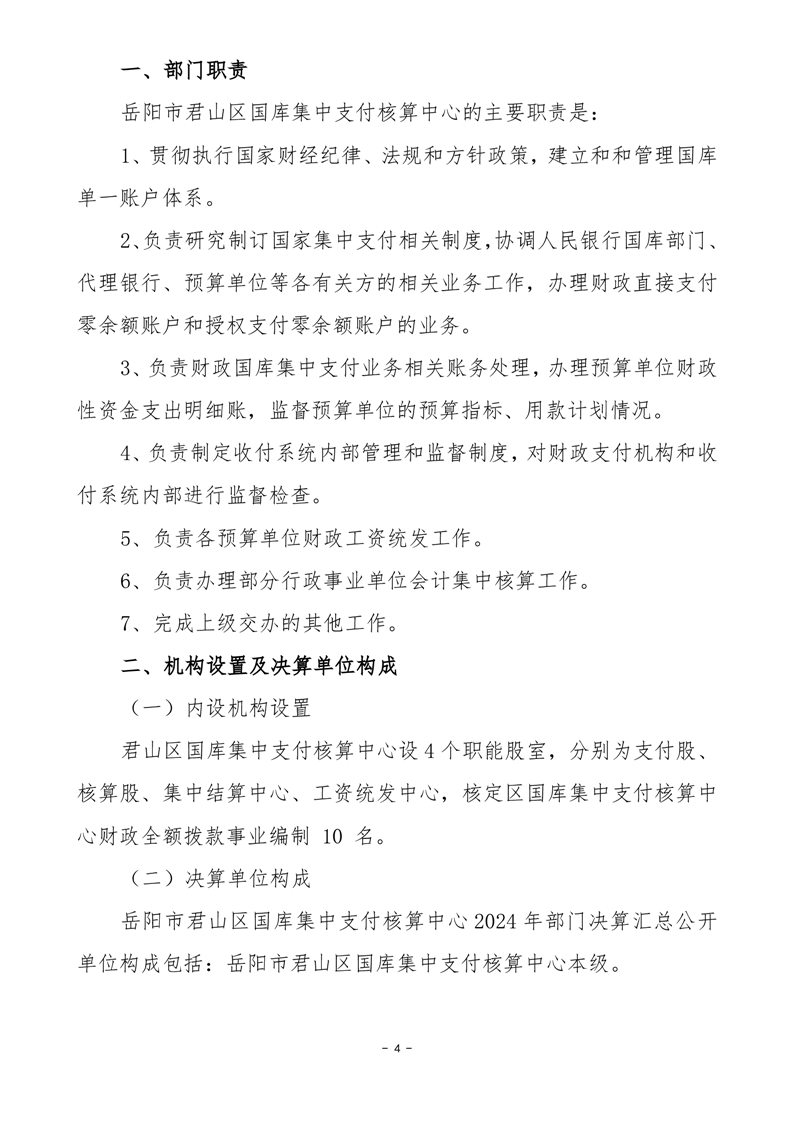 2024年度岳阳市君山区国库集中支付核算中心部门决算公开