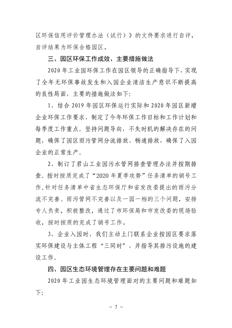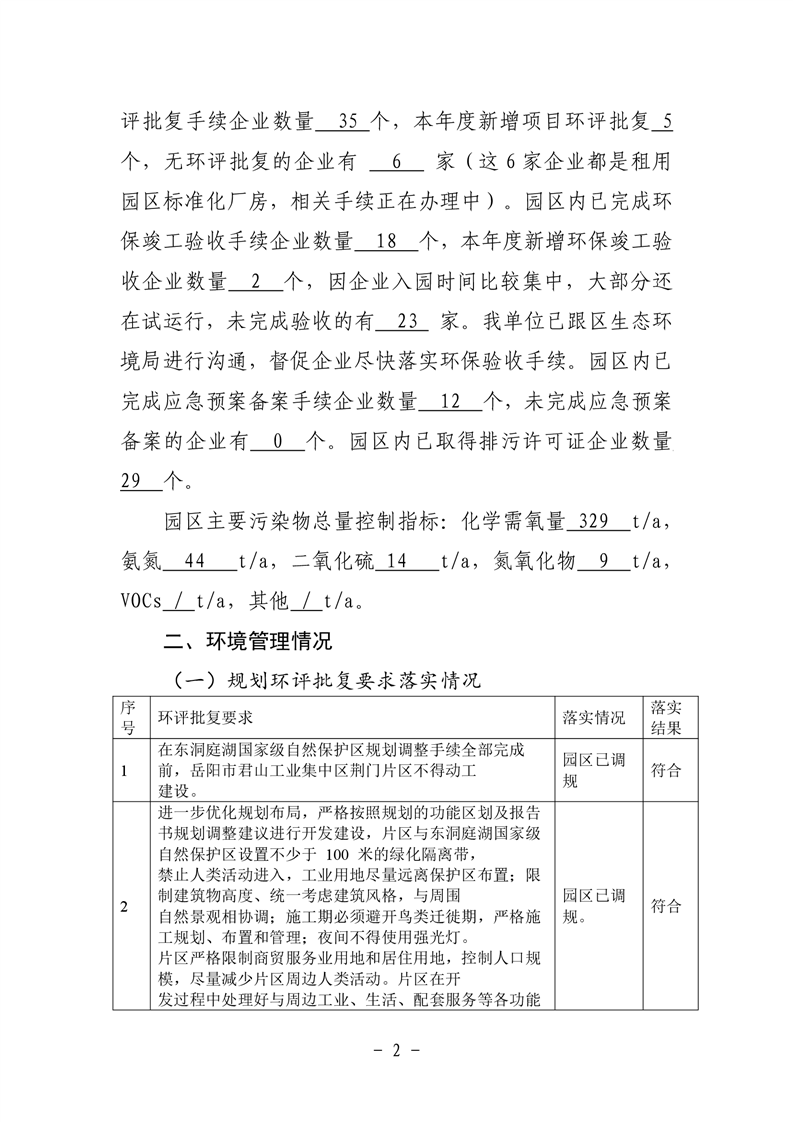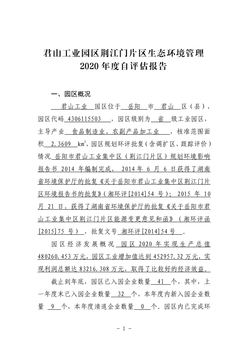 君山工业园区荆江门片区环境管理2020年度自评估报告