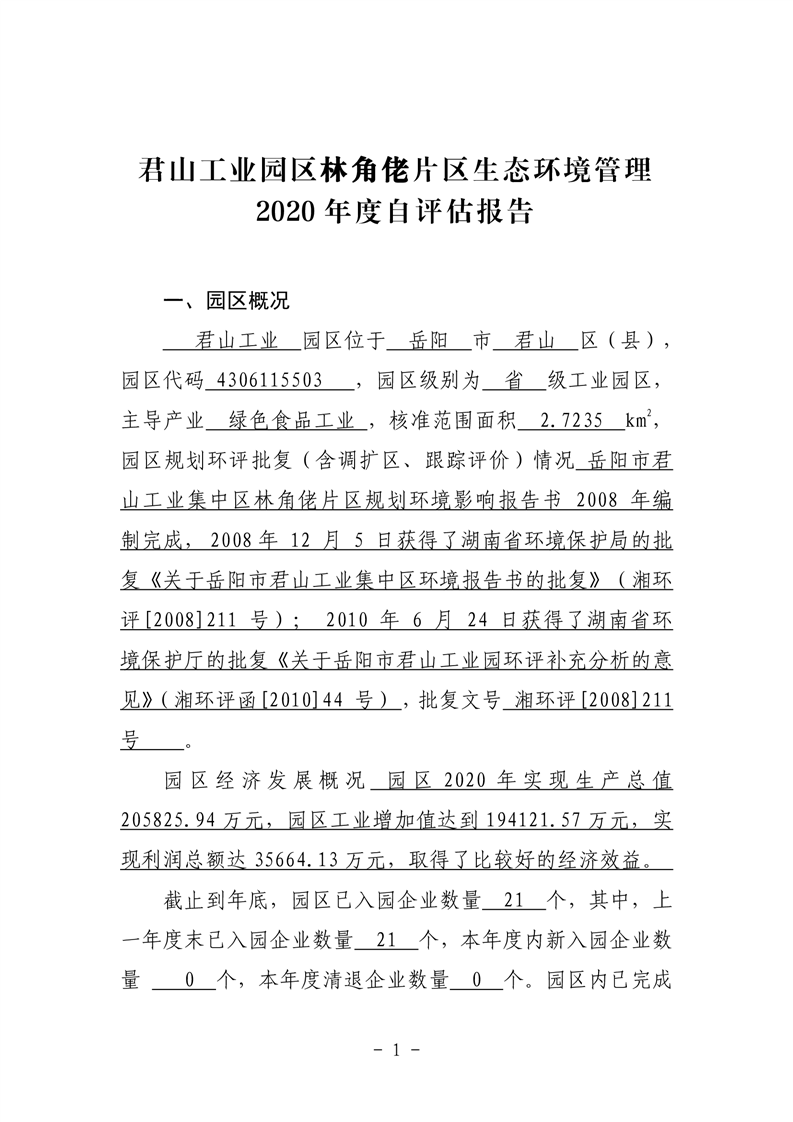 君山工业园区林角佬片区环境管理2020年度自评估报告