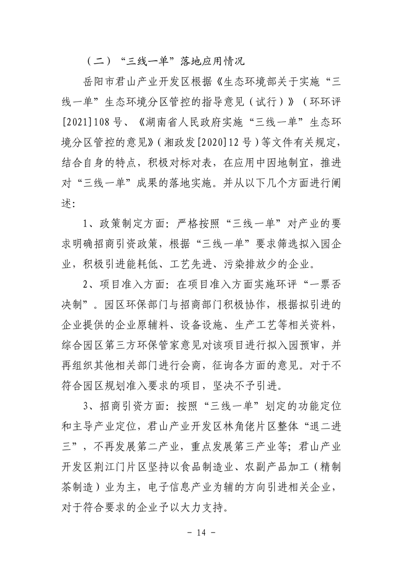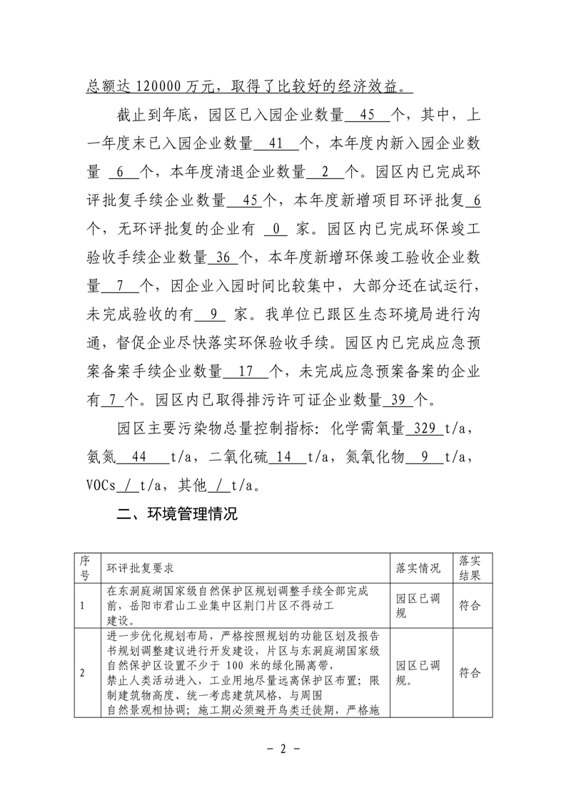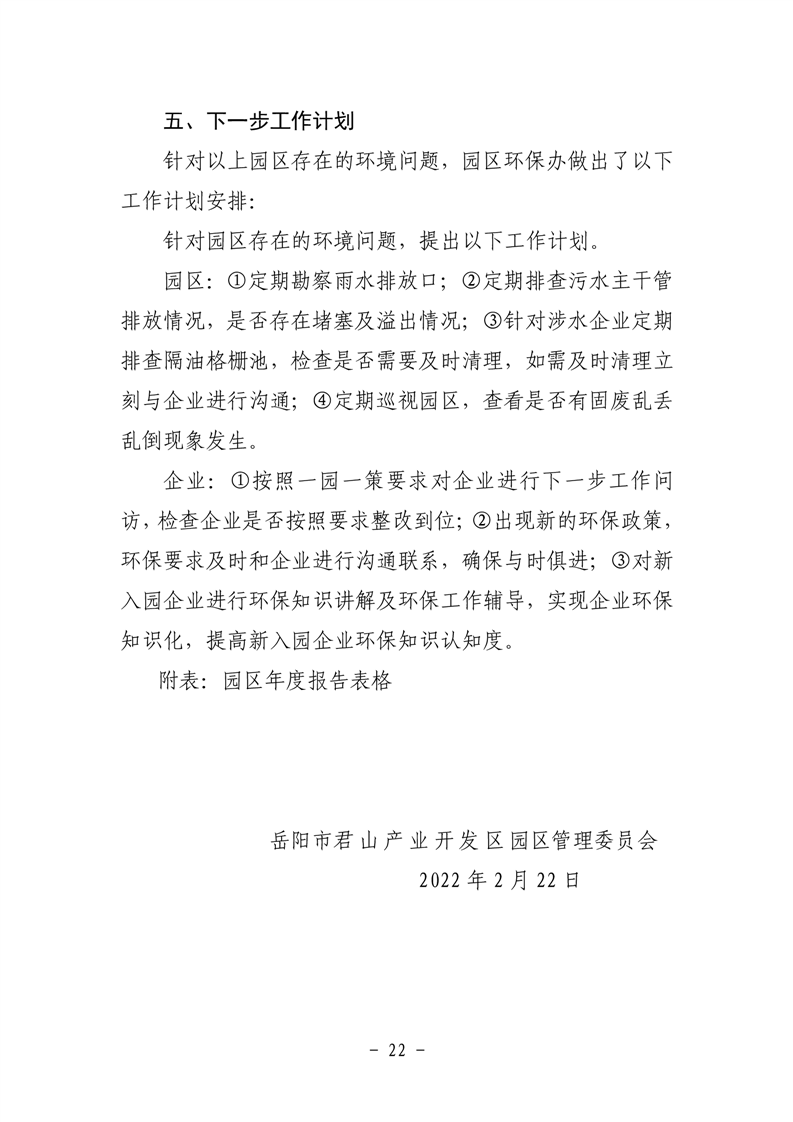 君山产业开发区园区生态环境管理2022年度自评估报告