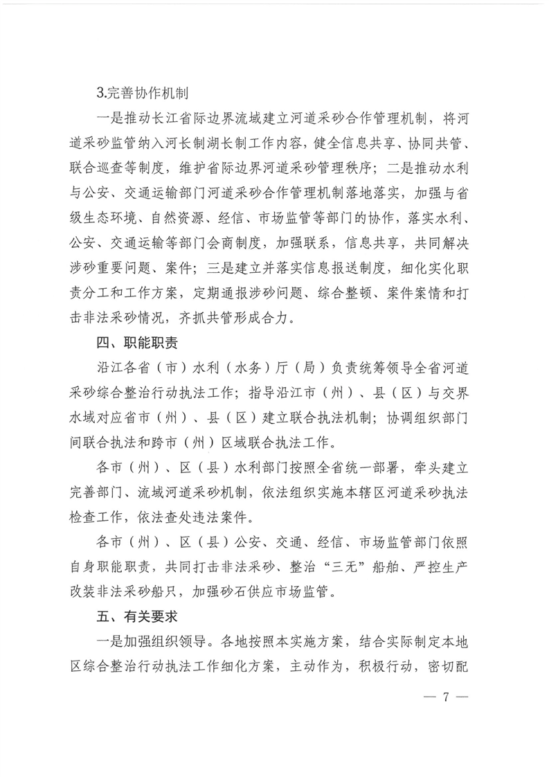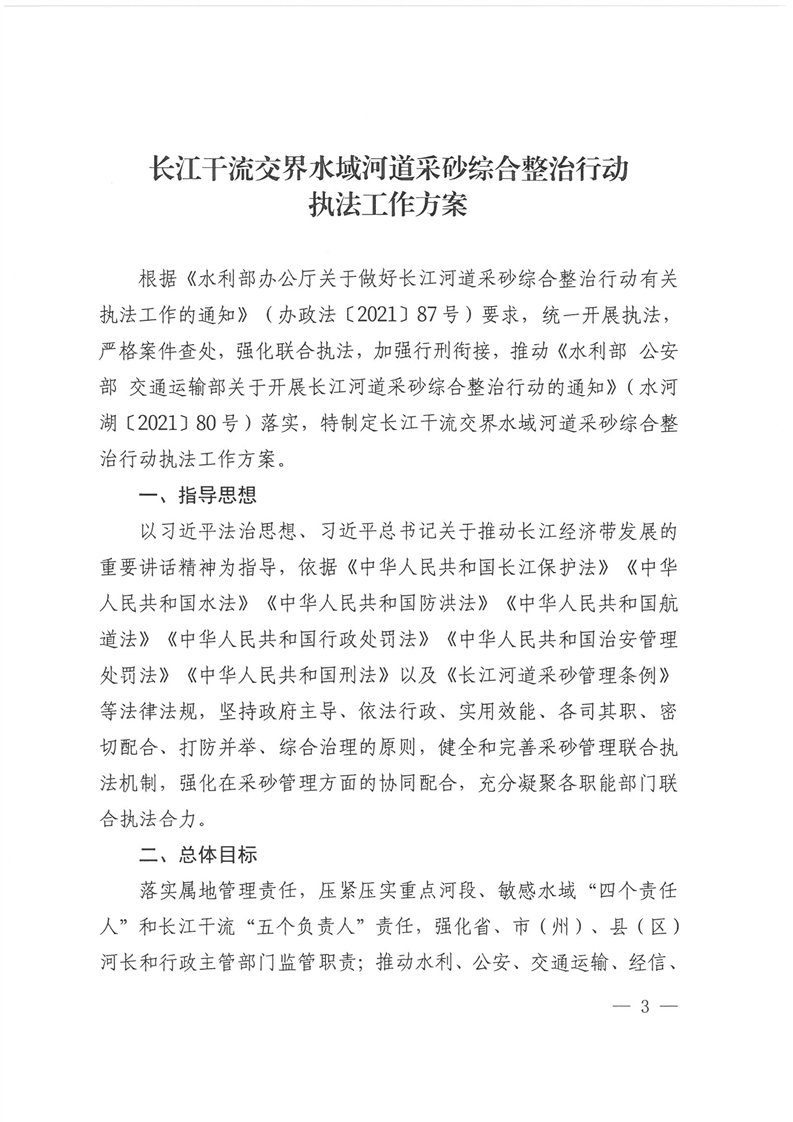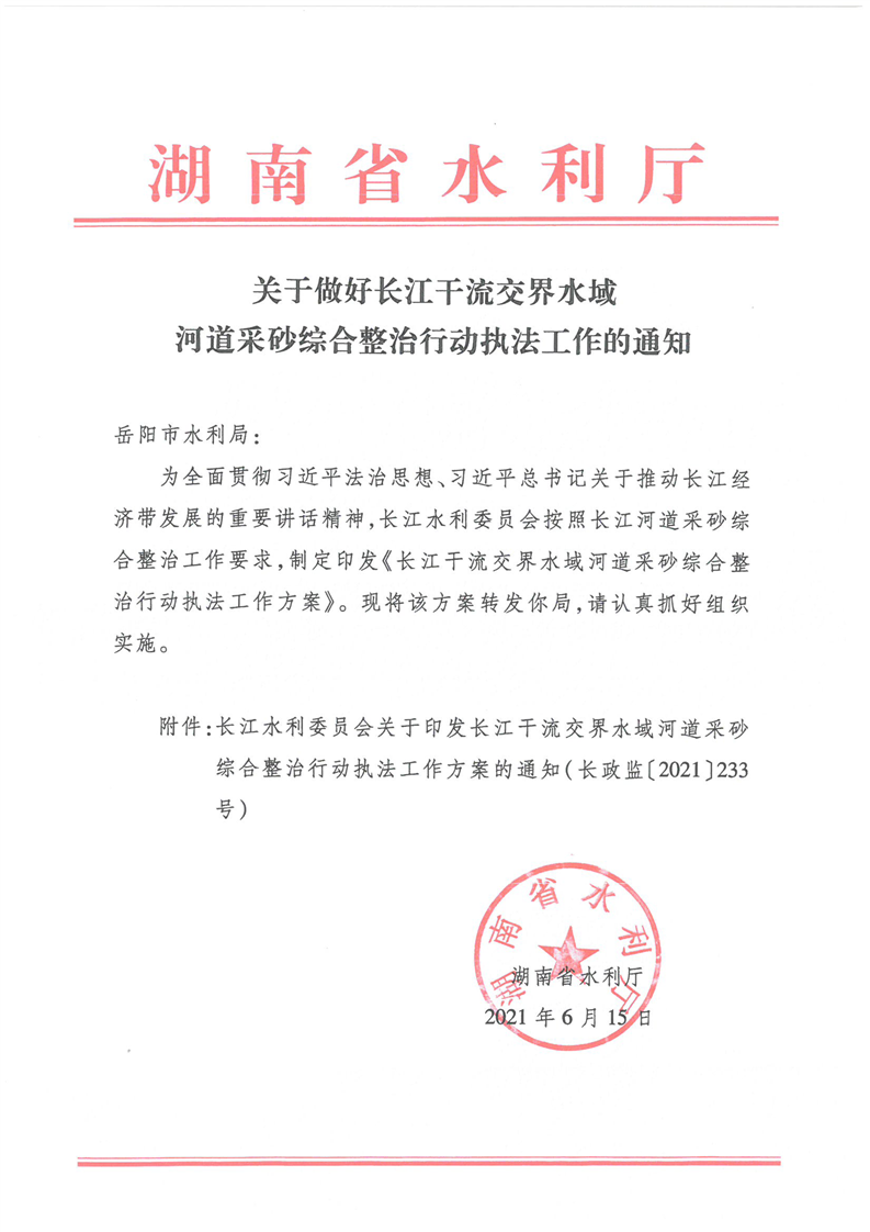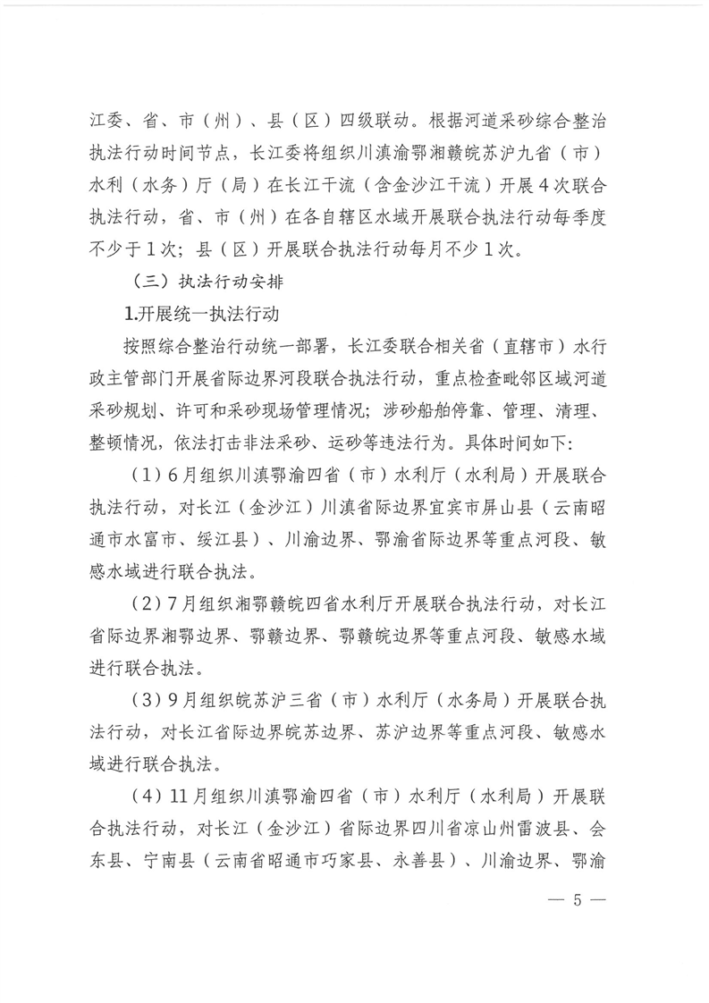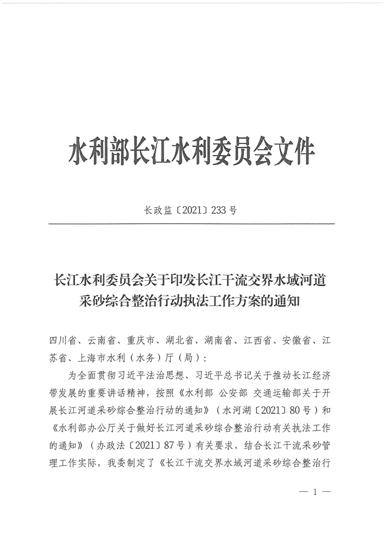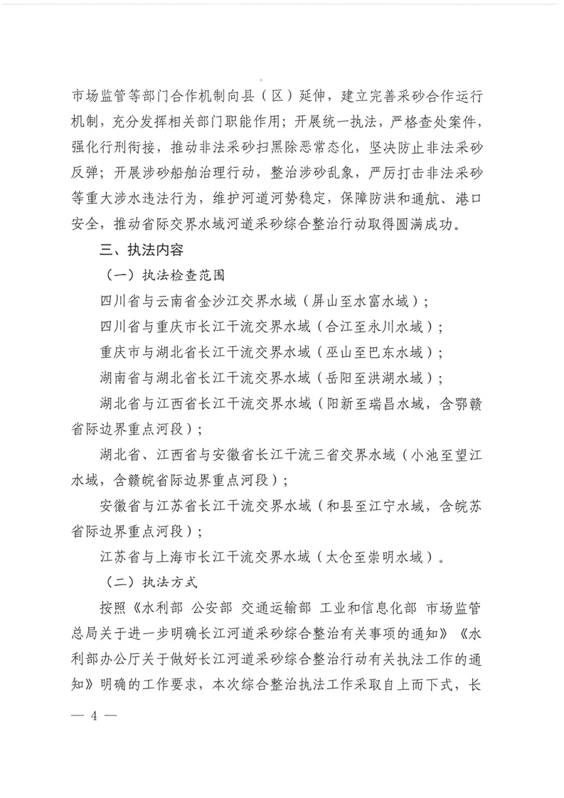 关于做好长江干流交界水域河道采砂综合整治行动执法工作的通知