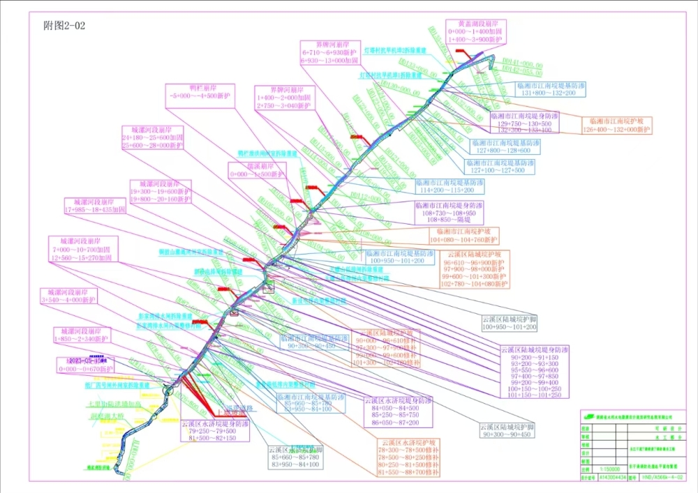 长江干流(湖南段)堤防提升工程是国家“十四五”水安全保障规划明确的重点任务,该项目工程目标为:一是提升防洪能力,主要治理长江河势崩岸、堤防及穿堤建筑物隐患整治等;二是提升形象面貌,结合长江最美岸线及地域文化分区打造城市、乡村滨水文化带和景观长廊,营造生态宜居的亲水空间;三是提升信息化管理,运用新技术建立堤防工程安全分析、评估、预警信息化综合安全管理系统,实现岸线规划、管理、监测全过程管理。本工程主要建设内容:堤防加培31.013km,堤防护坡29.359km,护坡修补113.036km,堤基防渗13.179km,堤身防渗20.02km,渠道防渗衬砌28.458km,减压井75个,巡逻道路119.794km,穿堤建筑物新建及改造47处、内外渠道疏浚衬砌20处、堤顶道路沥青砼路面长度115.167km,填塘固基93个,大堤白蚁防治142.16km,岸滩整治37.48km等防洪保安措施,以及对堤防全线信息监控和堤顶亮化139.955km,新建防守屋及仓库5处、打造堤上观景平台、堤内平台居民休闲中心及停车场、滩地上设置宣扬小型水文化、生态公园等生态景观项目等。
