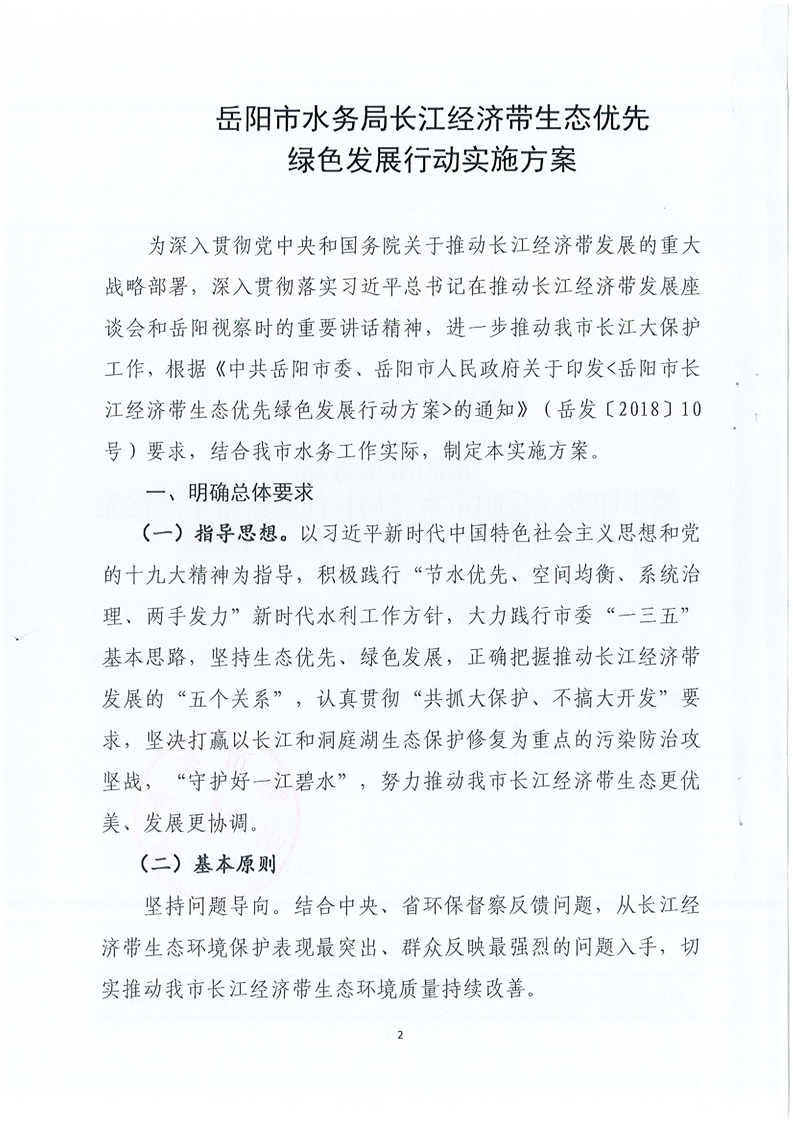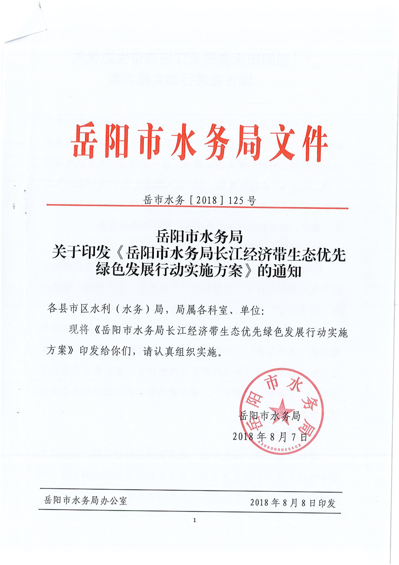 岳阳市水务局关于印发《岳阳市水务局长江经济带生态优先绿色发展行动实施方案》的通知