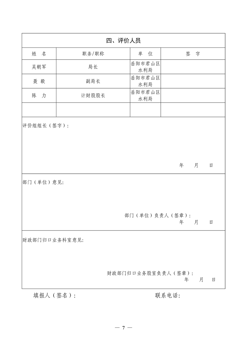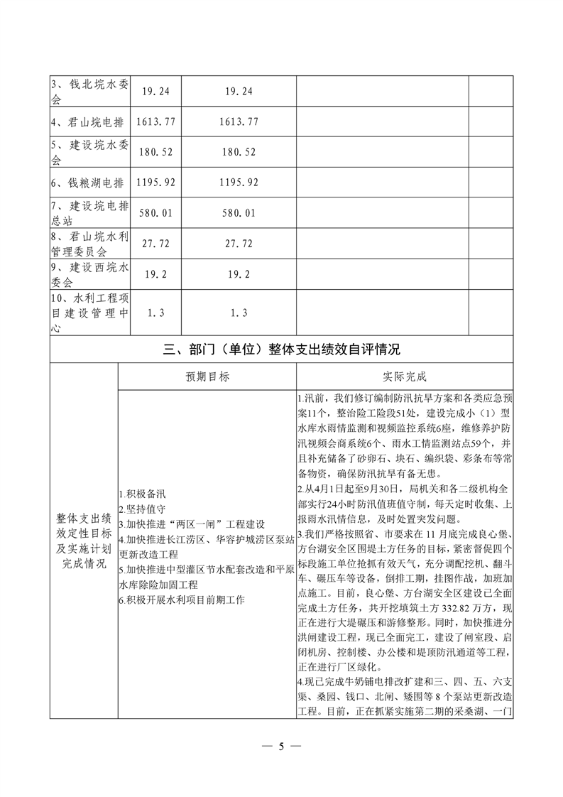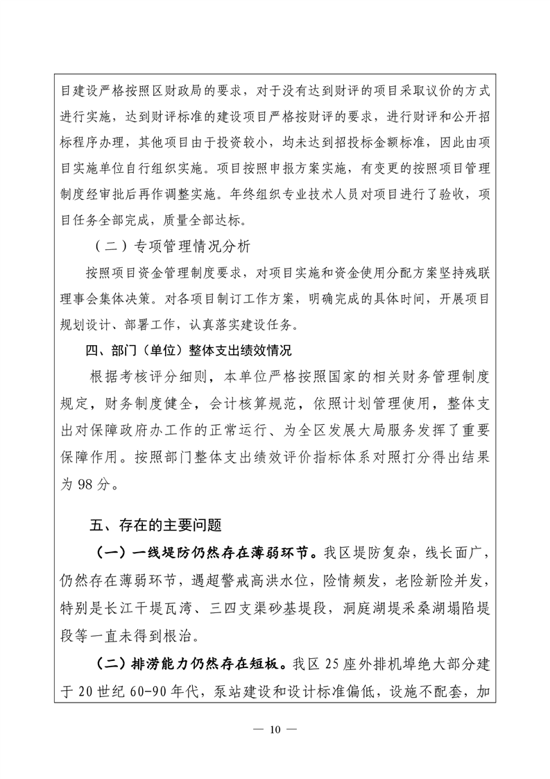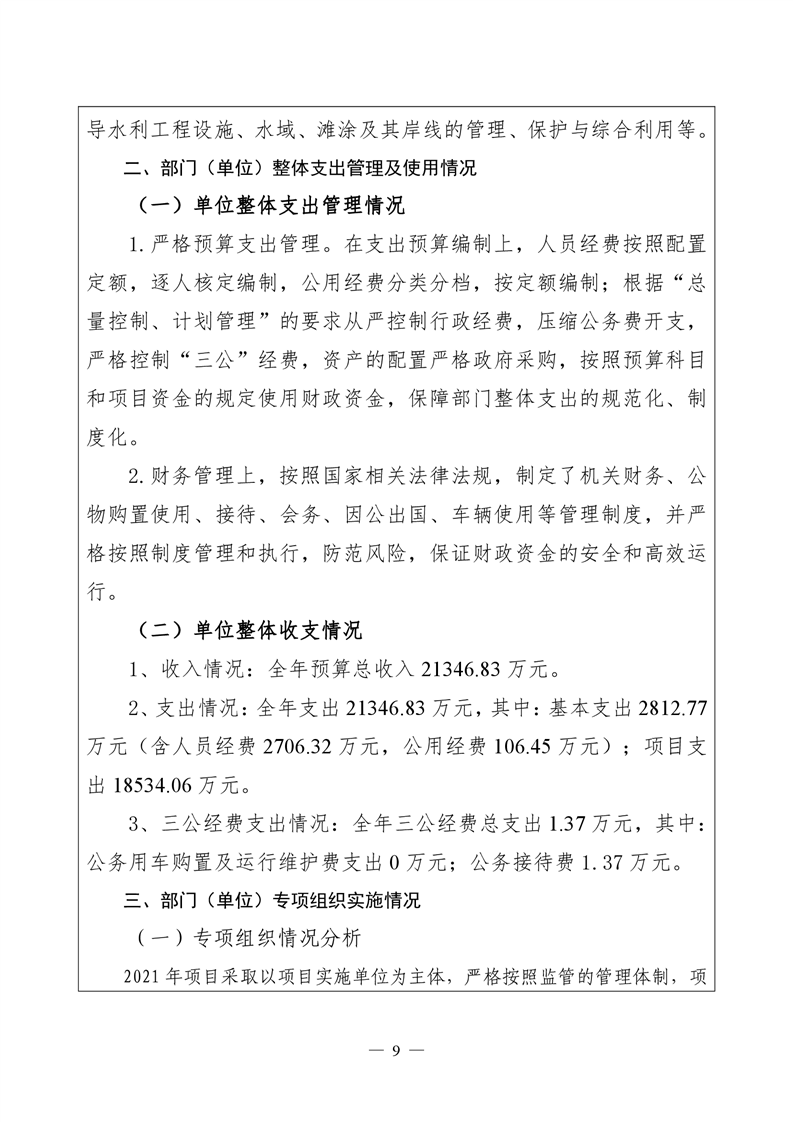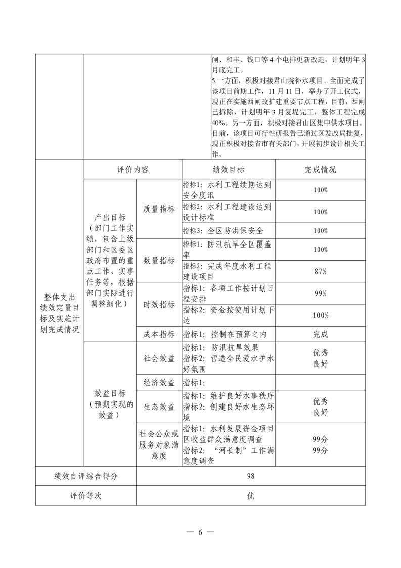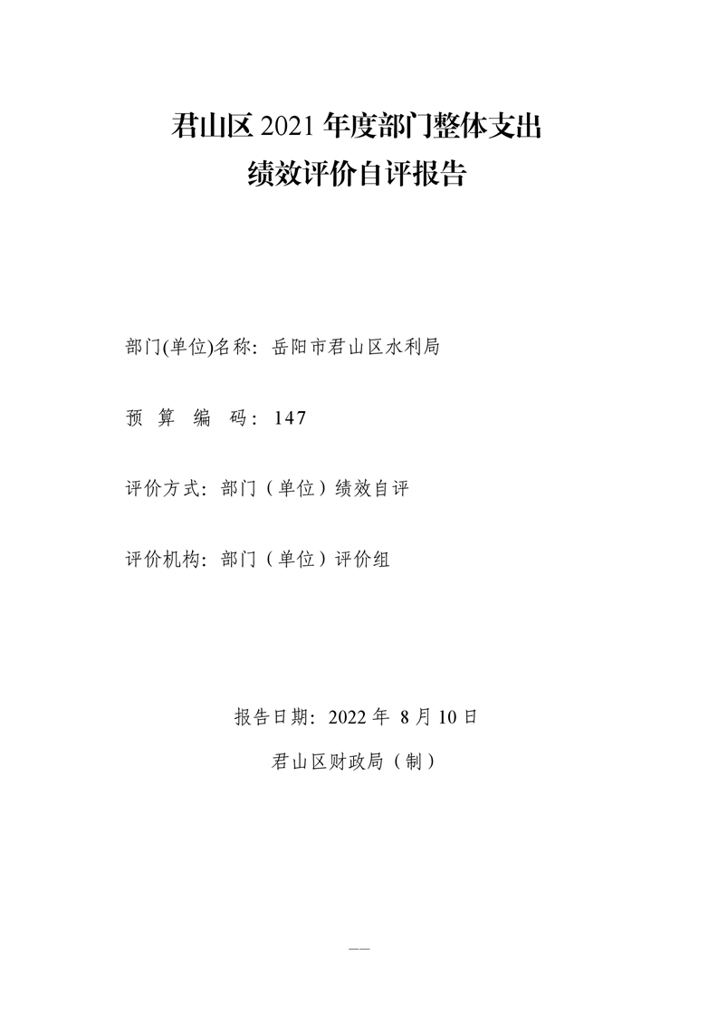 君山区2021年度水利局整体支出绩效自评报告