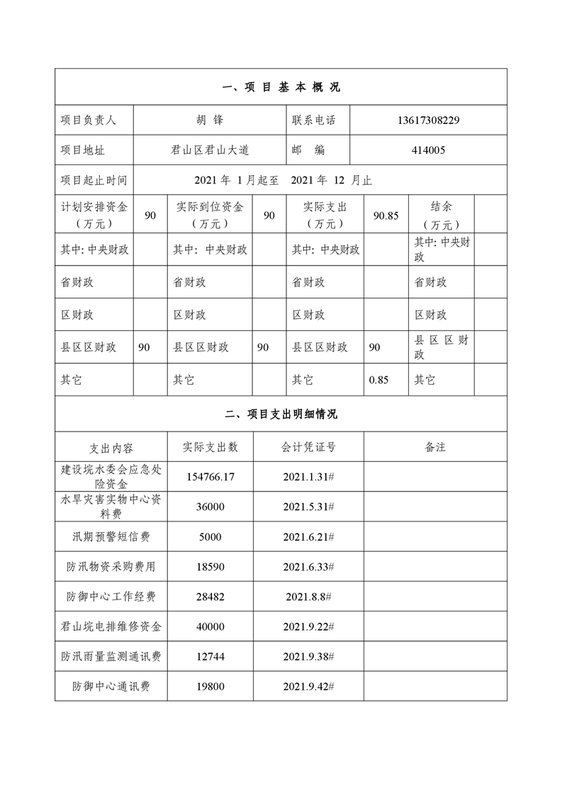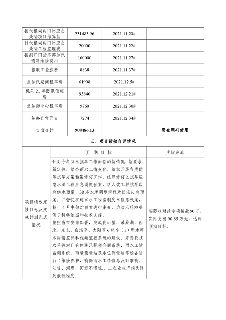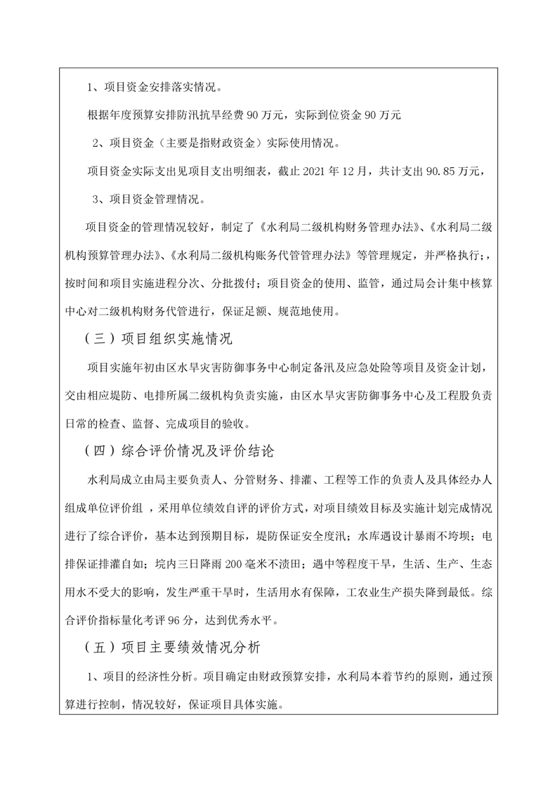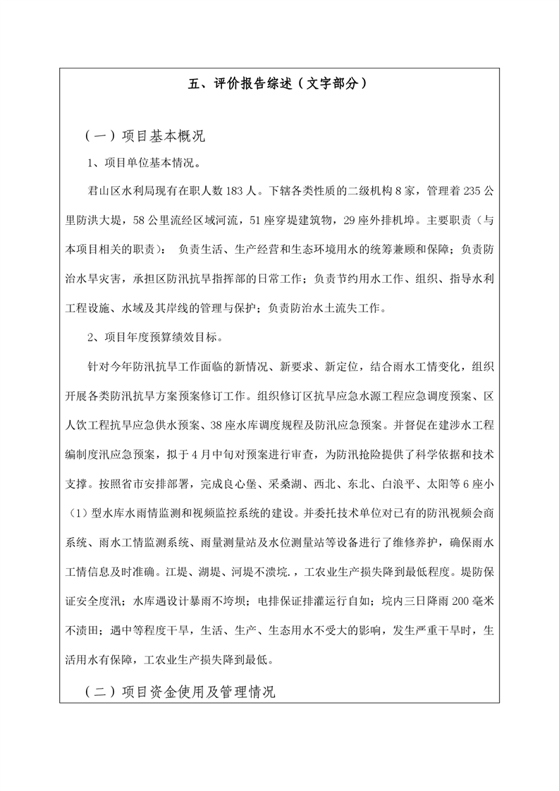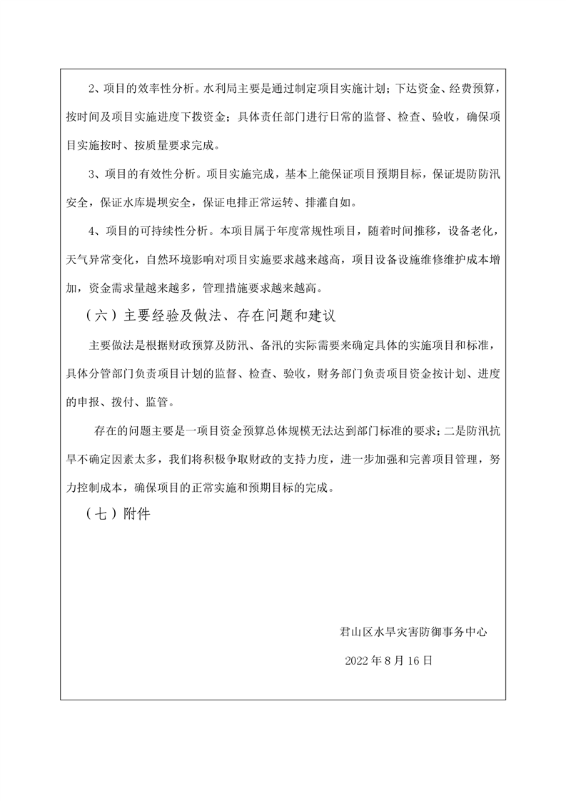 2021年度君山区水利局防汛抗旱经费项目绩效评价自评报告