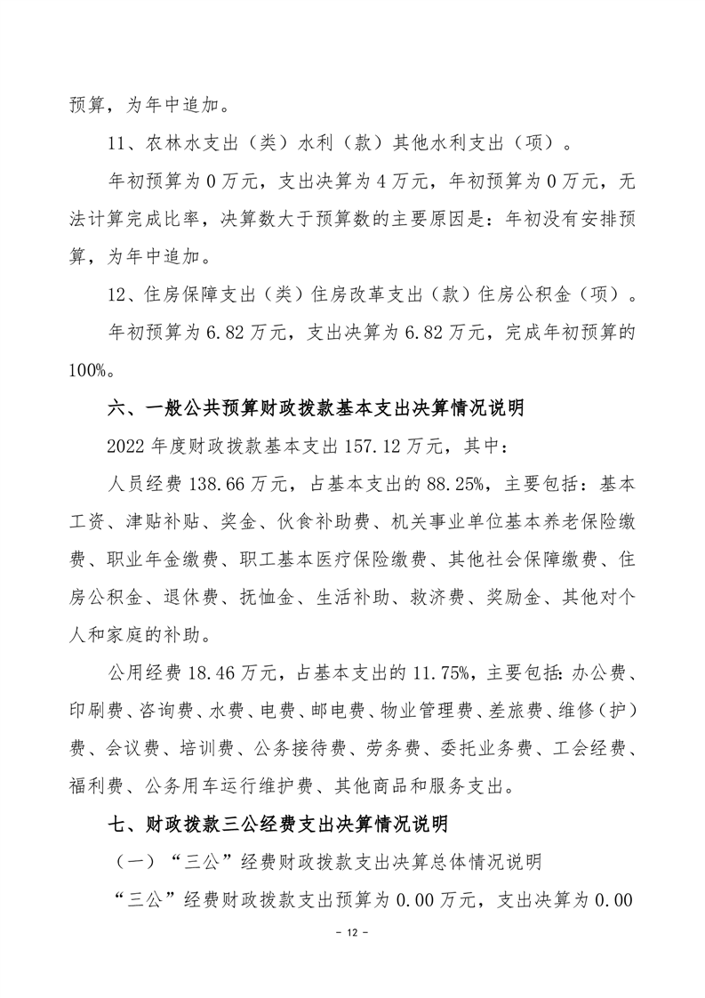 2022年度岳阳市君山区钱北垸水委会部门决算公开说明