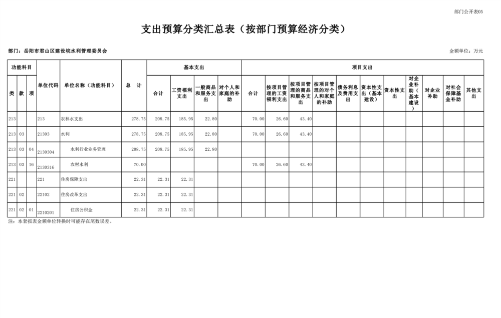 2025年岳阳市君山区建设垸水利管理委员会部门预算公开
