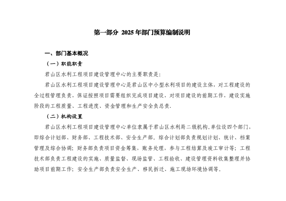 2025年君山区水利工程项目建设管理中心部门预算公开