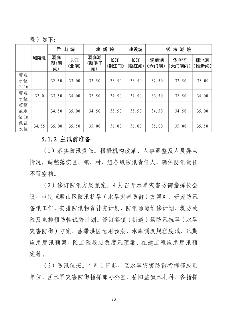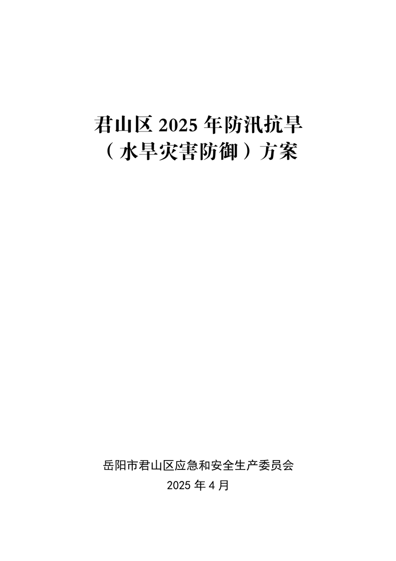 君山区2025年防汛抗旱(水旱灾害防御)方案