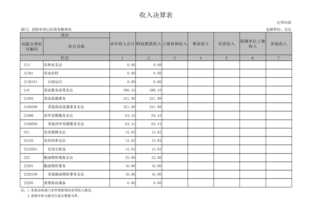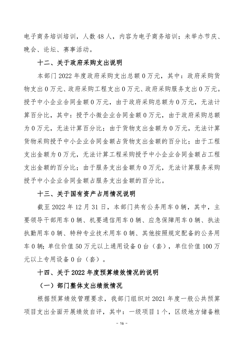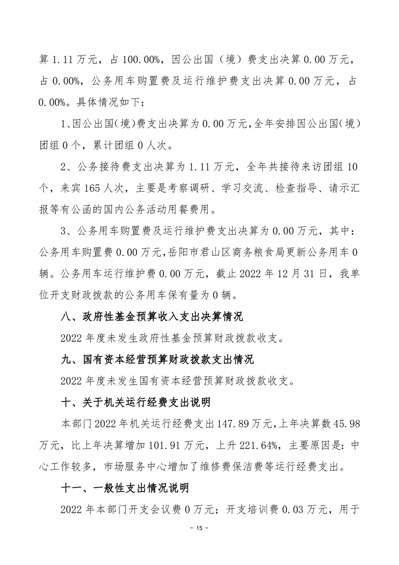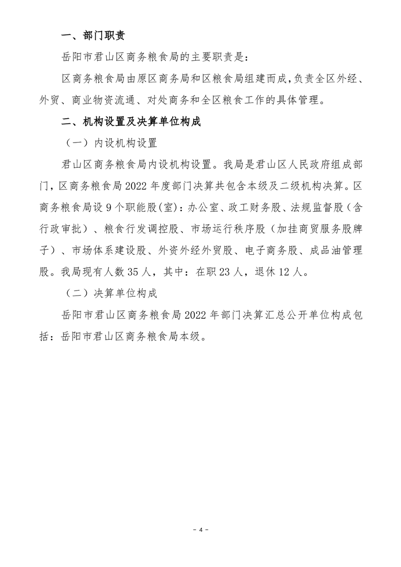 2022年度君山区商务粮食局(汇总)部门决算公开说明
