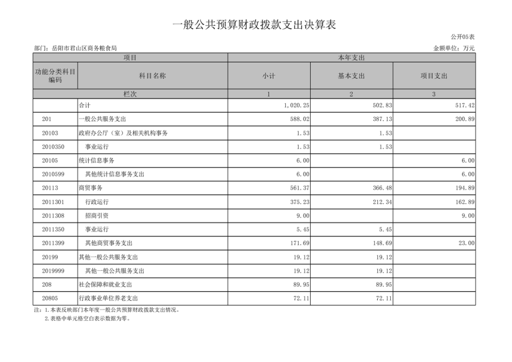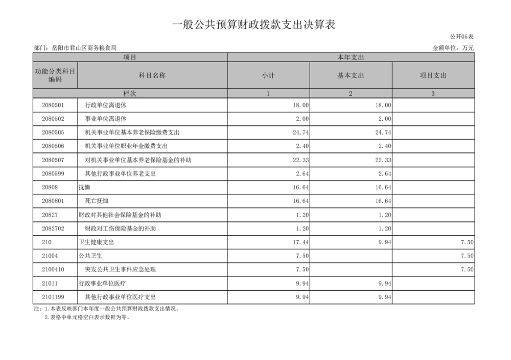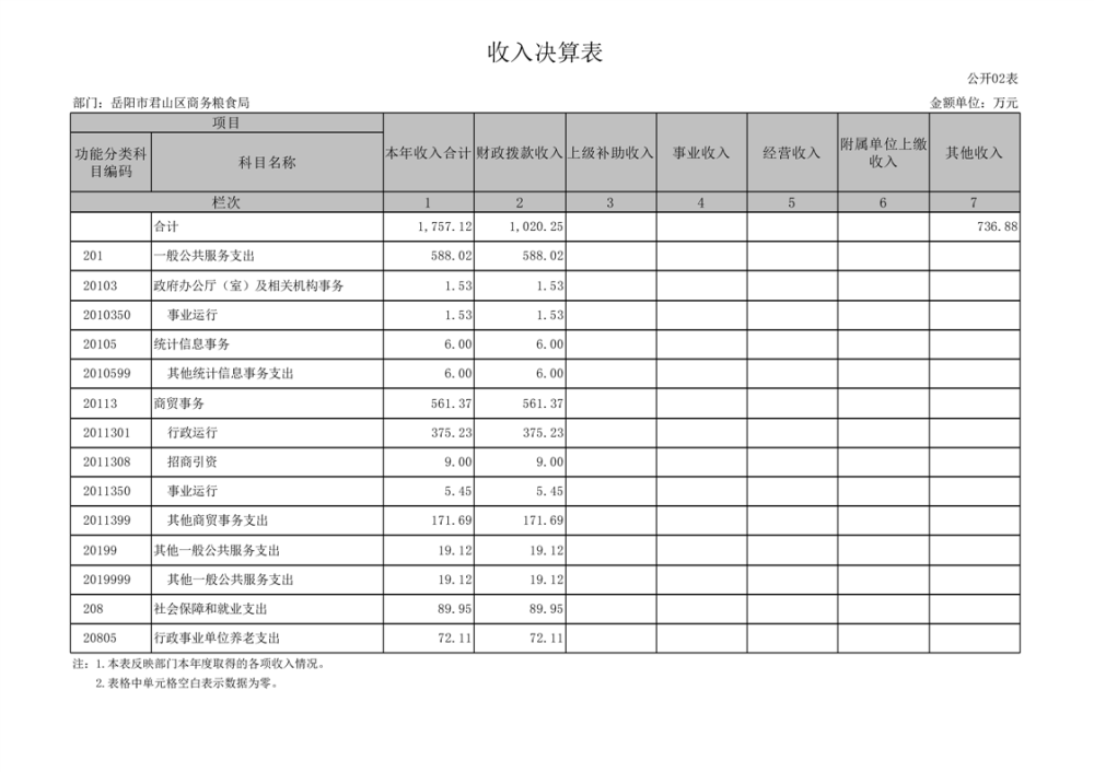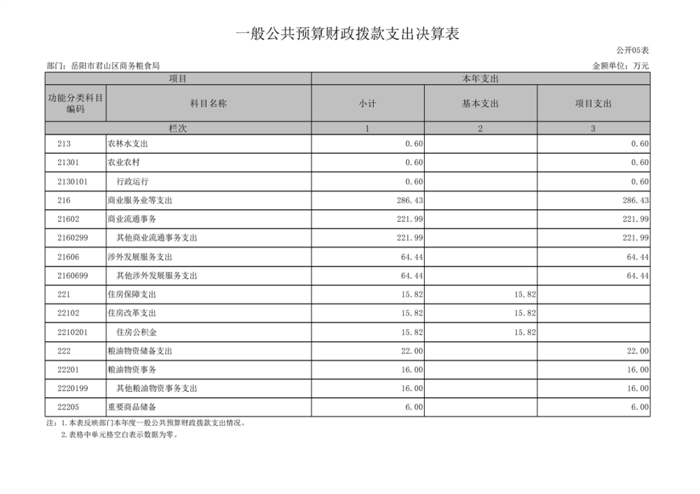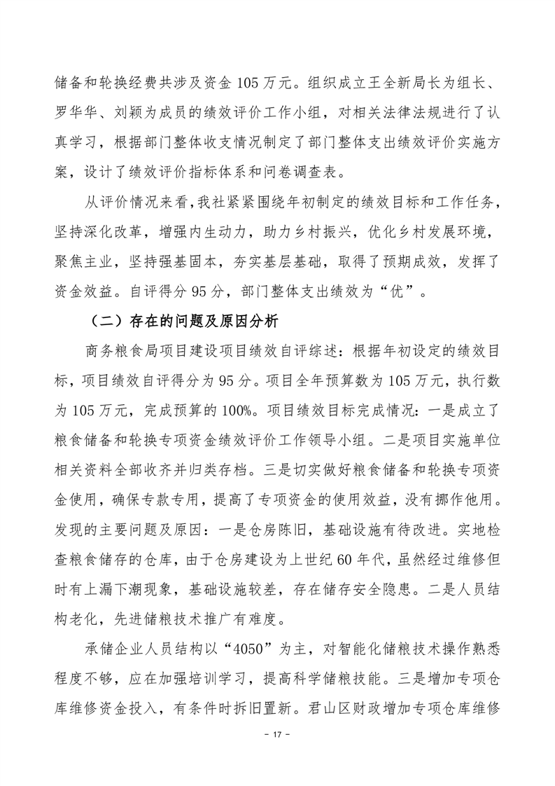2022年度君山区商务粮食局(汇总)部门决算公开说明
