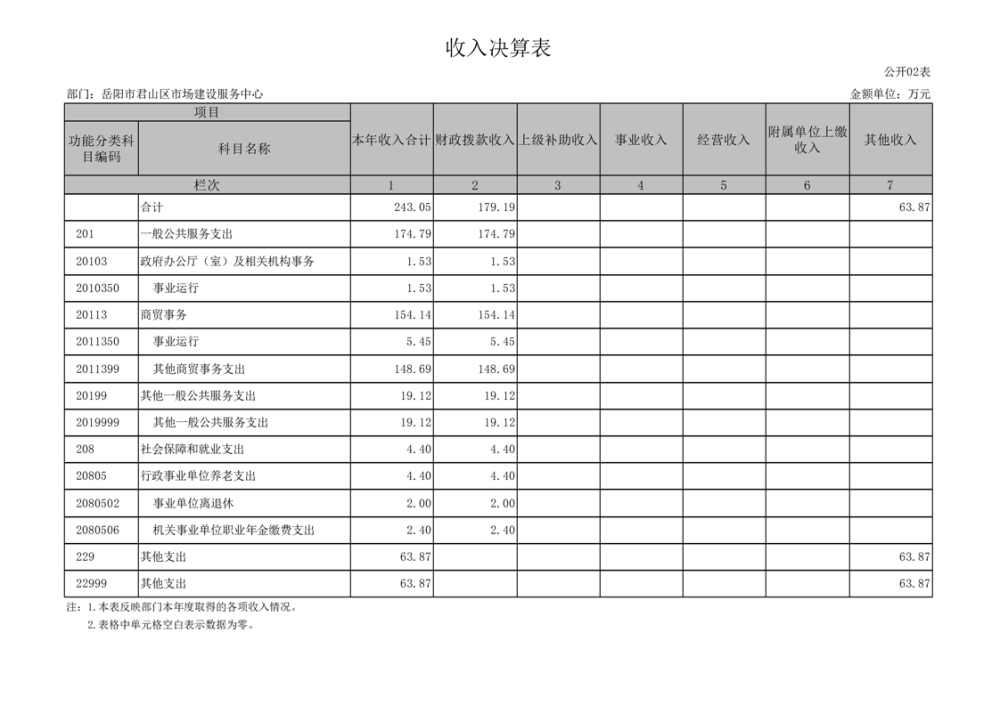 2022年度岳阳市君山区市场建设服务中心部门决算公开说明