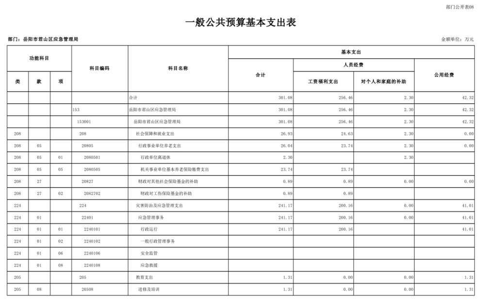 2023年岳阳市君山区应急管理局部门预算公开说明