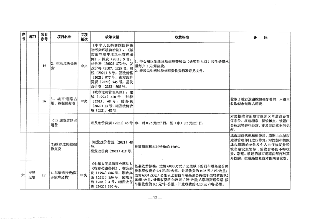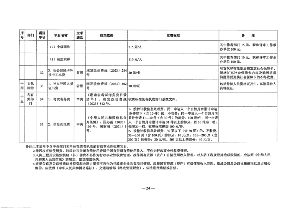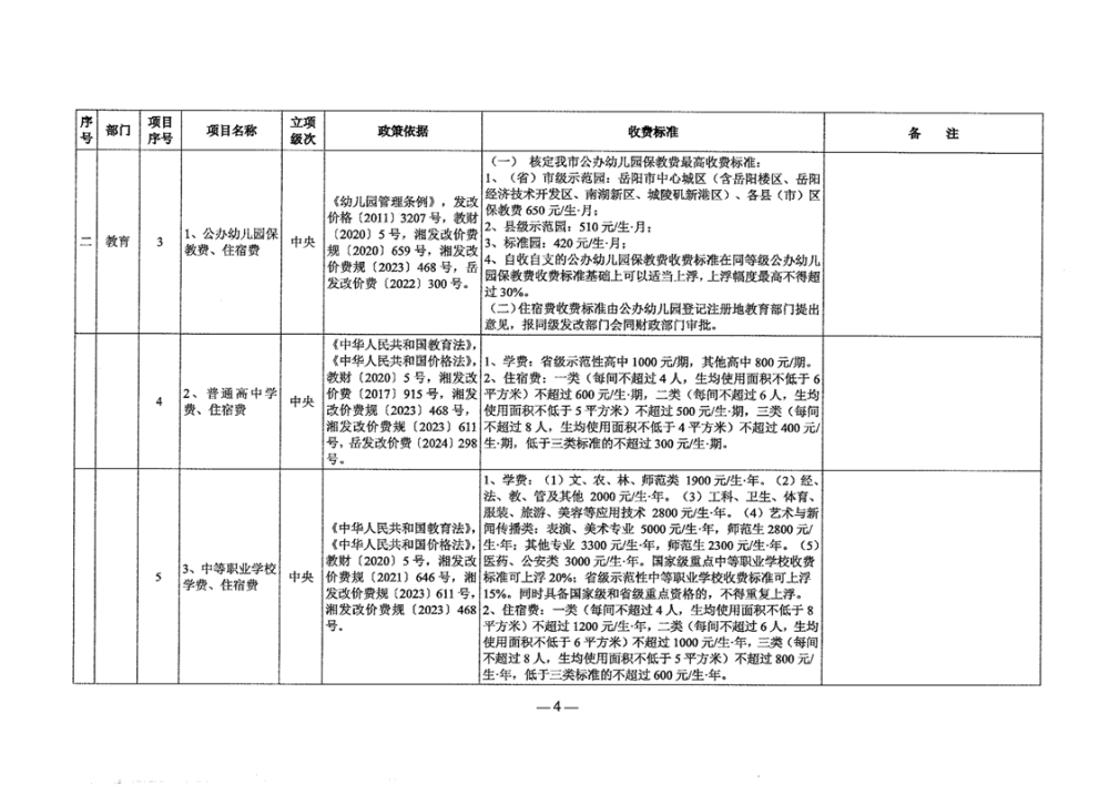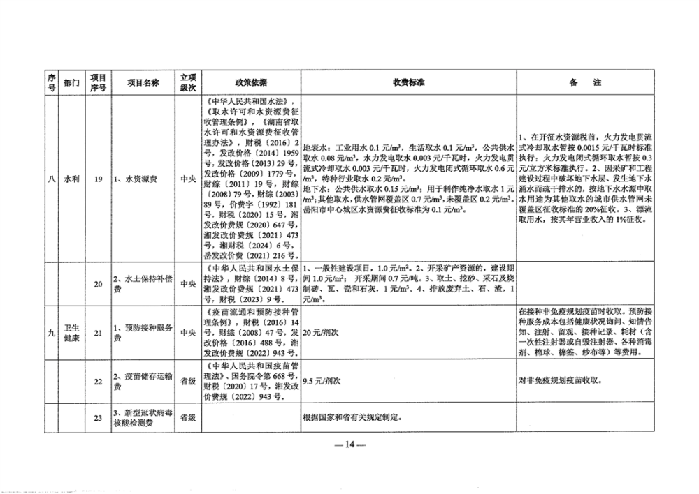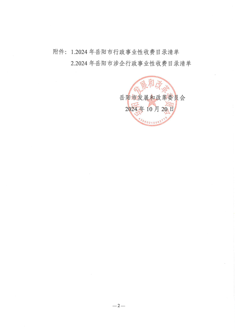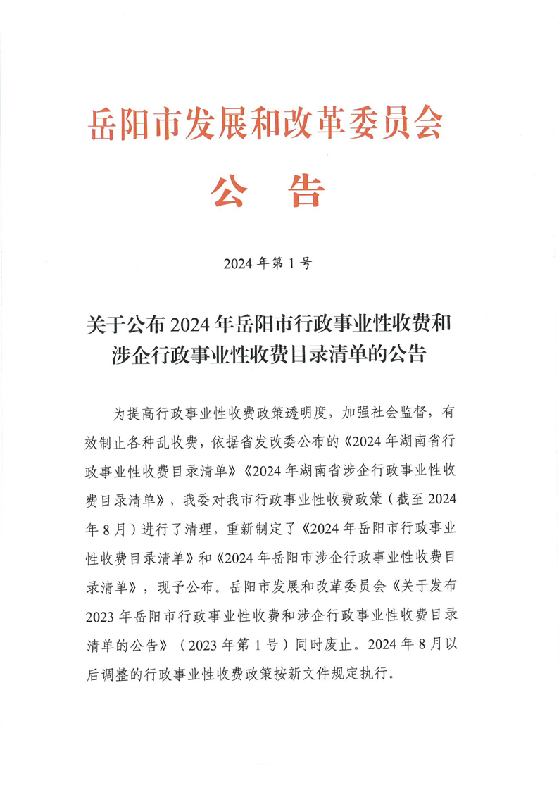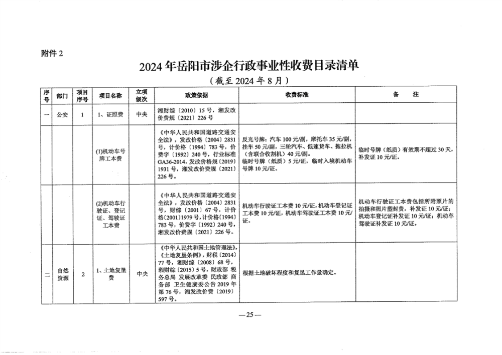 2024年岳阳市行政事业性和涉企行政事业性收费目录清单